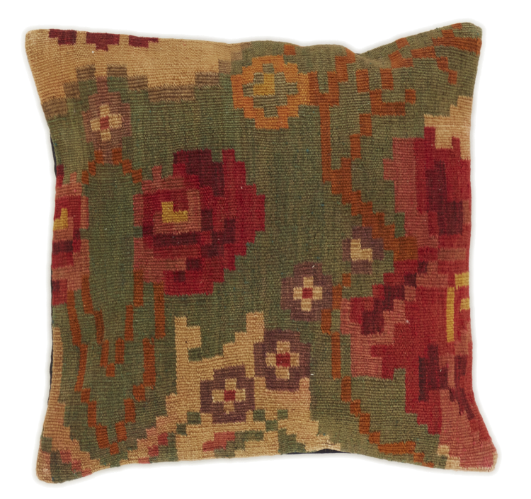 Carpet ID: 310261008602496 Size: 51x49 cm Thickness: ap. 3 mm Manufacturing: Woven by hand Pile: Sheep wool Warp: Sheep wool Origin: India Age: New Weight: ap. 0 kg Also know as Kissen, Kelim Kissen In stock: Unique - Only 1 in stock
