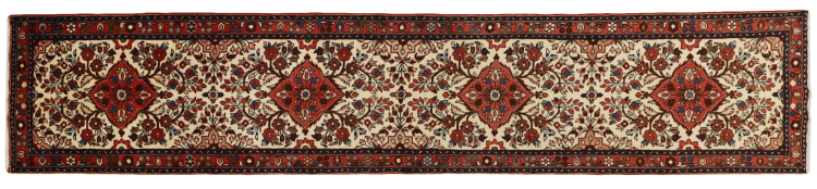 Carpet ID: 269227004666015 Size: 378x75 cm Thickness: ap. 12 mm Knot density: 200 000 - 250 000 / m² Manufacturing: Knotted by hand Pile: Handspun wool Warp: Cotton Origin: Persia Age: New Weight: ap. 10 kg In stock: Unique - Only 1 in stock