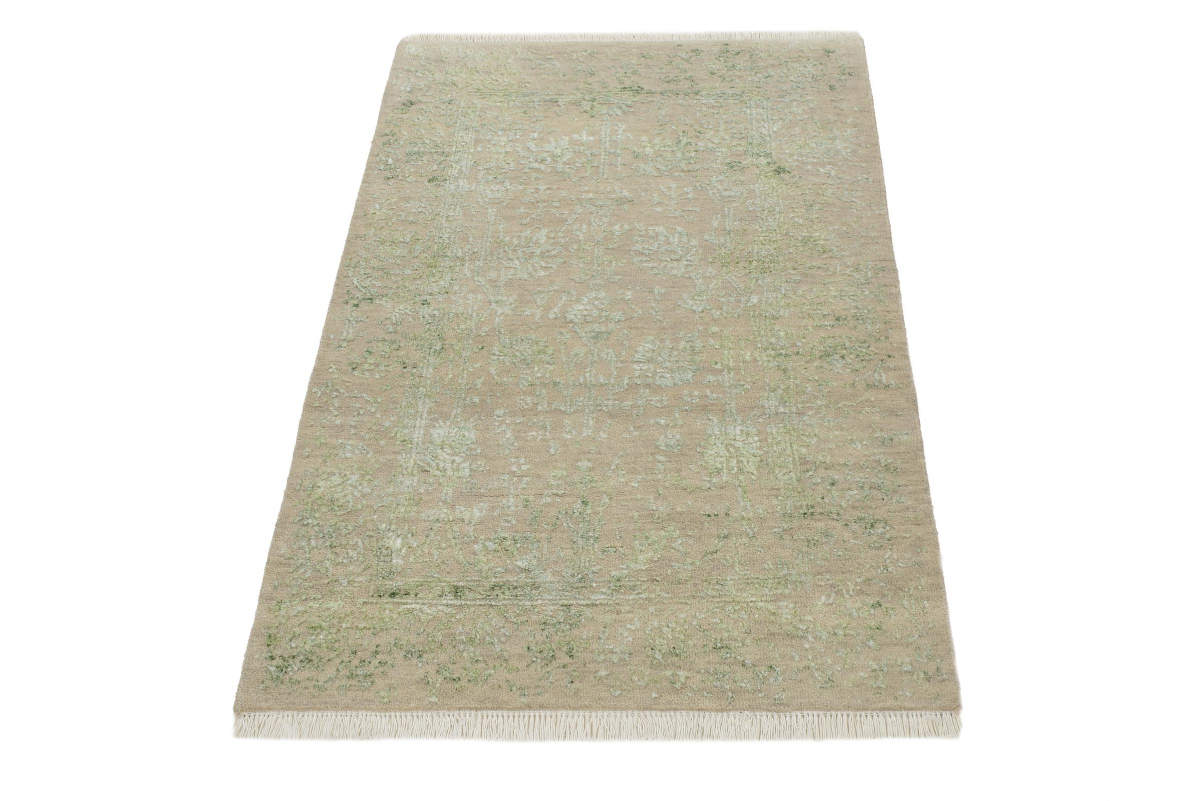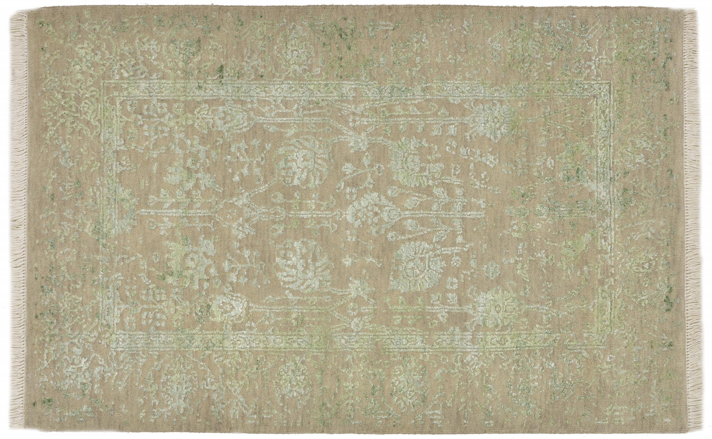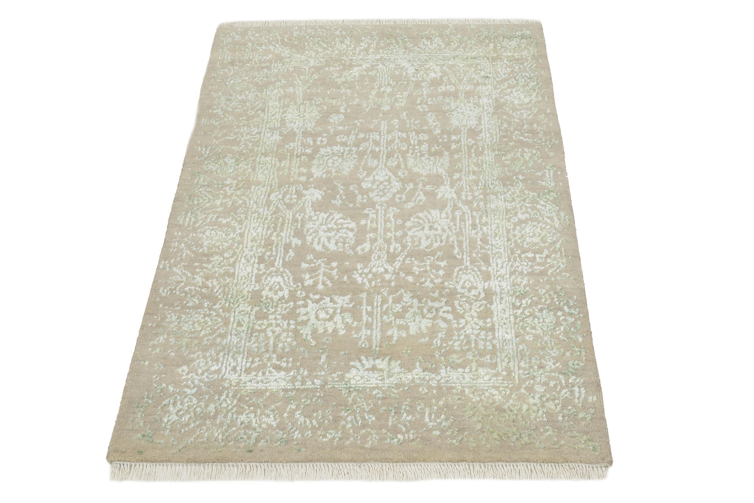 Carpet ID: 126727006799621 Size: 120x79 cm Thickness: ap. 12 mm Knot density: 200 000 - 250 000 / m² Manufacturing: Knotted by hand Pile: Wool with bamboo-silk Warp: Cotton Origin: India Age: New Weight: ap. 4 kg In stock: Unique - Only 1 in stock