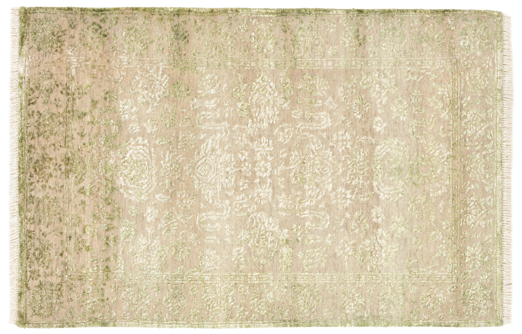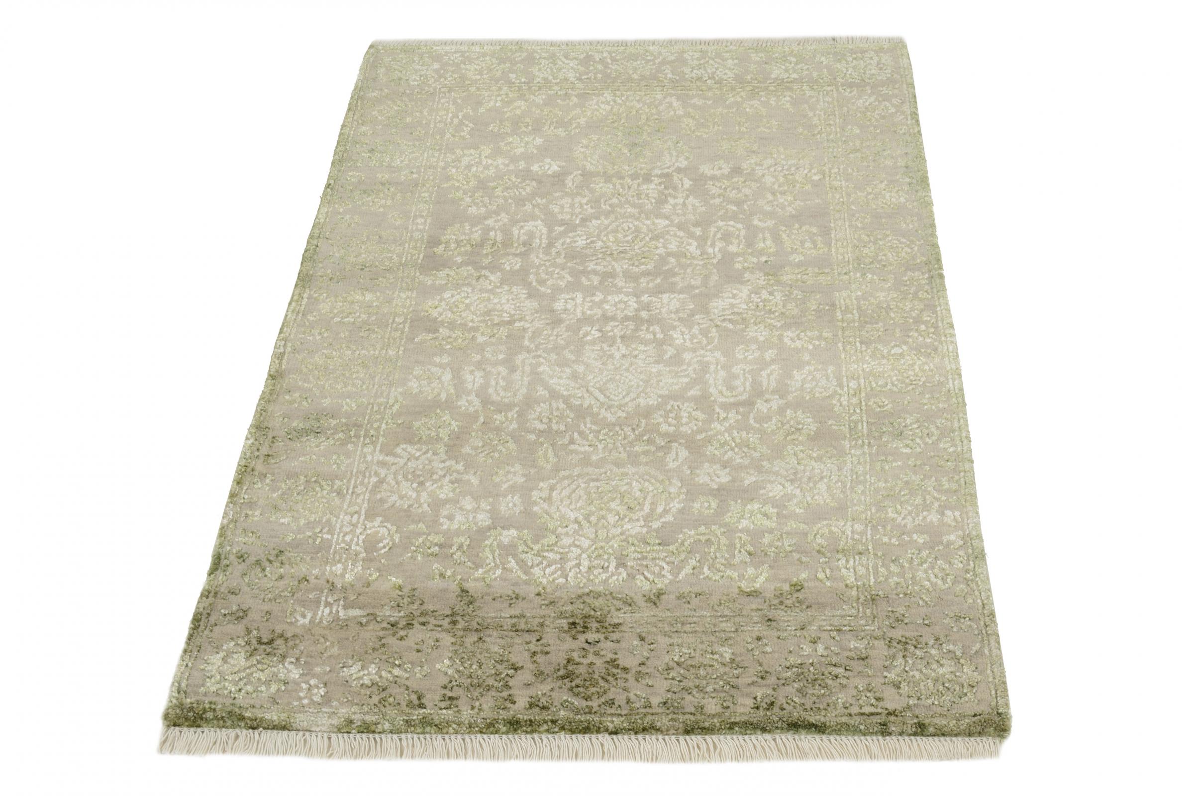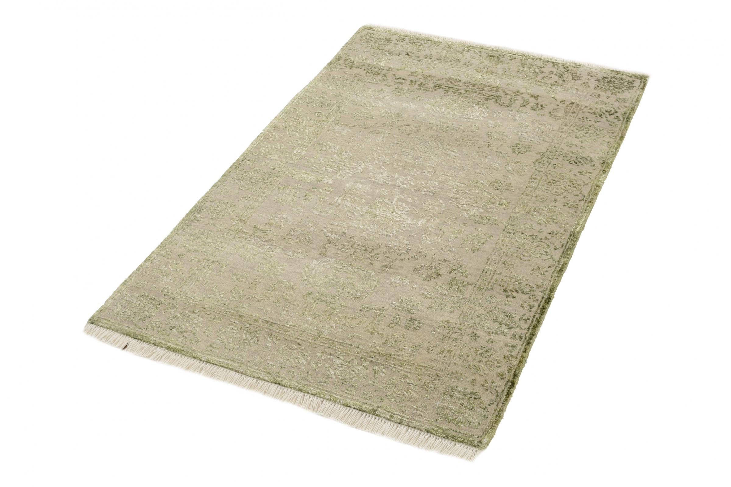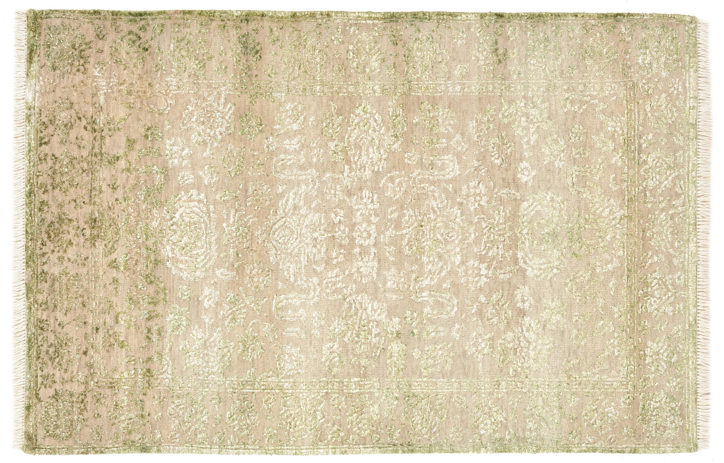 Carpet ID: 126837004909187 Size: 128x84 cm Thickness: ap. 12 mm Knot density: 200 000 - 250 000 / m² Manufacturing: Knotted by hand Pile: Wool with bamboo-silk Warp: Cotton Origin: India Age: New Weight: ap. 4 kg In stock: Unique - Only 1 in stock