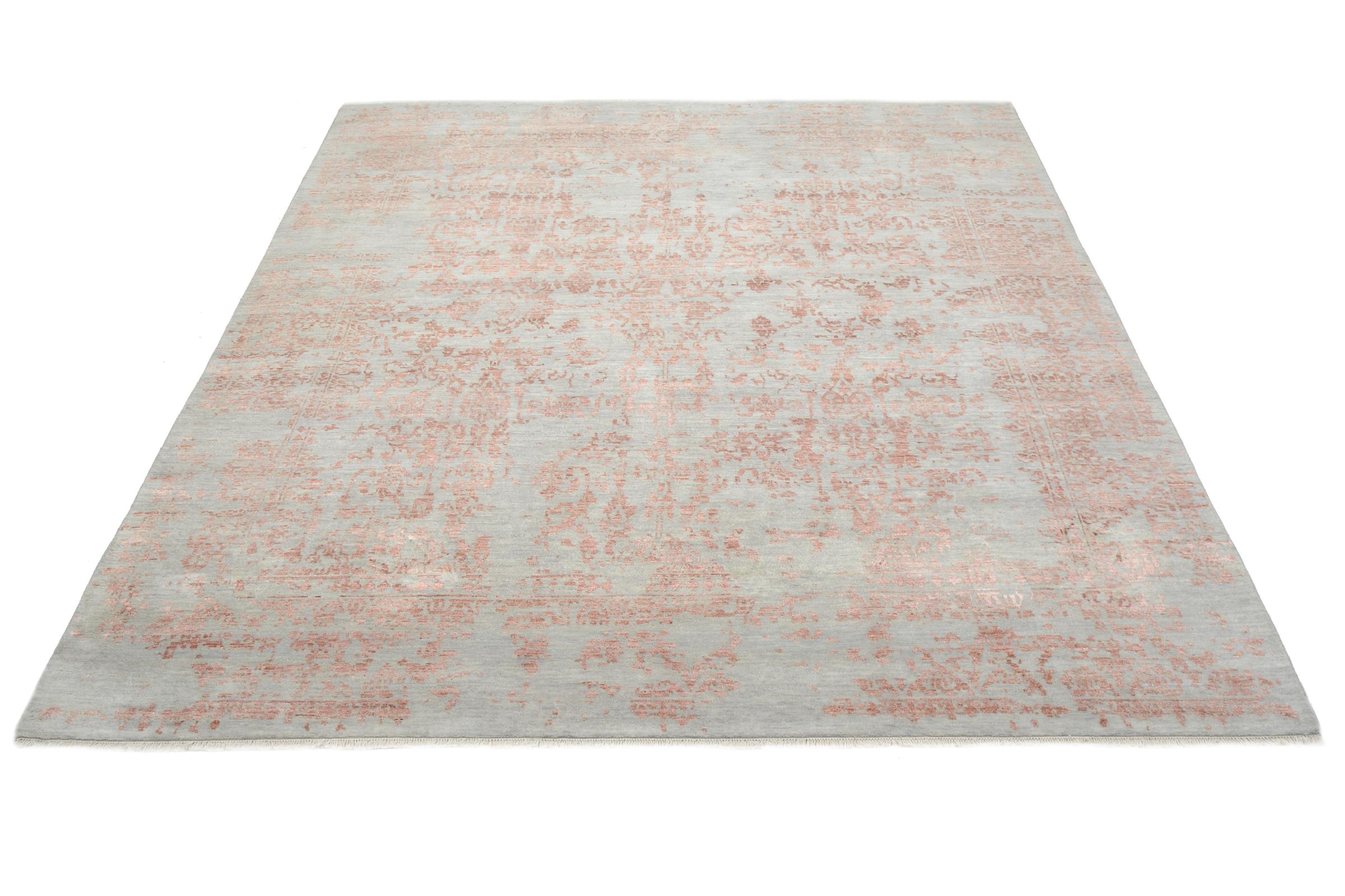 Carpet ID: 3730600689768 Size: 311x304 cm Thickness: ap. 12 mm Knot density: 200 000 - 250 000 / m² Manufacturing: Knotted by hand Pile: Wool with bamboo-silk Warp: Cotton Origin: India Age: New Weight: ap. 38 kg In stock: Unique - Only 1 in stock