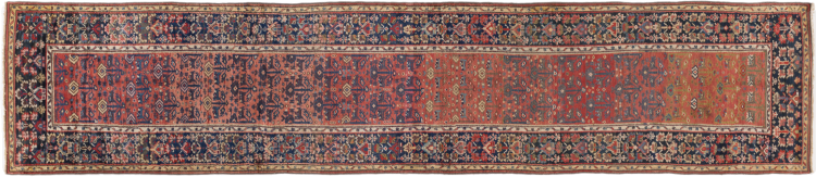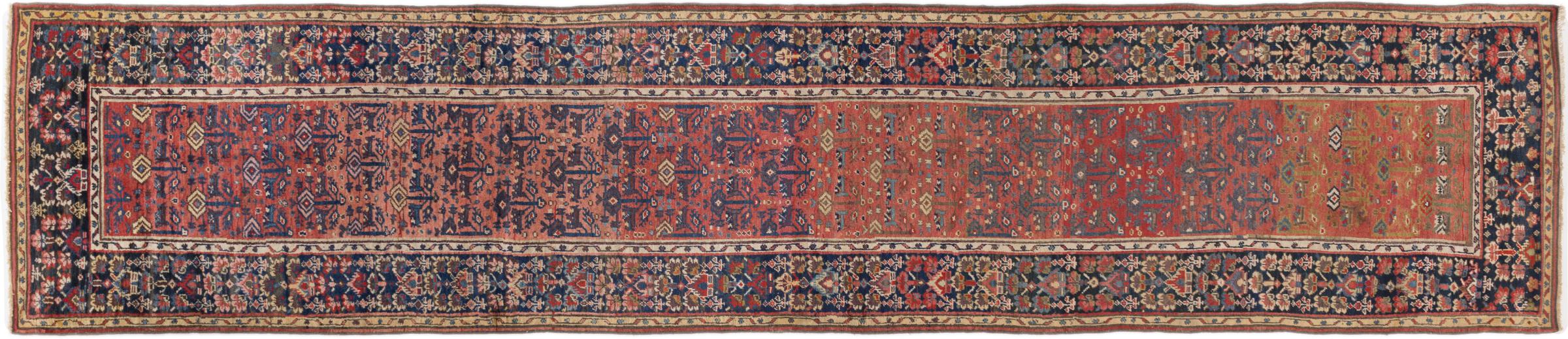 Carpet ID: 29836500908 Size: 530x108 cm Thickness: ap. 12 mm Knot density: 200 000 - 250 000 / m² Manufacturing: Knotted by hand Pile: Handspun wool Warp: Cotton Condition / Conservation Perfect Origin: Persia Age: Antique, over 80 years Weight: ap. 20 kg In stock: Unique - Only 1 in stock
