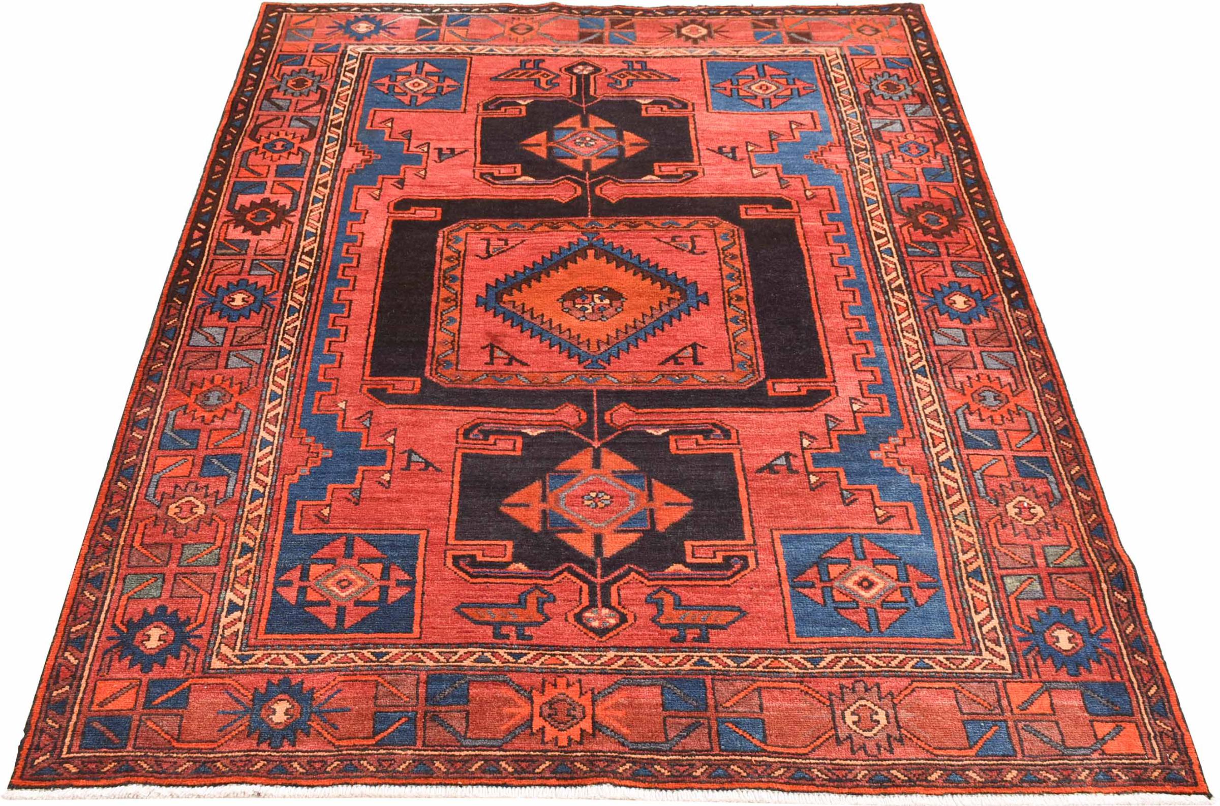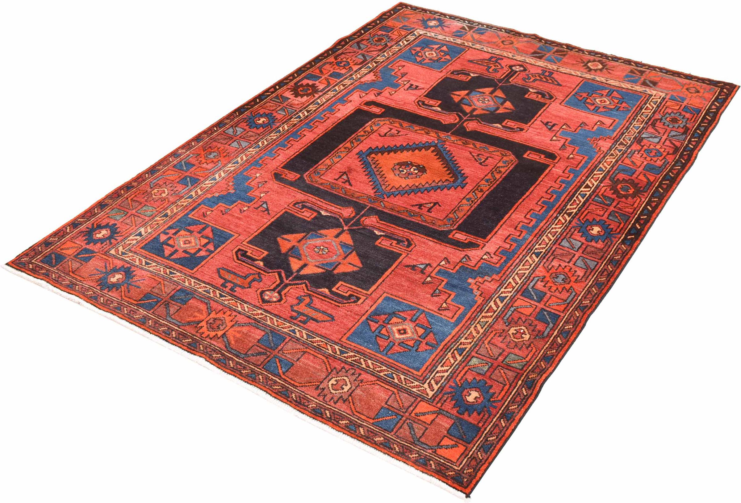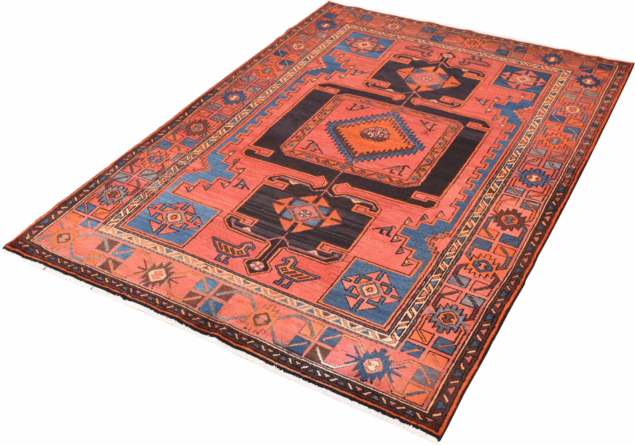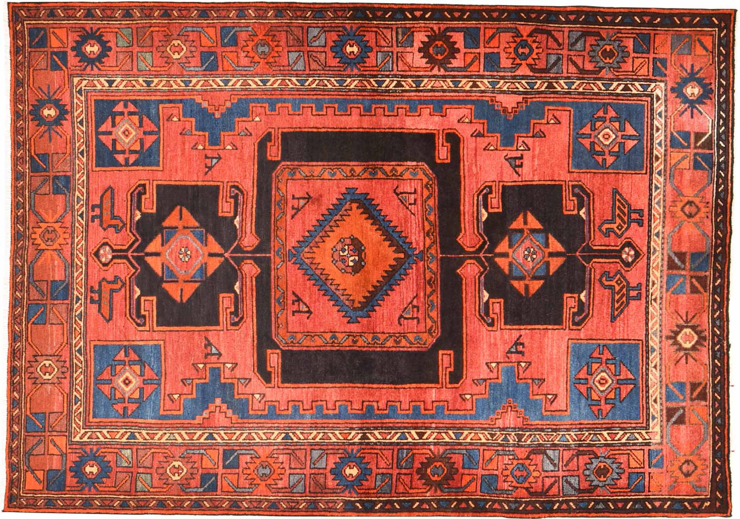 This rug belongs to village and nomadic rugs from Iran, formerly Persia. This type of rug is knotted by hand in smaller towns and villages in old tradition. Even nomads still knot Persian rugs in the open air. The rugs are knotted without a draft and completely from the mind. They are characterized by classical ornaments, which are arranged in straight and geometrical patterns. Thanks to their cultural-traditional origin, these rugs have a unique character that embodies ancient Persia.