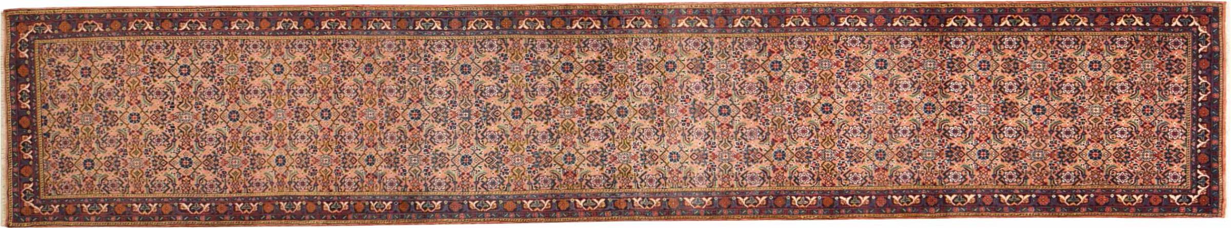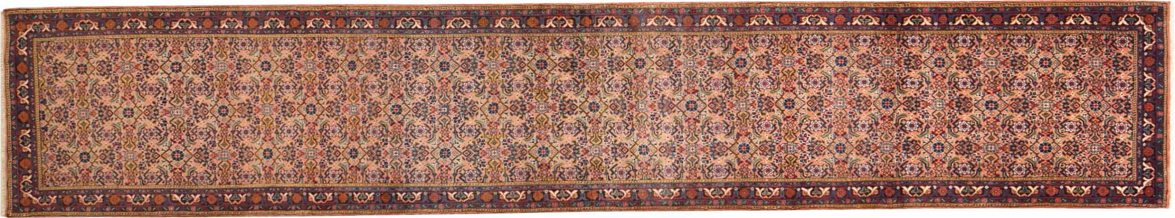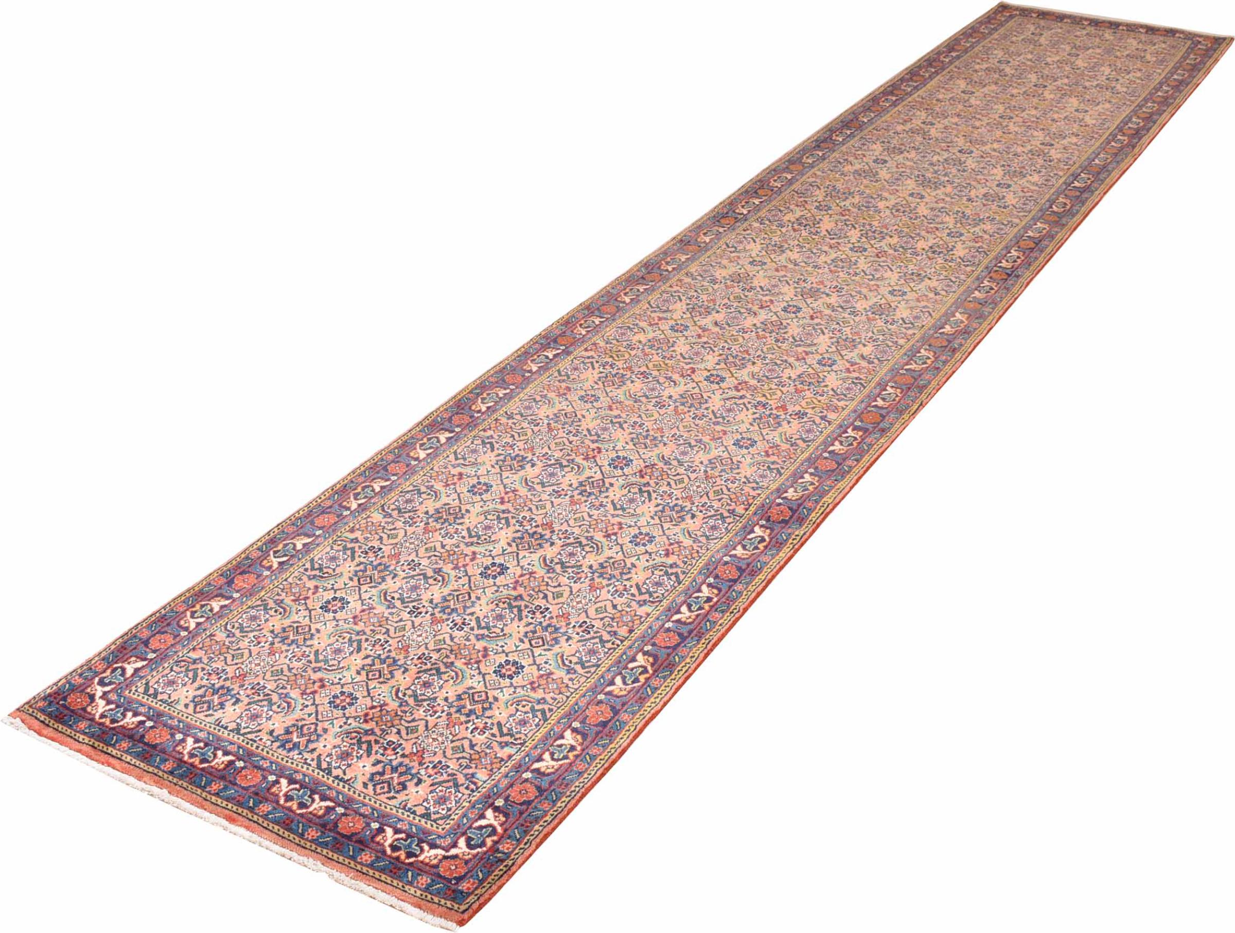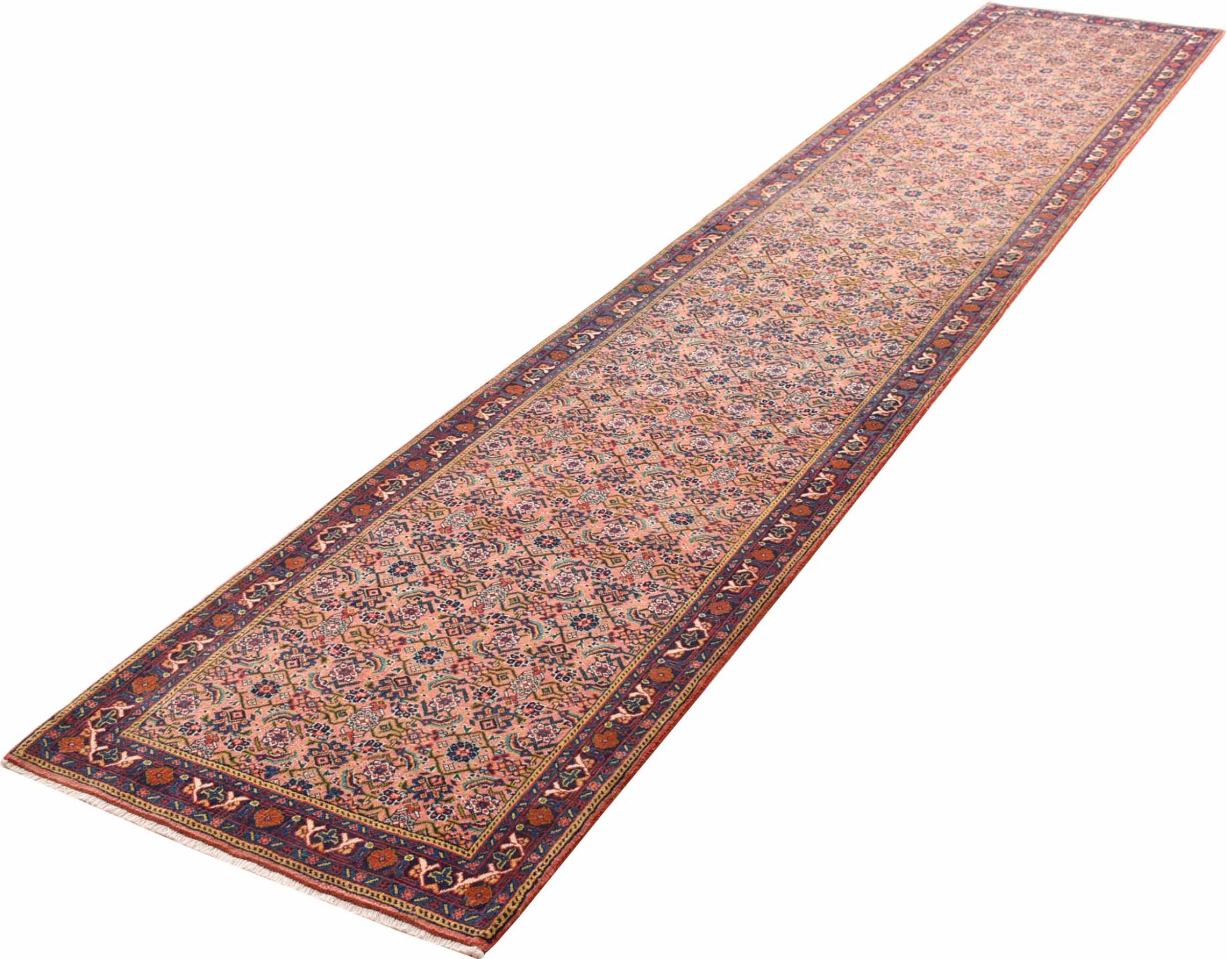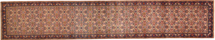 Carpet ID: 300911007895991 Size: 449x81 cm Thickness: ap. 12 mm Knot density: 160 000 - 200 000 / m² Manufacturing: Knotted by hand Pile: Handspun wool Warp: Cotton Origin: Persia Age: New Weight: ap. 13 kg Also know as Arak , Sarough, Sarouk, Saruk, Saroq, Sultanabad In stock: Unique - Only 1 in stock