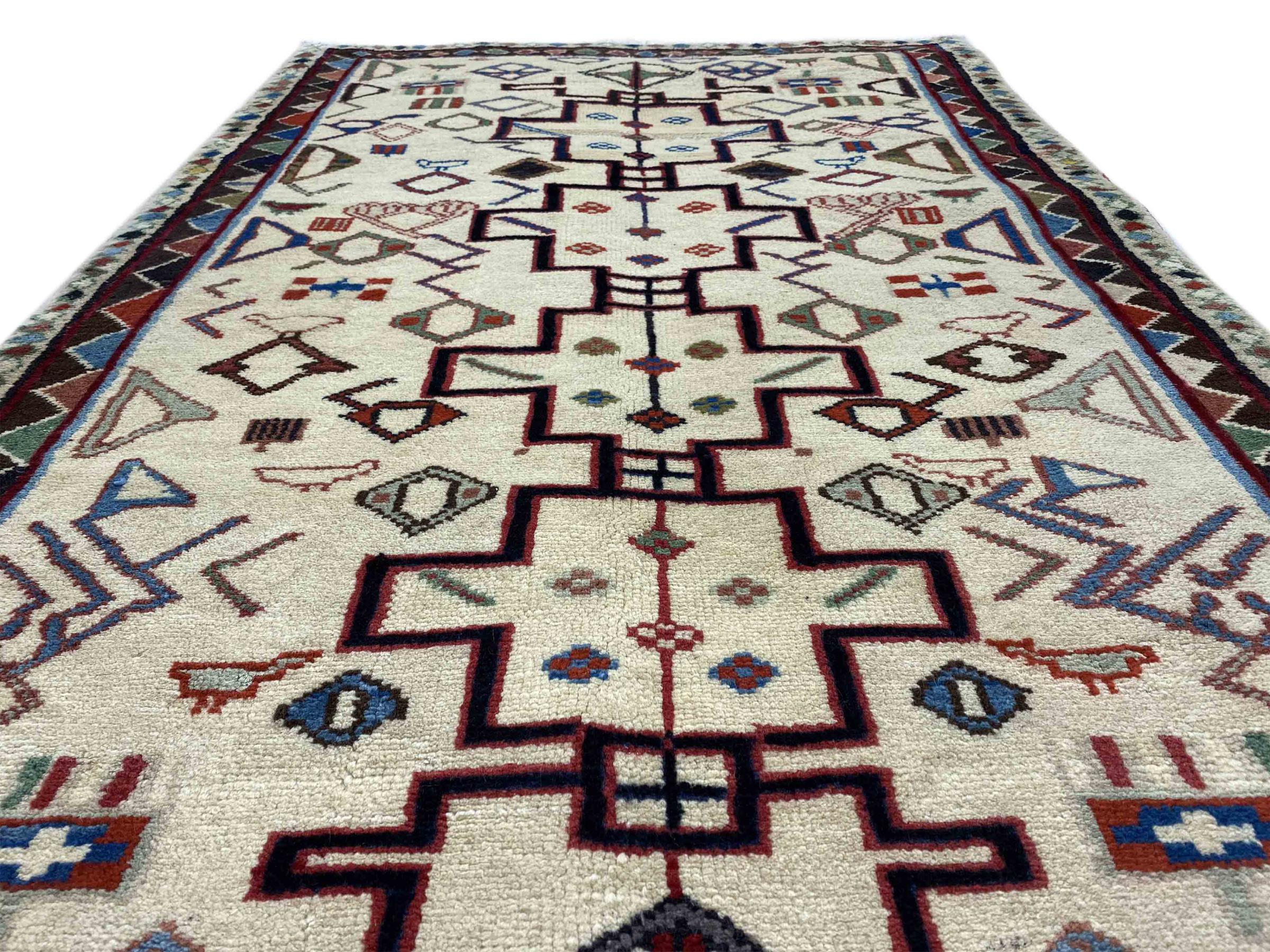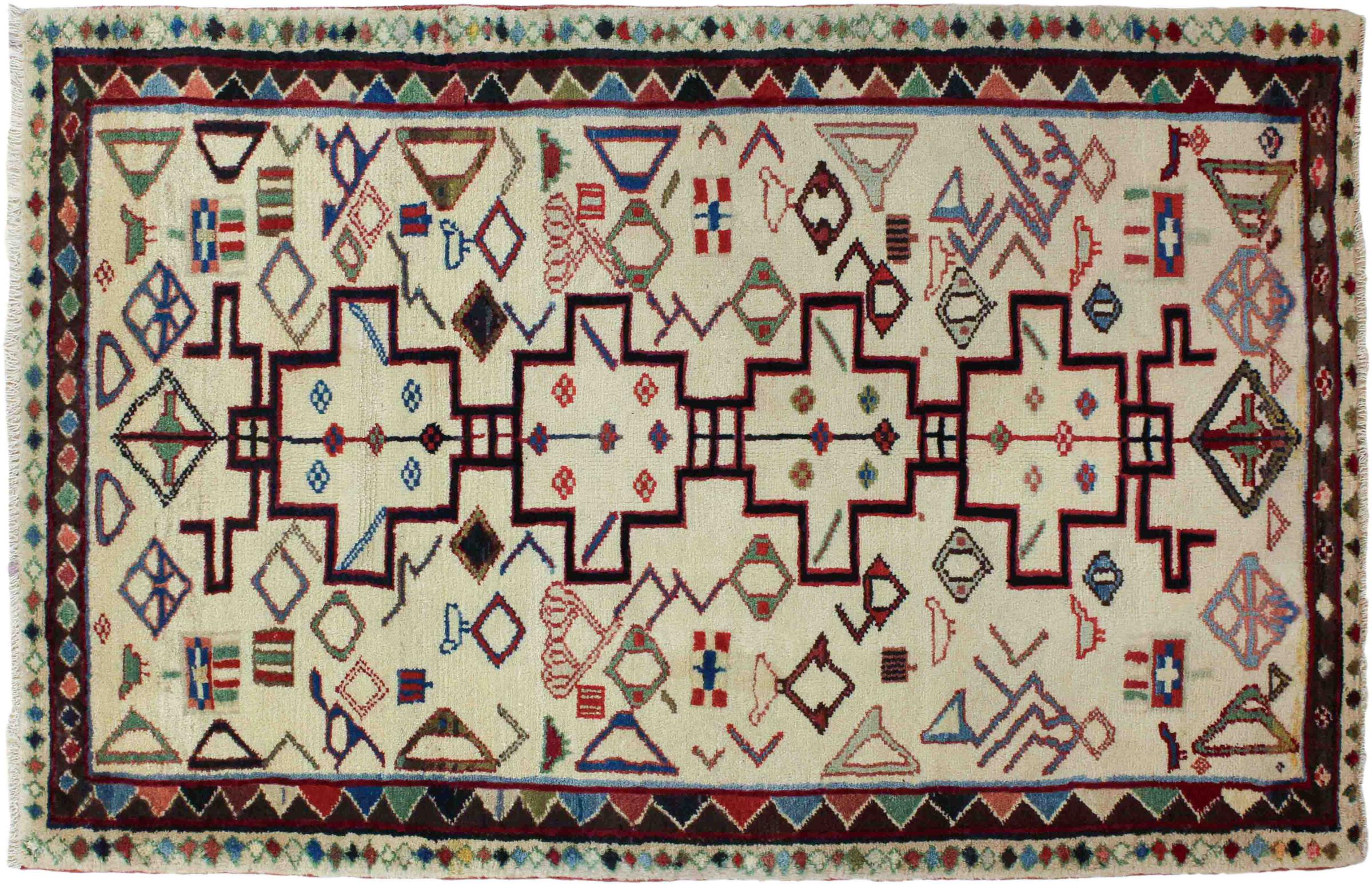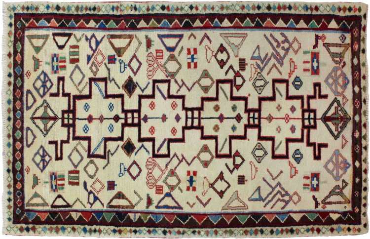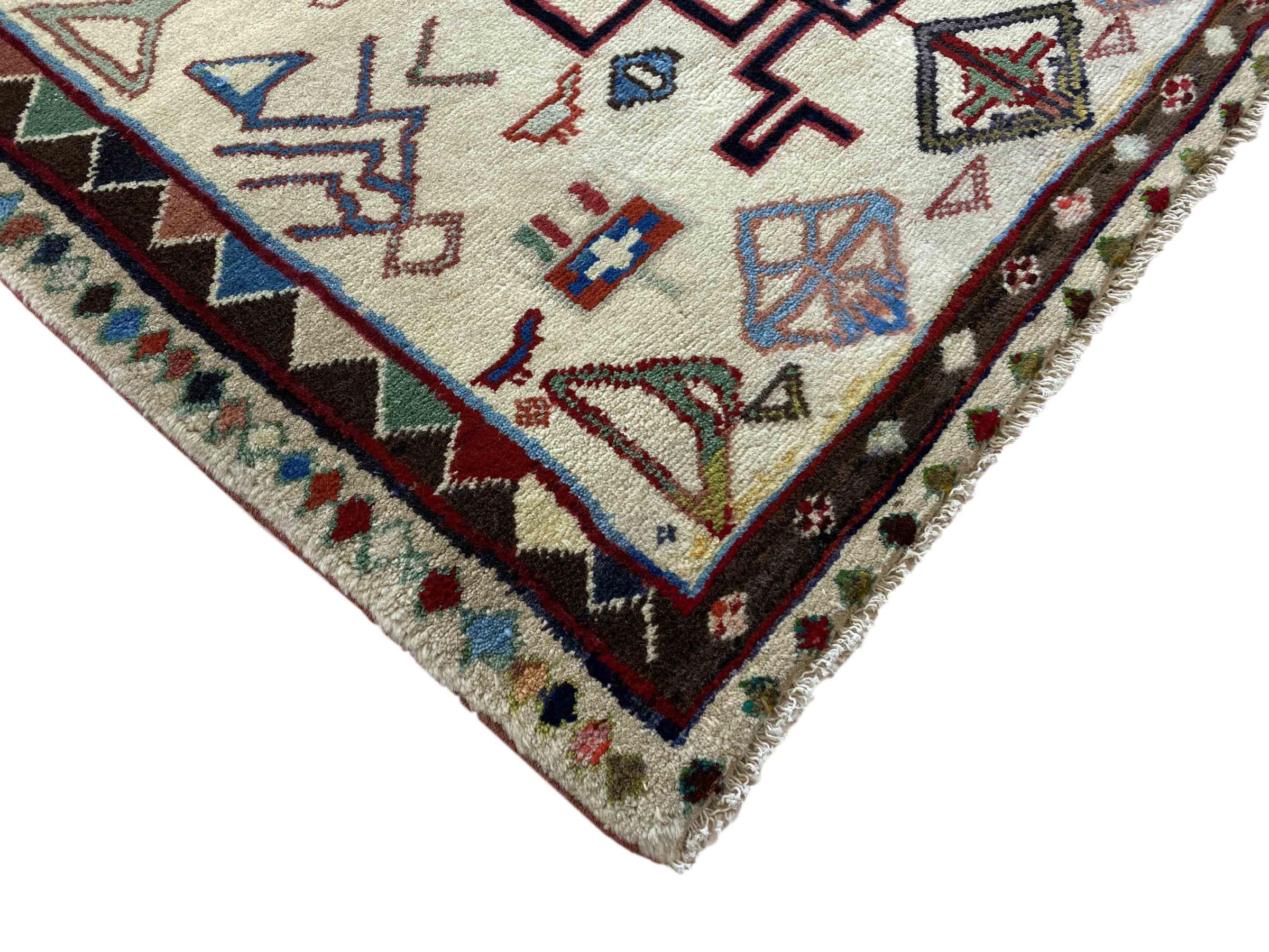 This rug belongs to village and nomadic rugs from Iran, formerly Persia. This type of rug is knotted by hand in smaller towns and villages in old tradition. Even nomads still knot Persian rugs in the open air. The rugs are knotted without a draft and completely from the mind. They are characterized by classical ornaments, which are arranged in straight and geometrical patterns. Thanks to their cultural-traditional origin, these rugs have a unique character that embodies ancient Persia.