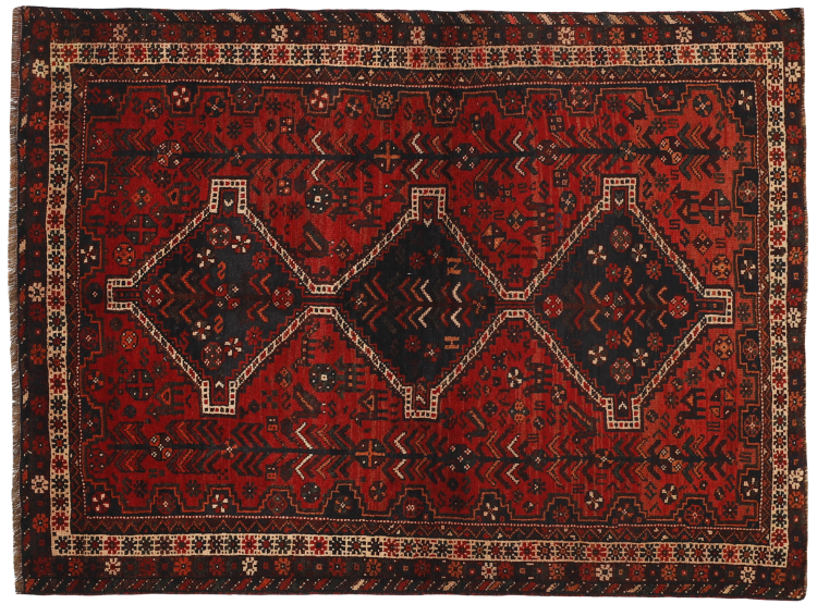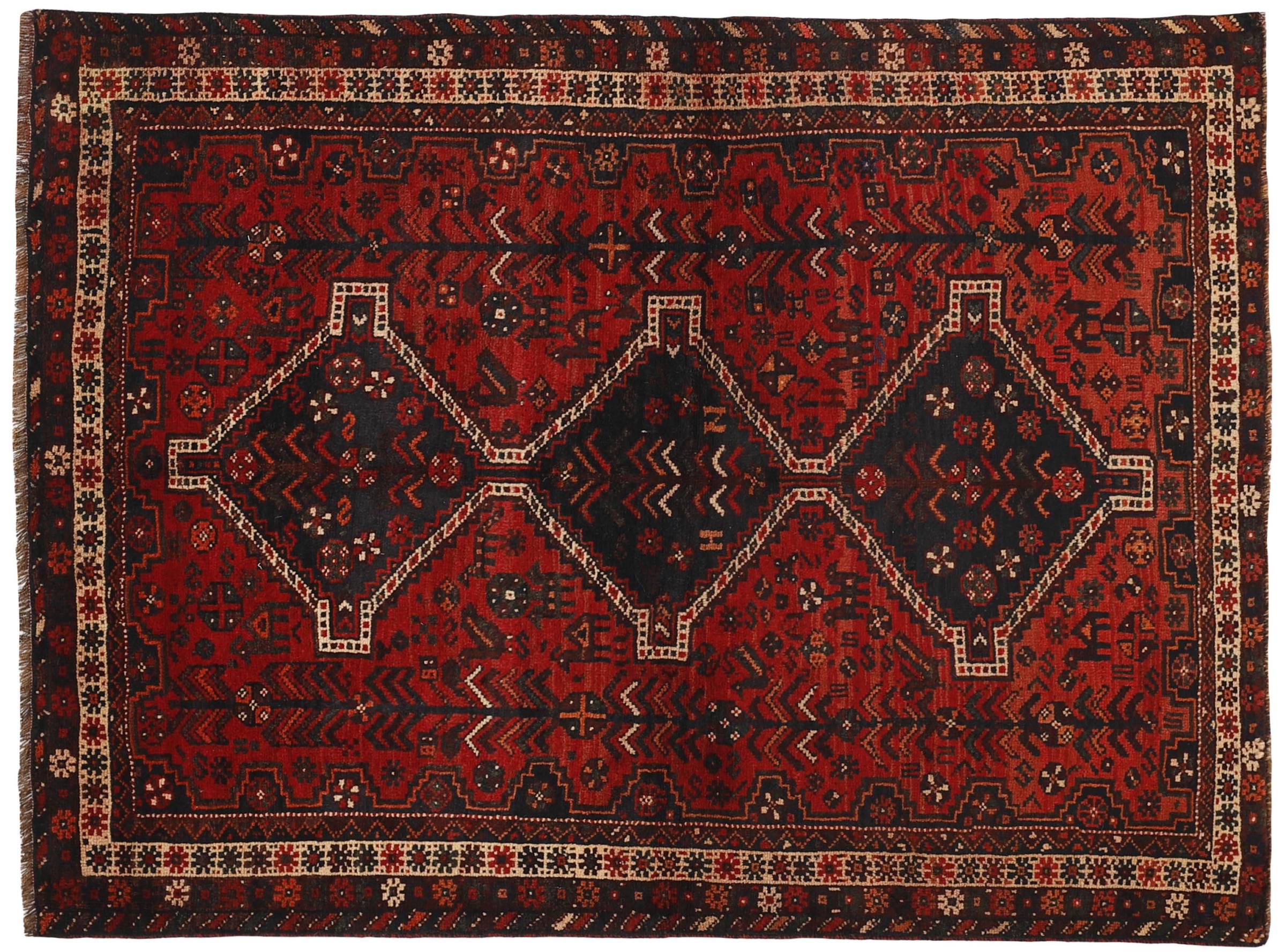 This Shiraz carpet reflects the handicraft of Nomads from the province Fars. Its simple design, the beautiful colours and the good quality convince without any doubt. Their geometric patterns make them the most modern pieces for scandinavian interior concepts. If you like Persian carpets, you will love Shiraz carpets.
