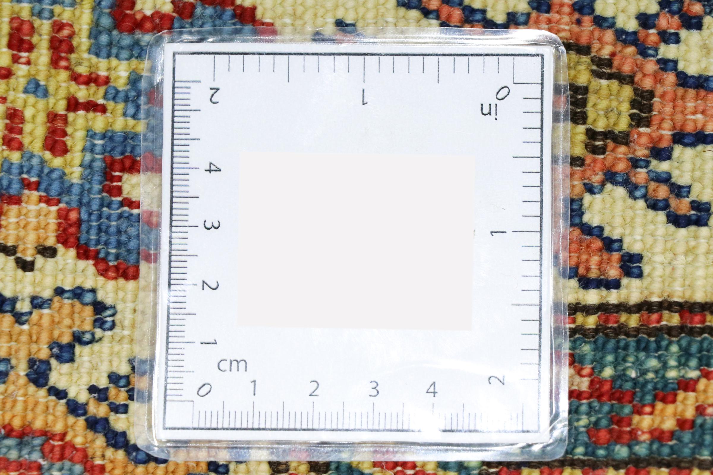 Carpet ID: 303450007030696 Size: 122x82 cm Thickness: ap. 5 mm Knot density: 128 000 - 160 000 / m² Manufacturing: Knotted by hand Pile: Handspun wool Warp: Cotton Origin: Afghanistan Age: New Weight: ap. 4 kg In stock: Unique - Only 1 in stock