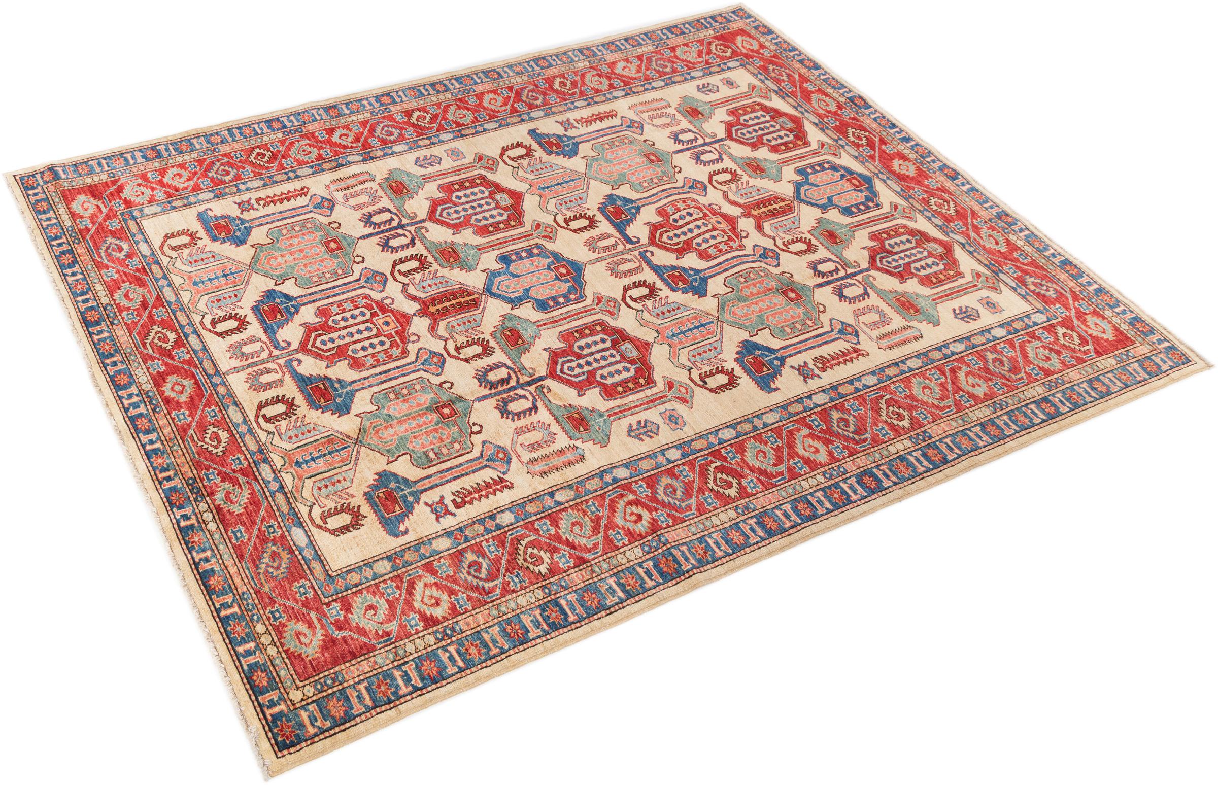 Kazak rugs are originally Caucasian rugs and are considered the best of their kind. They are hand-knotted from high-quality wool and are characterised by their design with warm natural colours and straight geometric shapes.