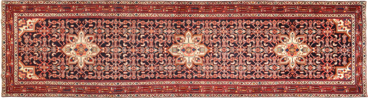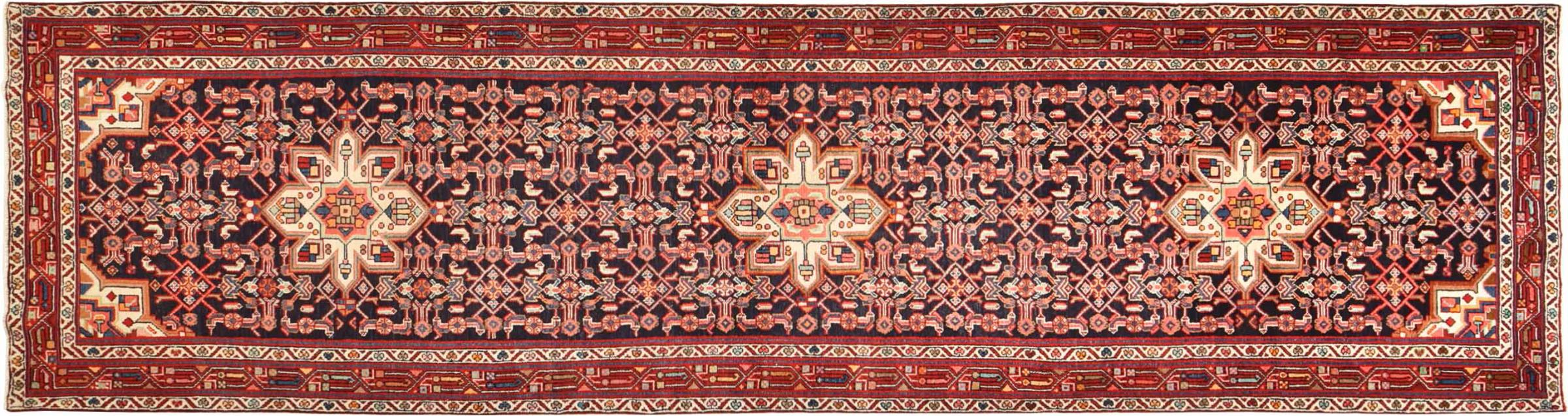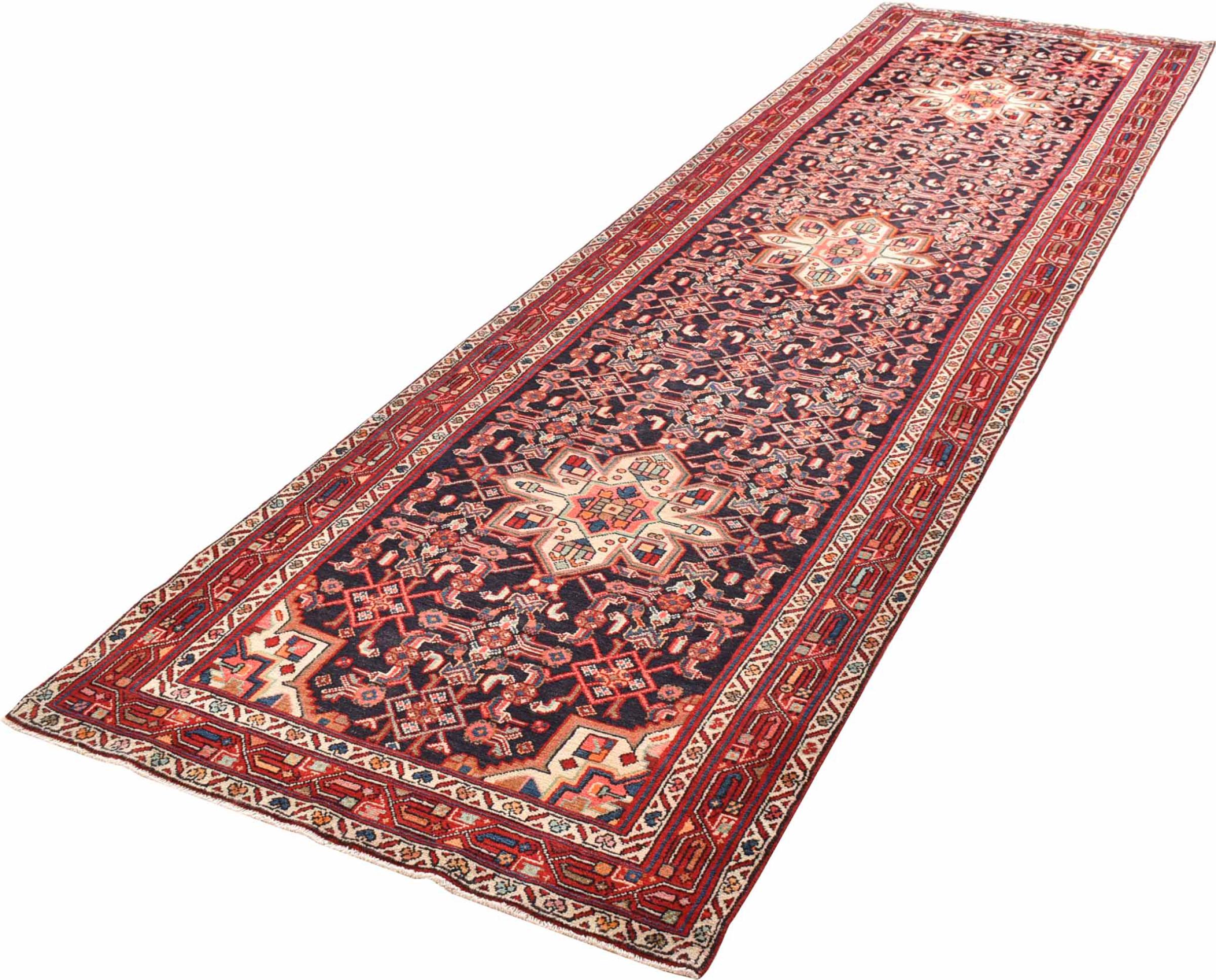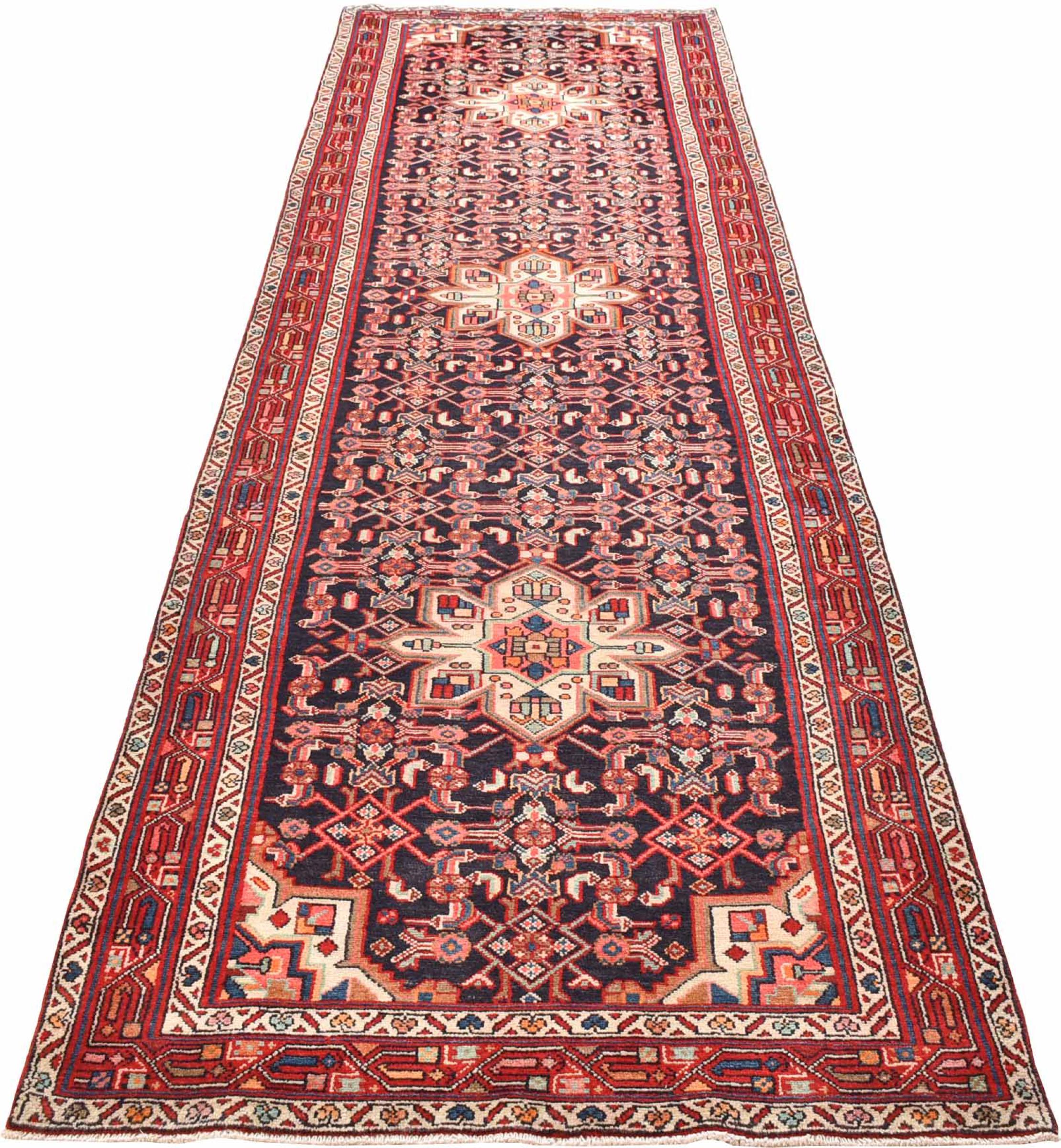 Carpet ID: 30101800334576 Size: 421x113 cm Thickness: ap. 12 mm Knot density: 72 000 - 90 000 / m² Manufacturing: Knotted by hand Pile: Handspun wool Warp: Cotton Origin: Persia Age: New Weight: ap. 17 kg Also know as Huseinabad In stock: Unique - Only 1 in stock