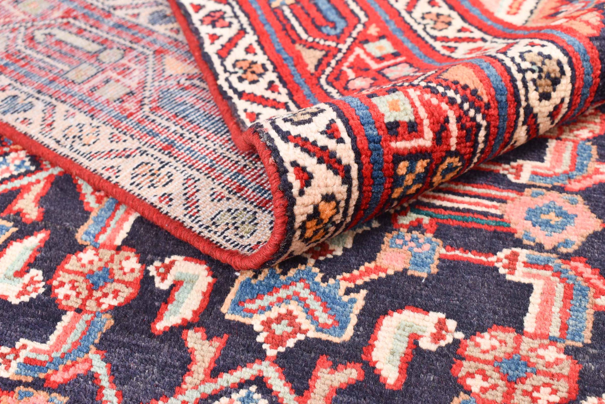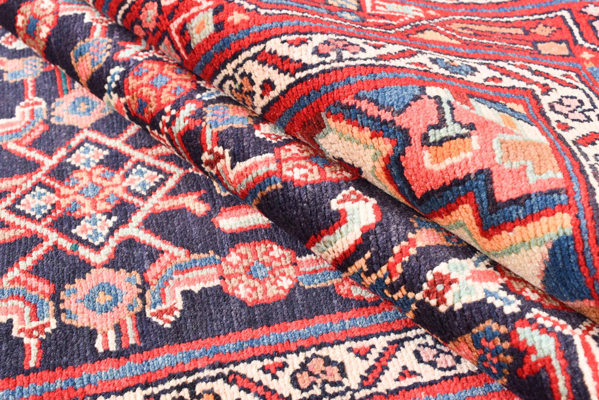 This rug belongs to village and nomadic rugs from Iran, formerly Persia. This type of rug is knotted by hand in smaller towns and villages in old tradition. Even nomads still knot Persian rugs in the open air. The rugs are knotted without a draft and completely from the mind. They are characterized by classical ornaments, which are arranged in straight and geometrical patterns. Thanks to their cultural-traditional origin, these rugs have a unique character that embodies ancient Persia.