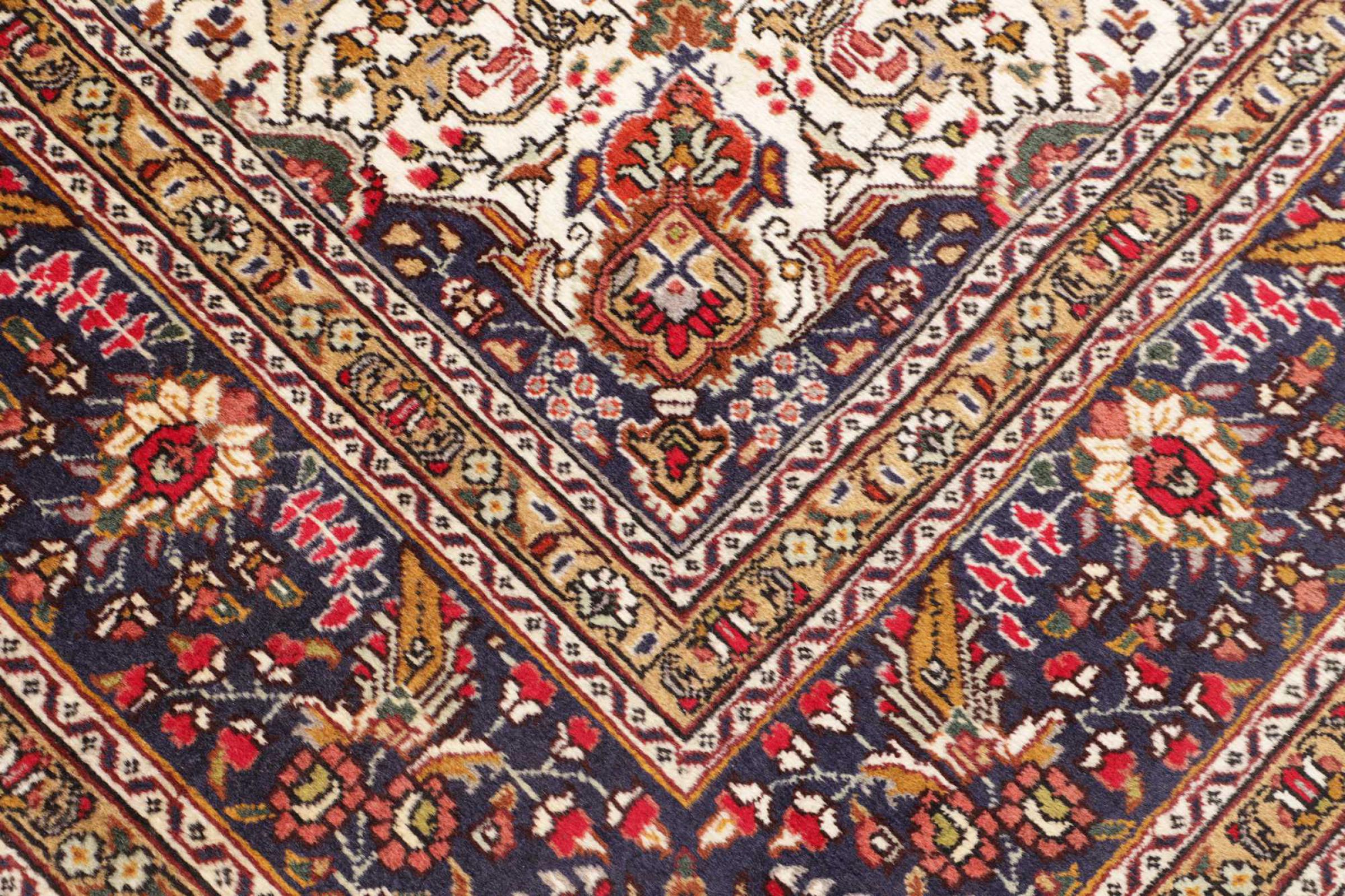 This rug is made of hand spun sheep wool of the highest quality. Especially in Iran (former Persia), Afghanistan and Pakistan wool is still spun by hand before the actual knotting of the rug begins. Wool has proven itself as a natural and extremely hard-wearing material over centuries. Among other things, it has dirt-repellent and heat-insulating properties. At the same time, wool is incomparably soft and has a natural shine.