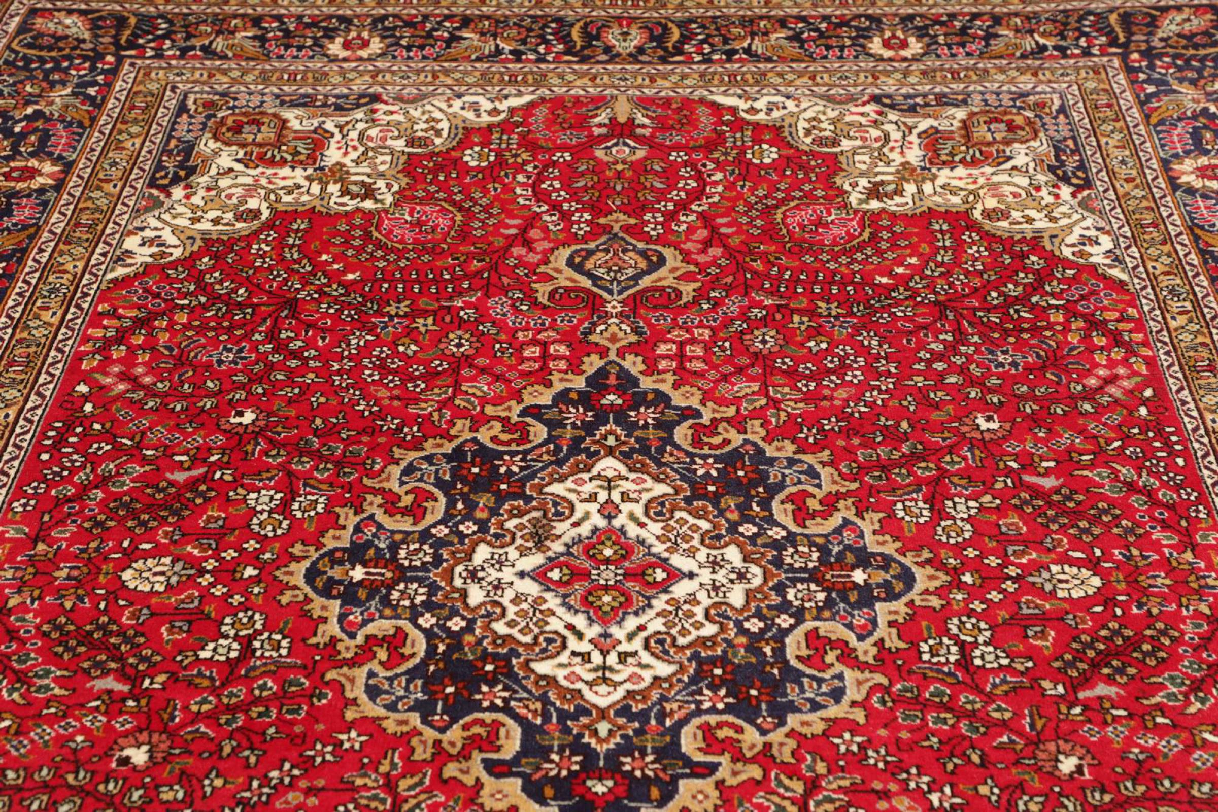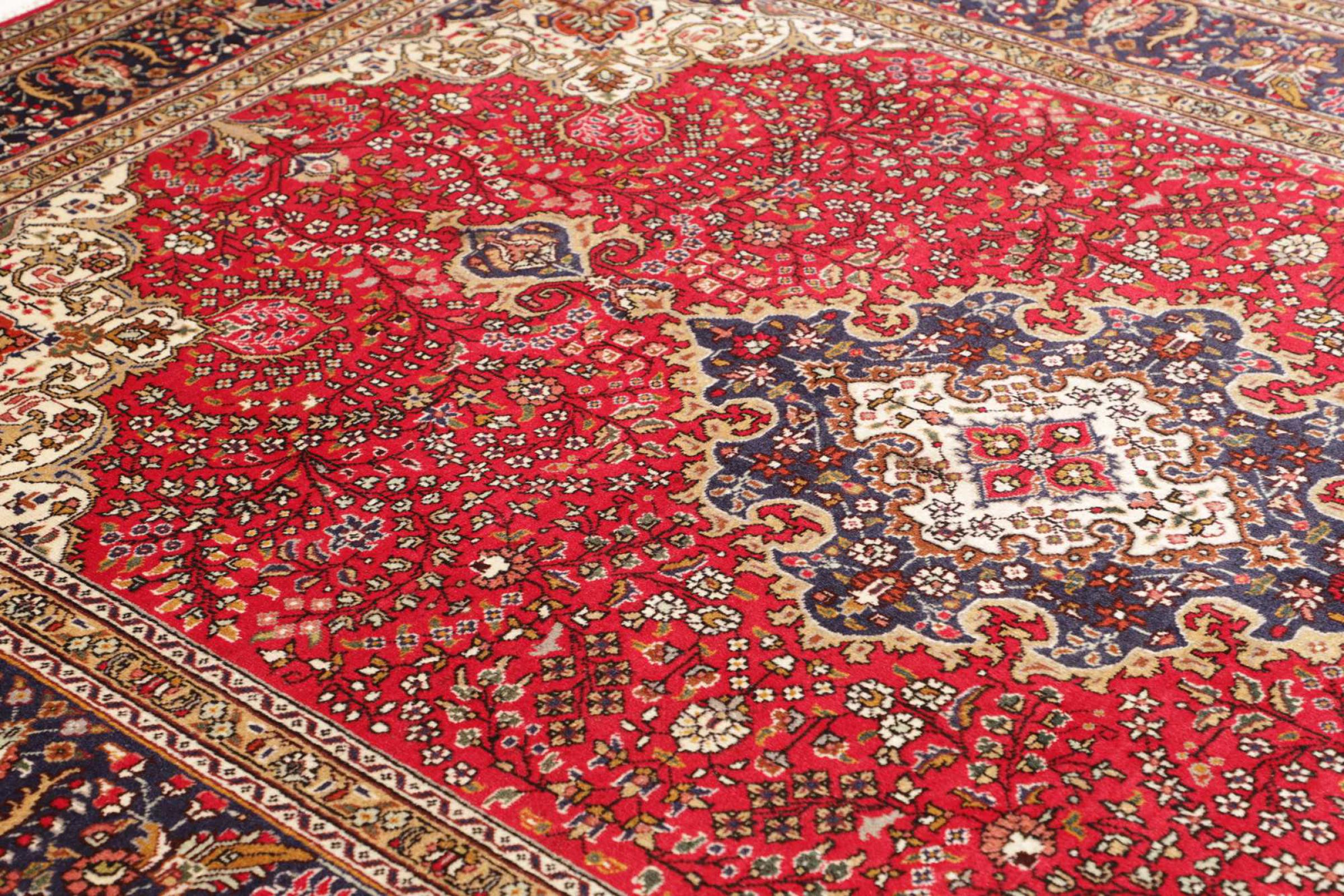 Tabris is one of the largest cities in Iran and is one of the most famous Persian rug provenance. Tabris rugs are often indicated by a "Raj" number. The higher this number, the finer the rug is, as it indicates the knot density. There are both average (40 Raj) and exceptionally fine (80 Raj) Persian rugs from Tabris.