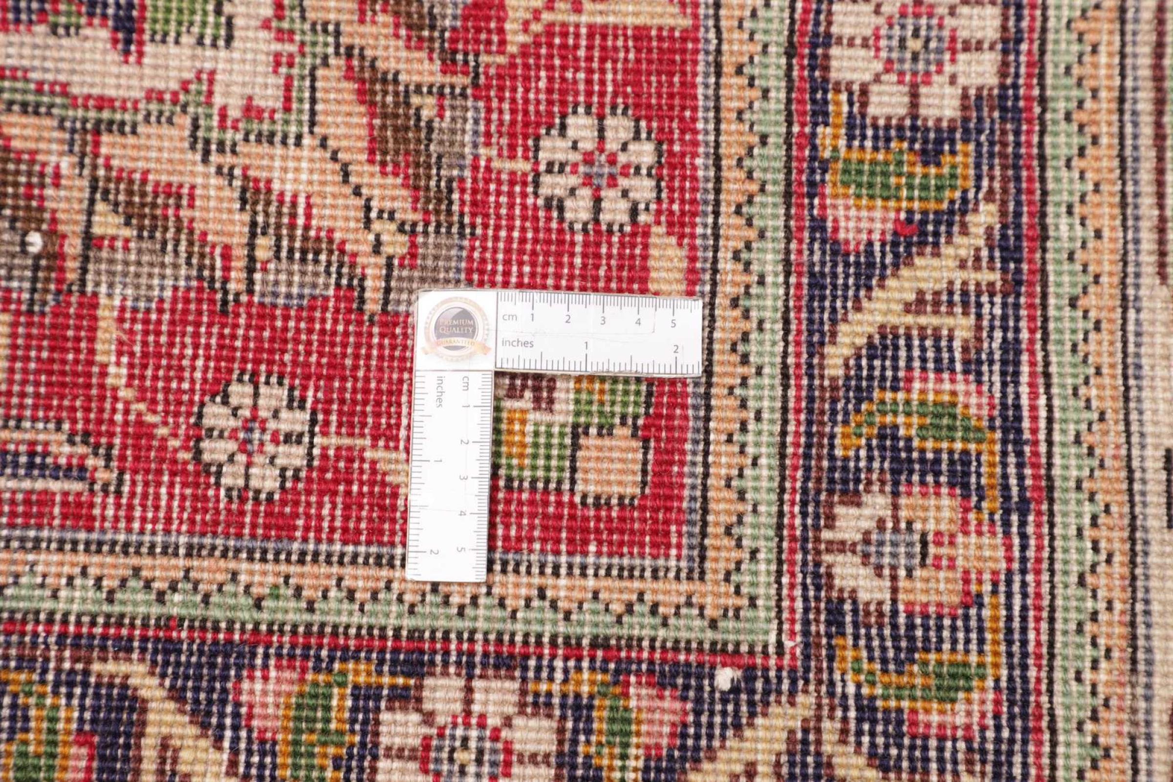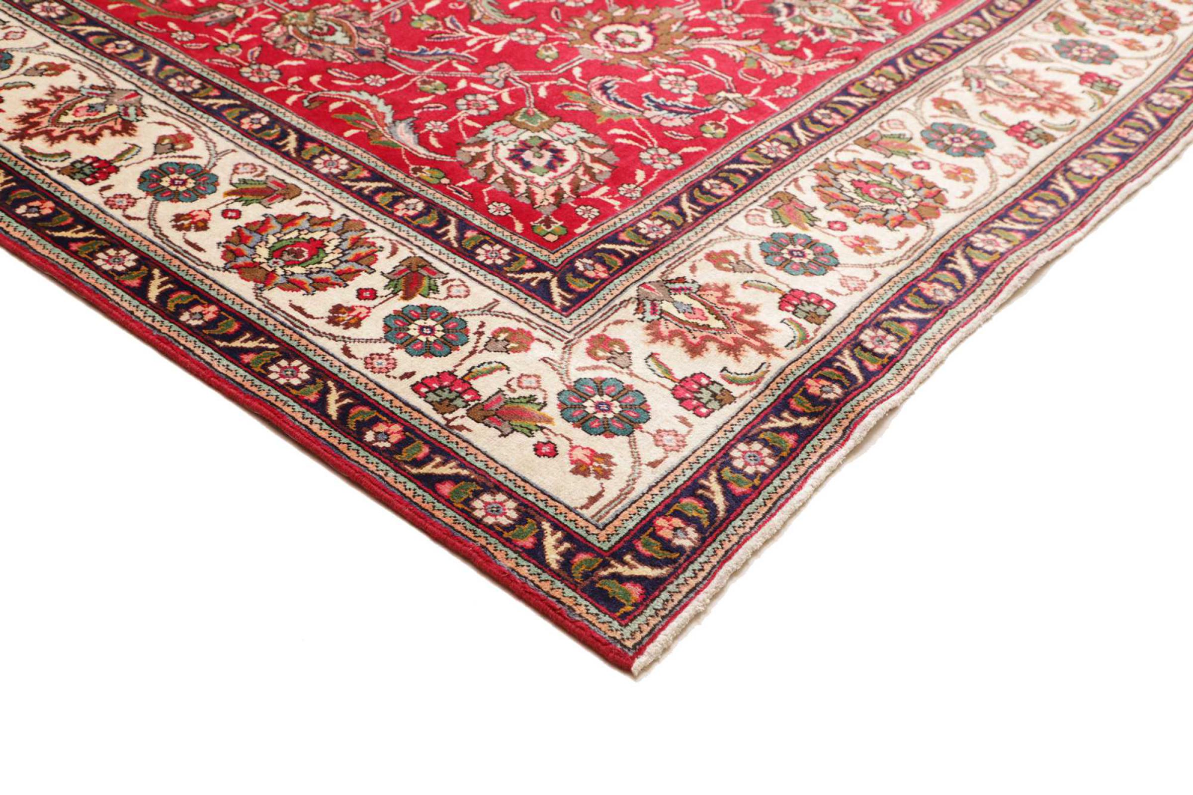Carpet ID: 306215005888774 Size: 364x271 cm Thickness: ap. 10 mm Knot density: 128 000 - 160 000 / m² Manufacturing: Knotted by hand Pile: Handspun wool Warp: Cotton Origin: Persia Age: New Weight: ap. 35 kg Also know as Tabris, Tabriz, Tebris, Tebriz, Täbris, Village In stock: Unique - Only 1 in stock