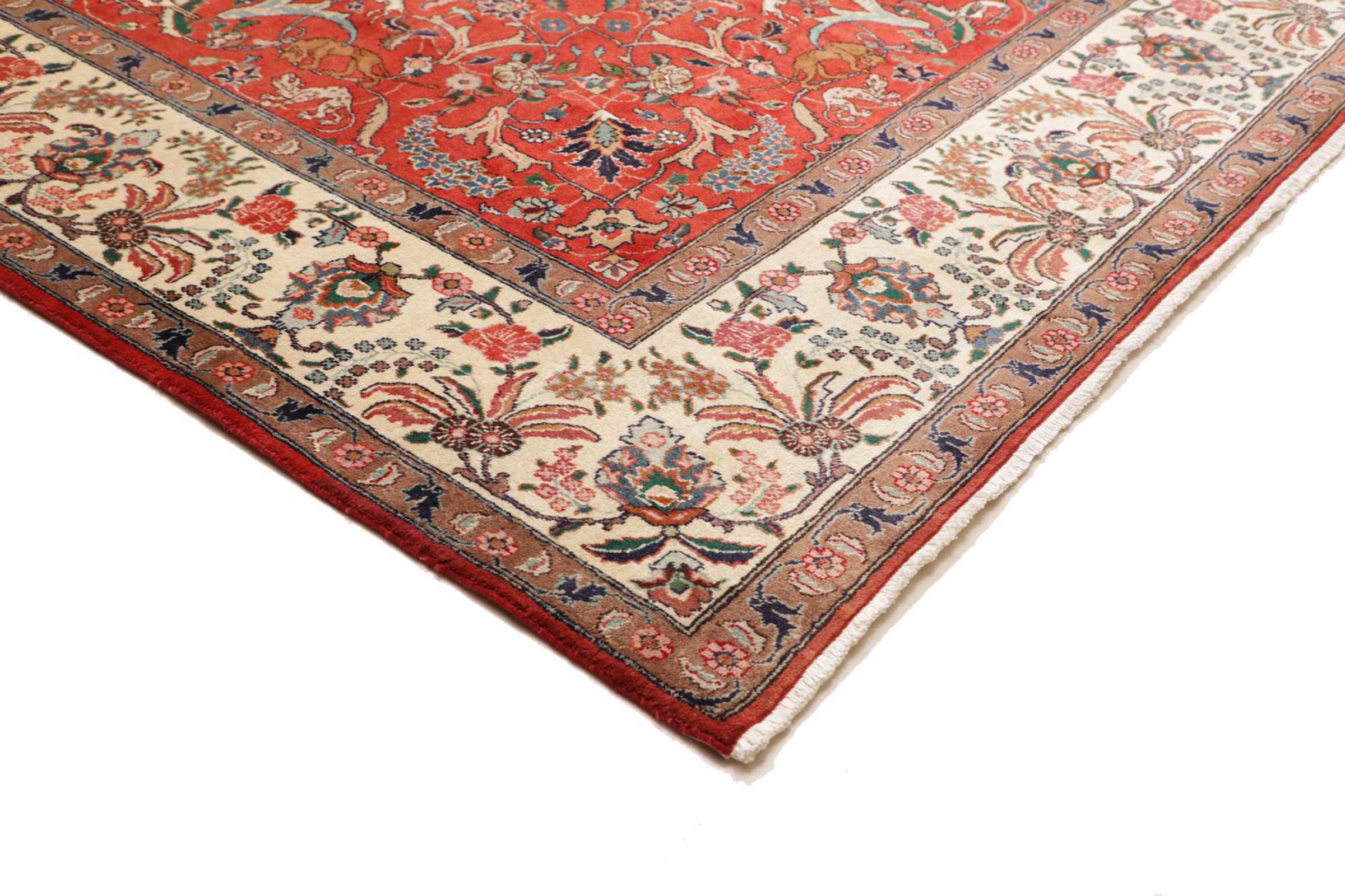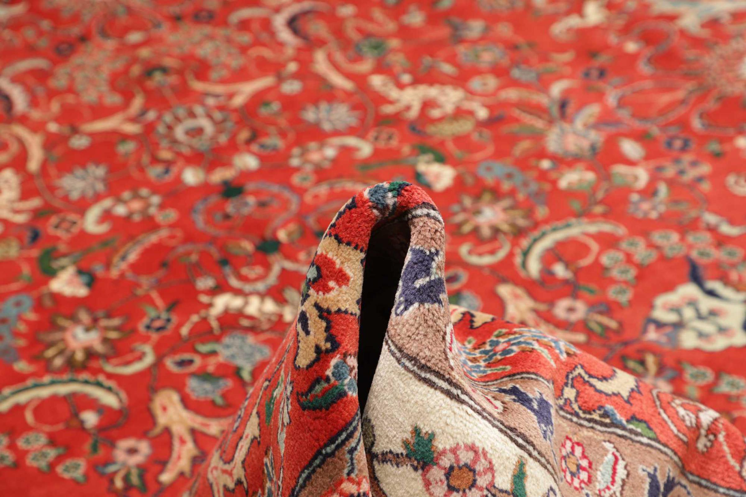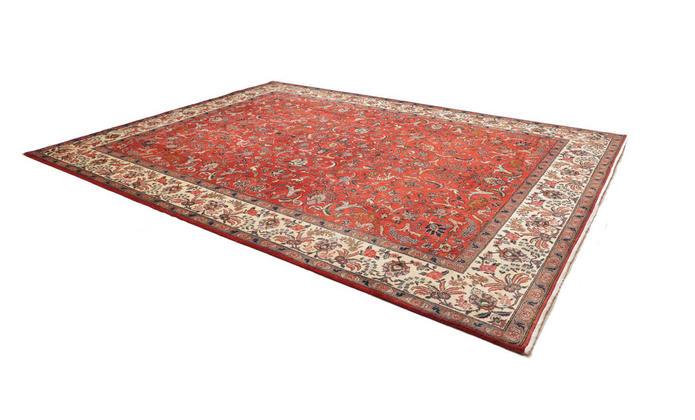 Carpet ID: 306362002341473 Size: 384x285 cm Thickness: ap. 10 mm Knot density: 128 000 - 160 000 / m² Manufacturing: Knotted by hand Pile: Handspun wool Warp: Cotton Origin: Persia Age: New Weight: ap. 38 kg Also know as Tabris, Tabriz, Tebris, Tebriz, Täbris, Village In stock: Unique - Only 1 in stock