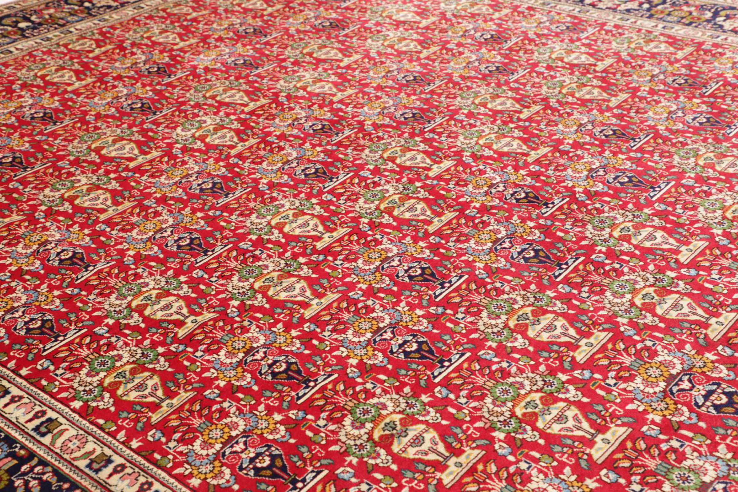 Tabris is one of the largest cities in Iran and is one of the most famous Persian rug provenance. Tabris rugs are often indicated by a "Raj" number. The higher this number, the finer the rug is, as it indicates the knot density. There are both average (40 Raj) and exceptionally fine (80 Raj) Persian rugs from Tabris.