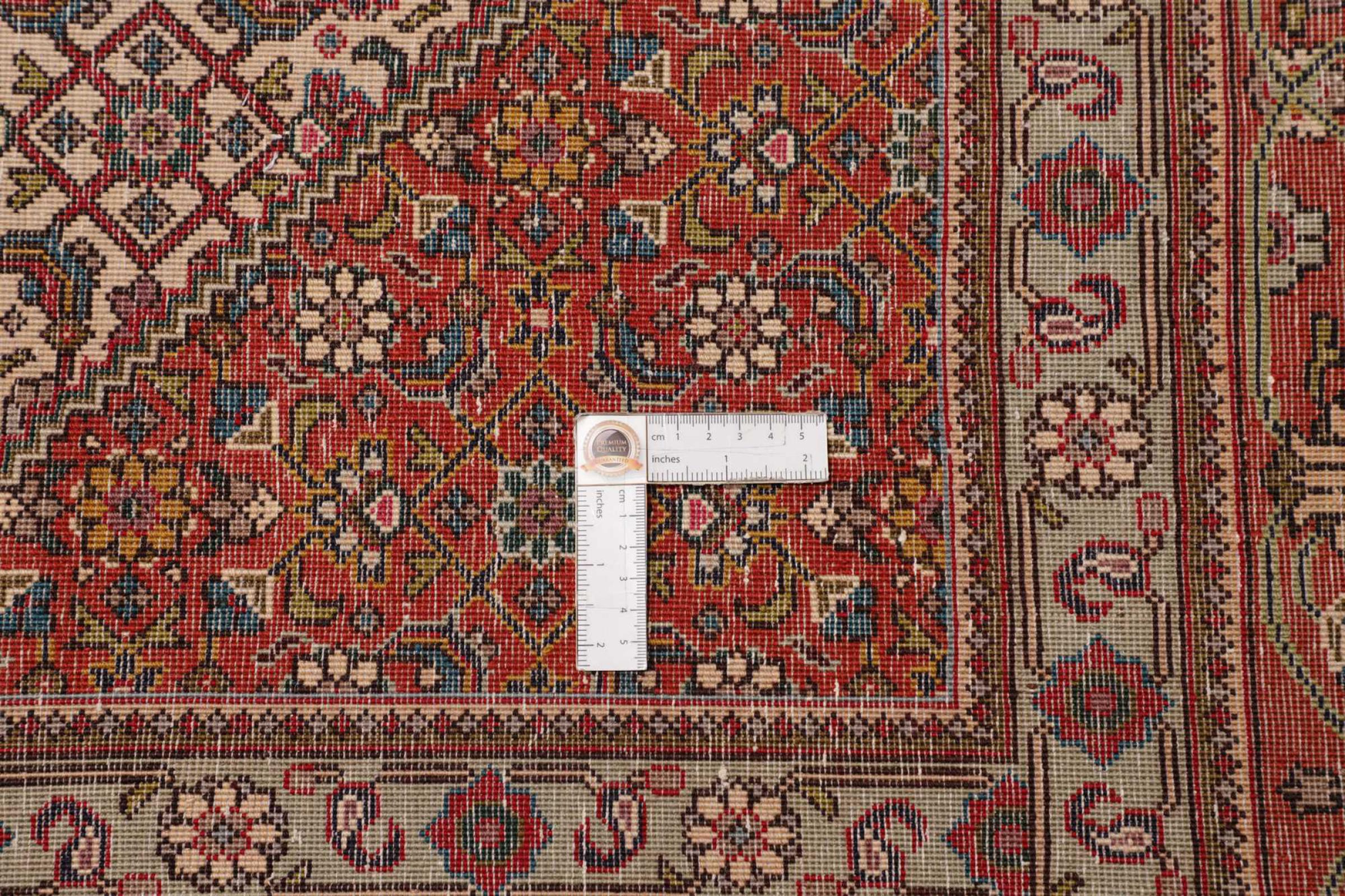 Carpet ID: 30625200336980 Size: 391x304 cm Thickness: ap. 10 mm Knot density: 128 000 - 160 000 / m² Manufacturing: Knotted by hand Pile: Handspun wool Warp: Cotton Origin: Persia Age: New Weight: ap. 42 kg Also know as Tabris, Tabriz, Tebris, Tebriz, Täbris, Village In stock: Unique - Only 1 in stock