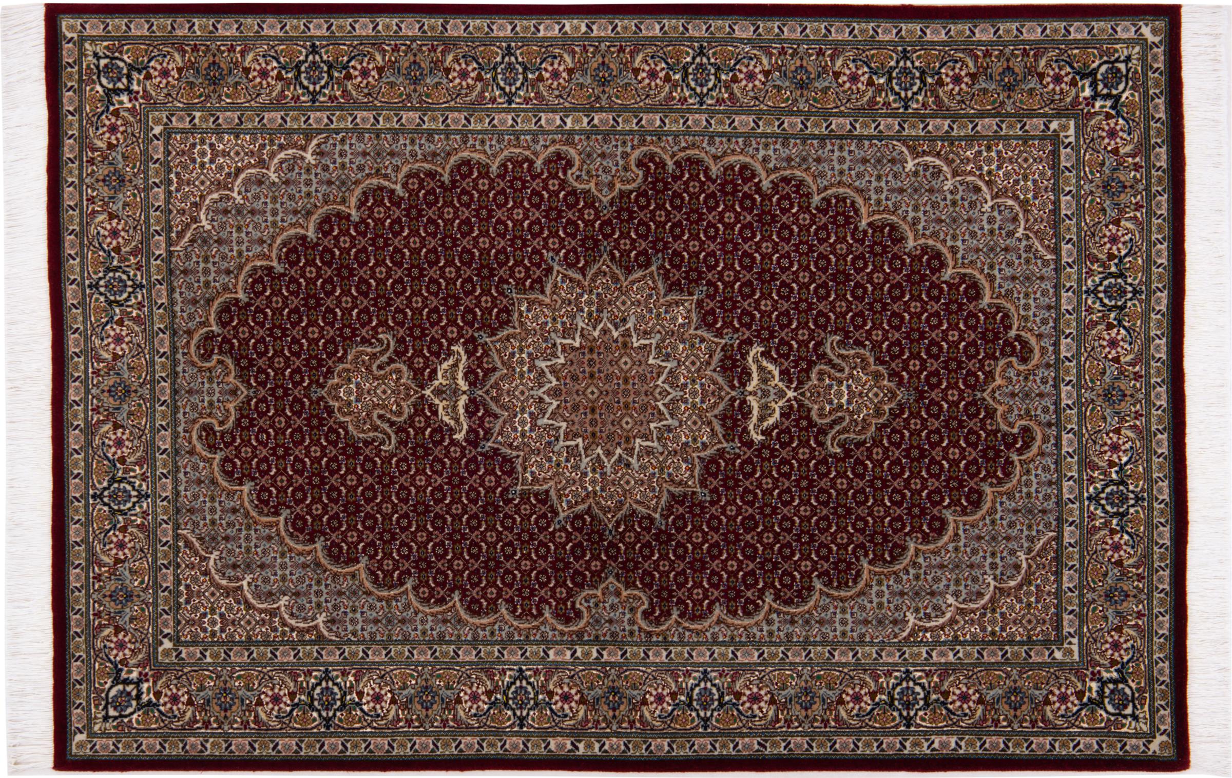 Carpet ID: 292467007725053 Size: 149x101 cm Thickness: ap. 7 mm Knot density: 440 000 - 490 000 / m² Manufacturing: Knotted by hand Pile: Wool with silk Warp: Cotton Origin: Persia Age: New Weight: ap. 5 kg Also know as Tabriz, Tabris, Täbris, Tebriz, Tebris, 40Raj, 50Raj In stock: Unique - Only 1 in stock