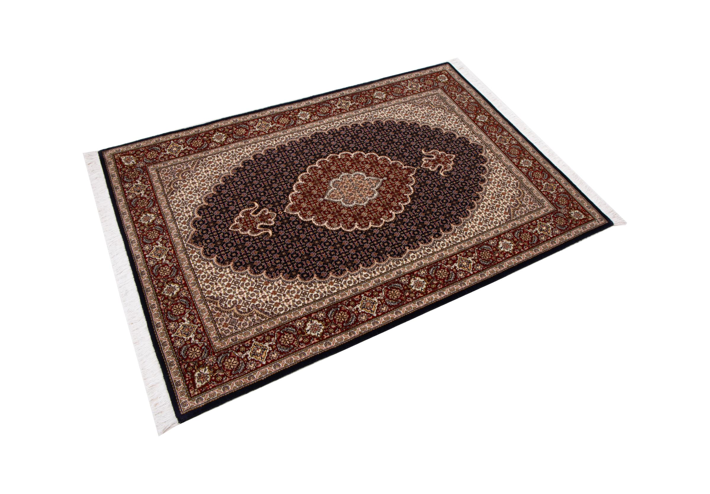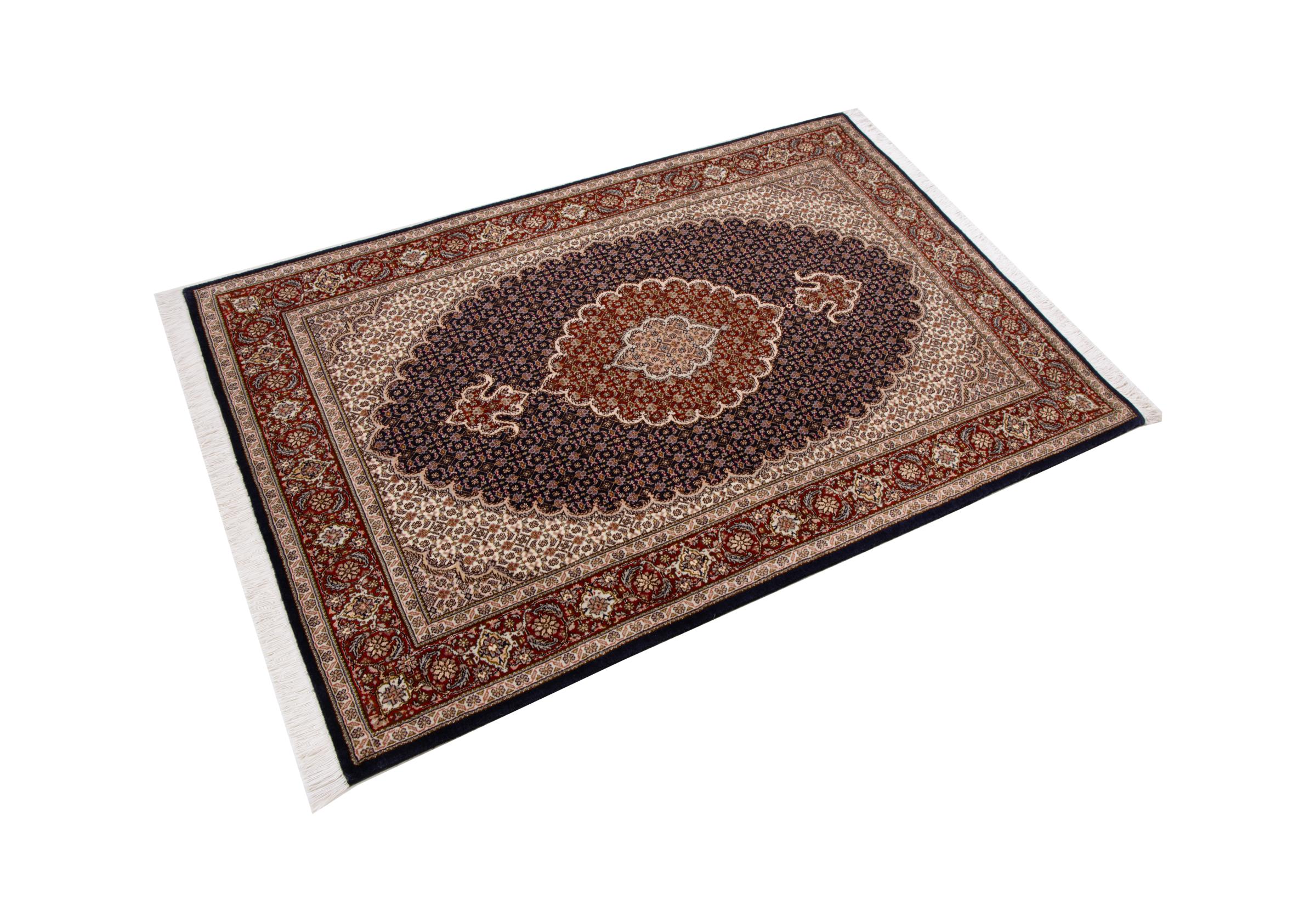 Carpet ID: 292490009765170 Size: 152x101 cm Thickness: ap. 7 mm Knot density: 440 000 - 490 000 / m² Manufacturing: Knotted by hand Pile: Wool with silk Warp: Cotton Origin: Persia Age: New Weight: ap. 5 kg Also know as Tabriz, Tabris, Täbris, Tebriz, Tebris, 40Raj, 50Raj In stock: Unique - Only 1 in stock