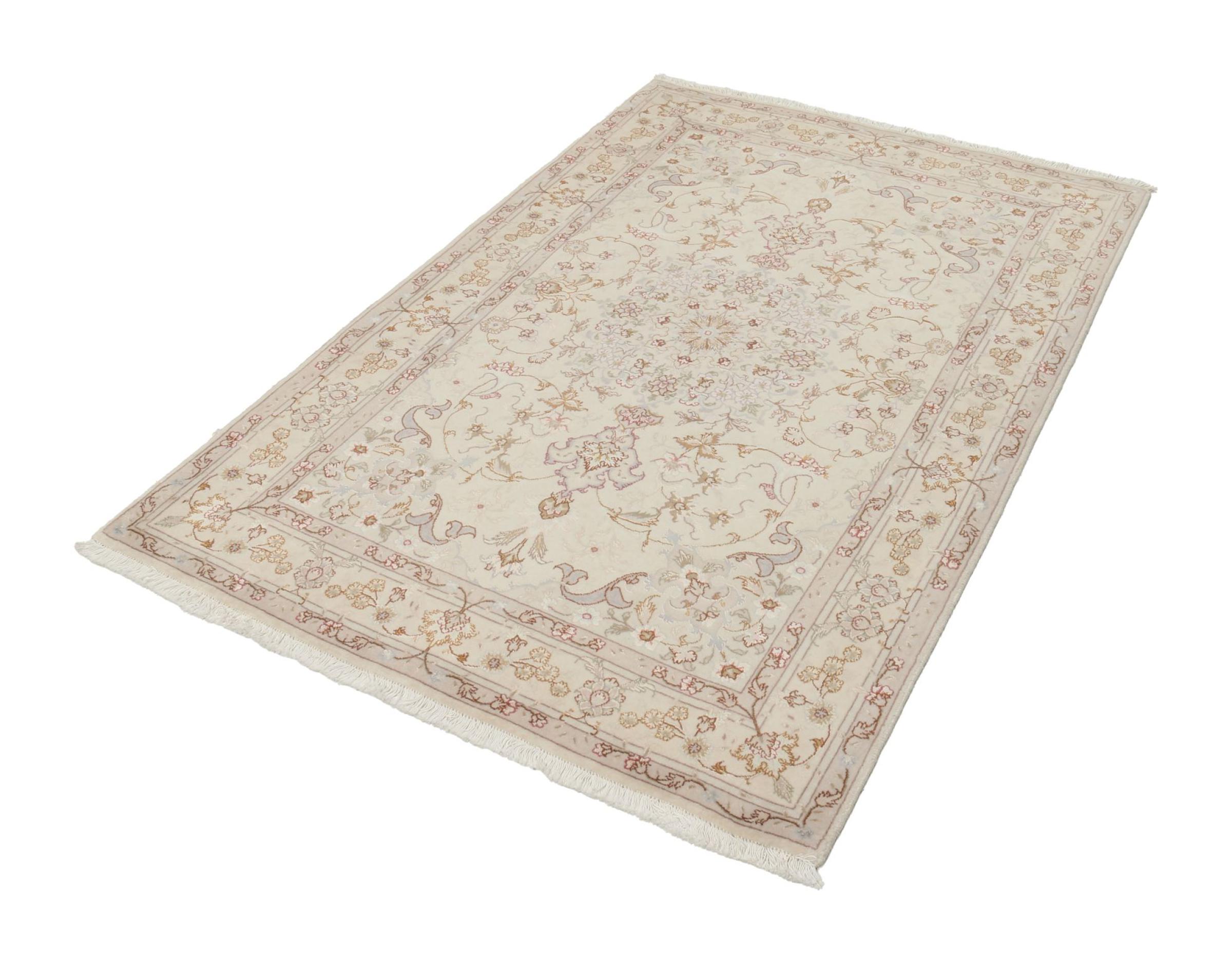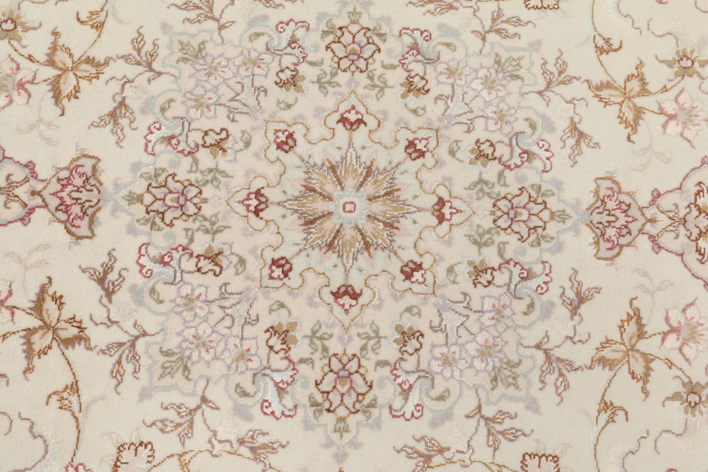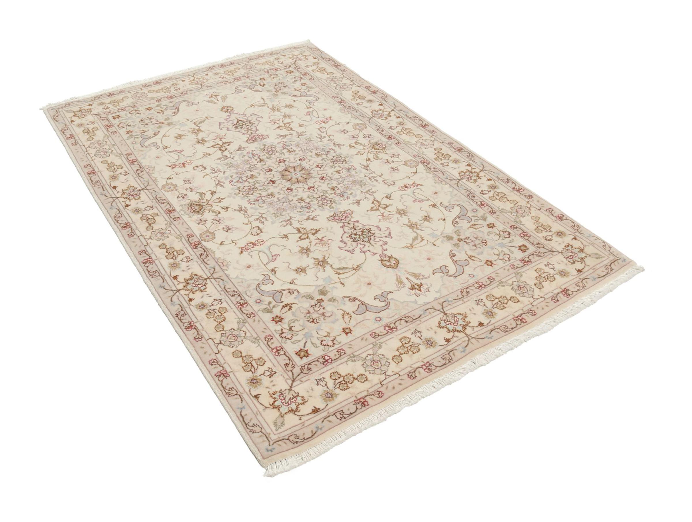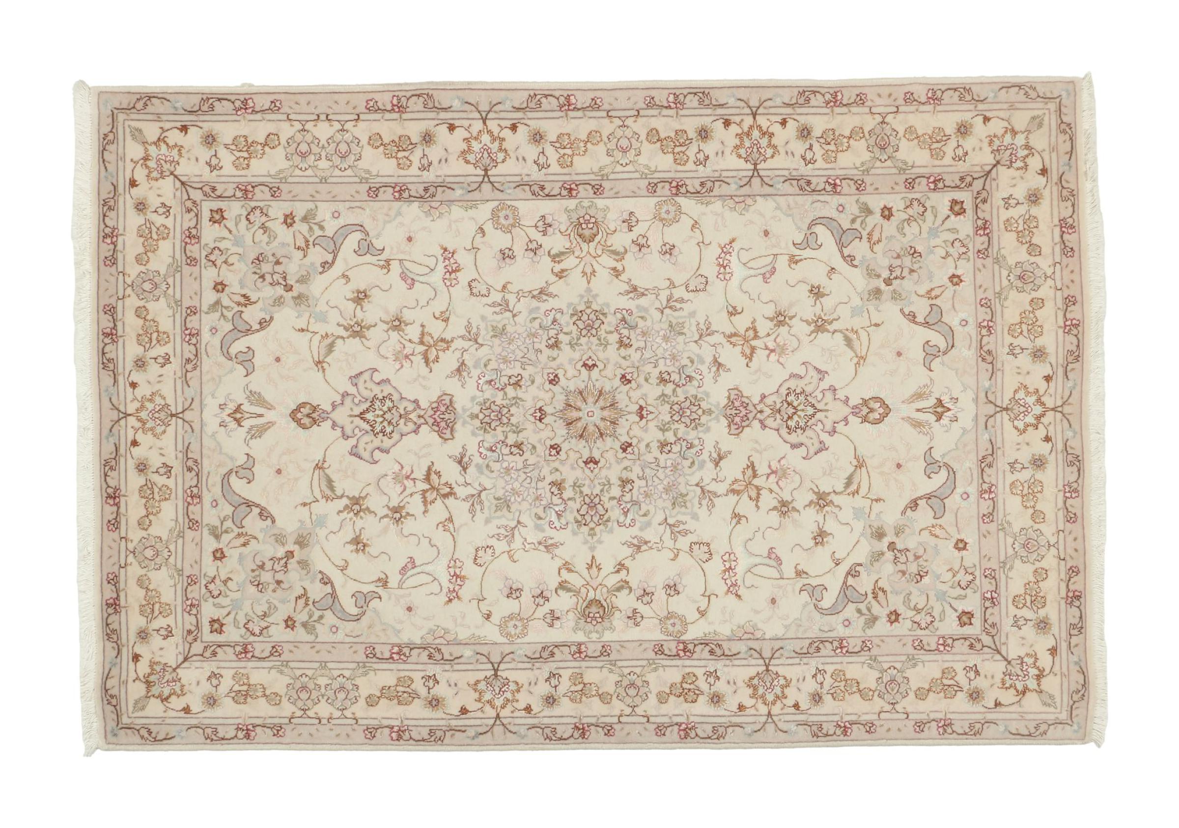 Carpet ID: 308872009734399 Size: 155x101 cm Thickness: ap. 7 mm Knot density: 440 000 - 490 000 / m² Manufacturing: Knotted by hand Pile: Wool with silk Warp: Cotton Origin: Persia Age: New Weight: ap. 5 kg Also know as Tabriz, Tabris, Täbris, Tebriz, Tebris, 40Raj, 50Raj In stock: Unique - Only 1 in stock