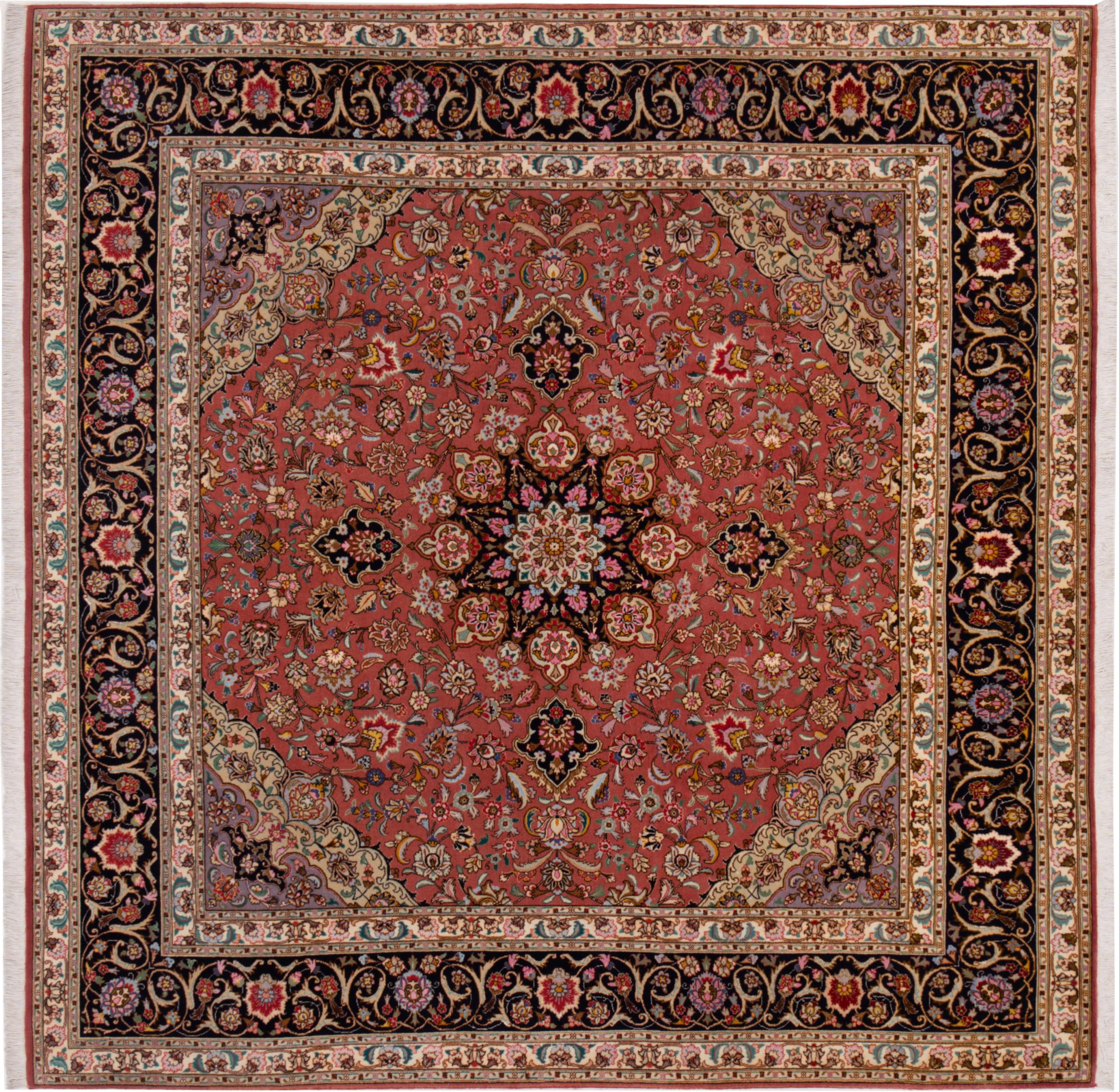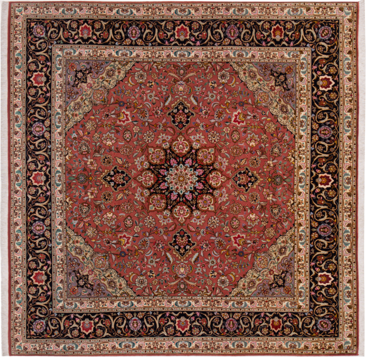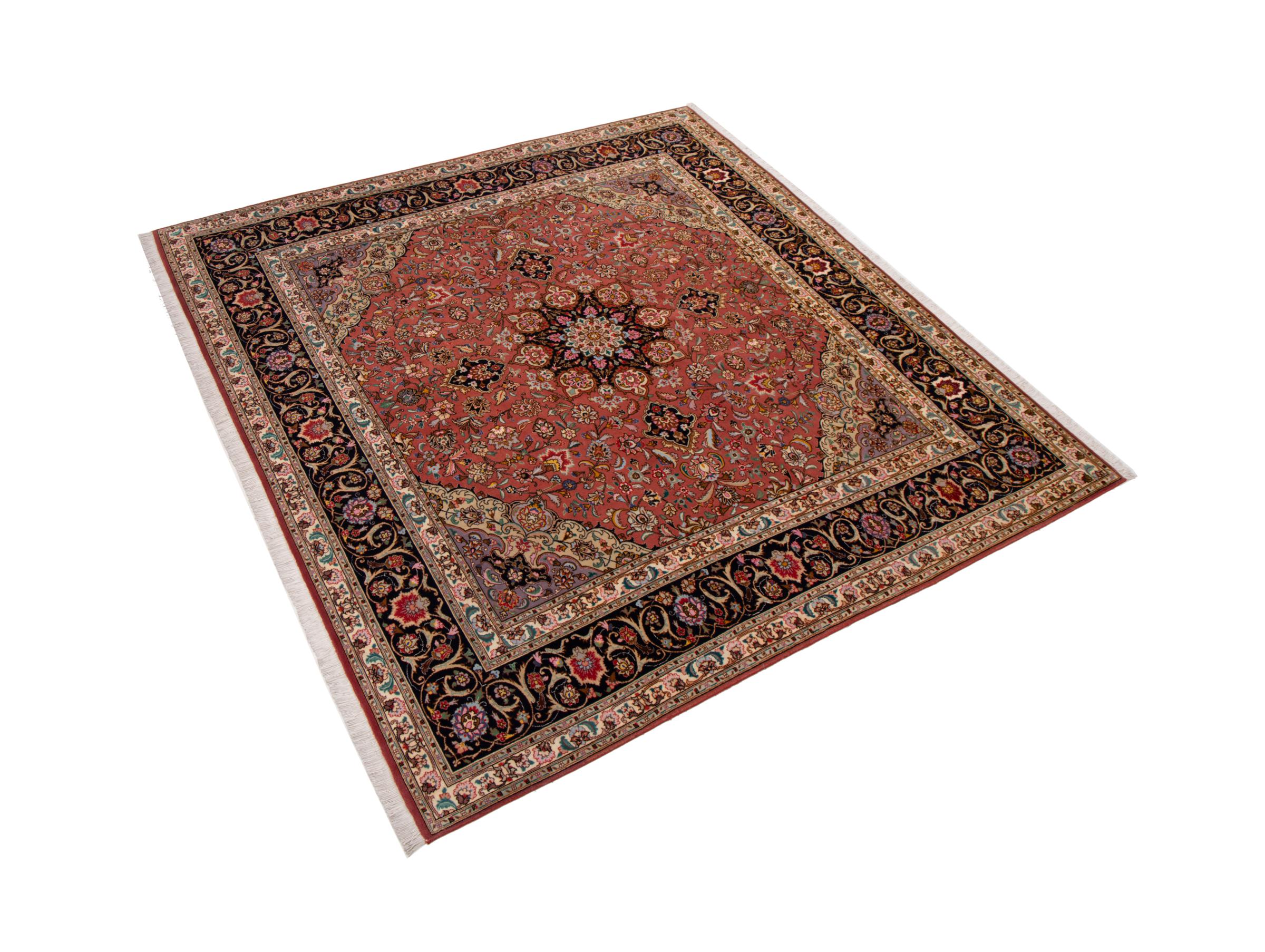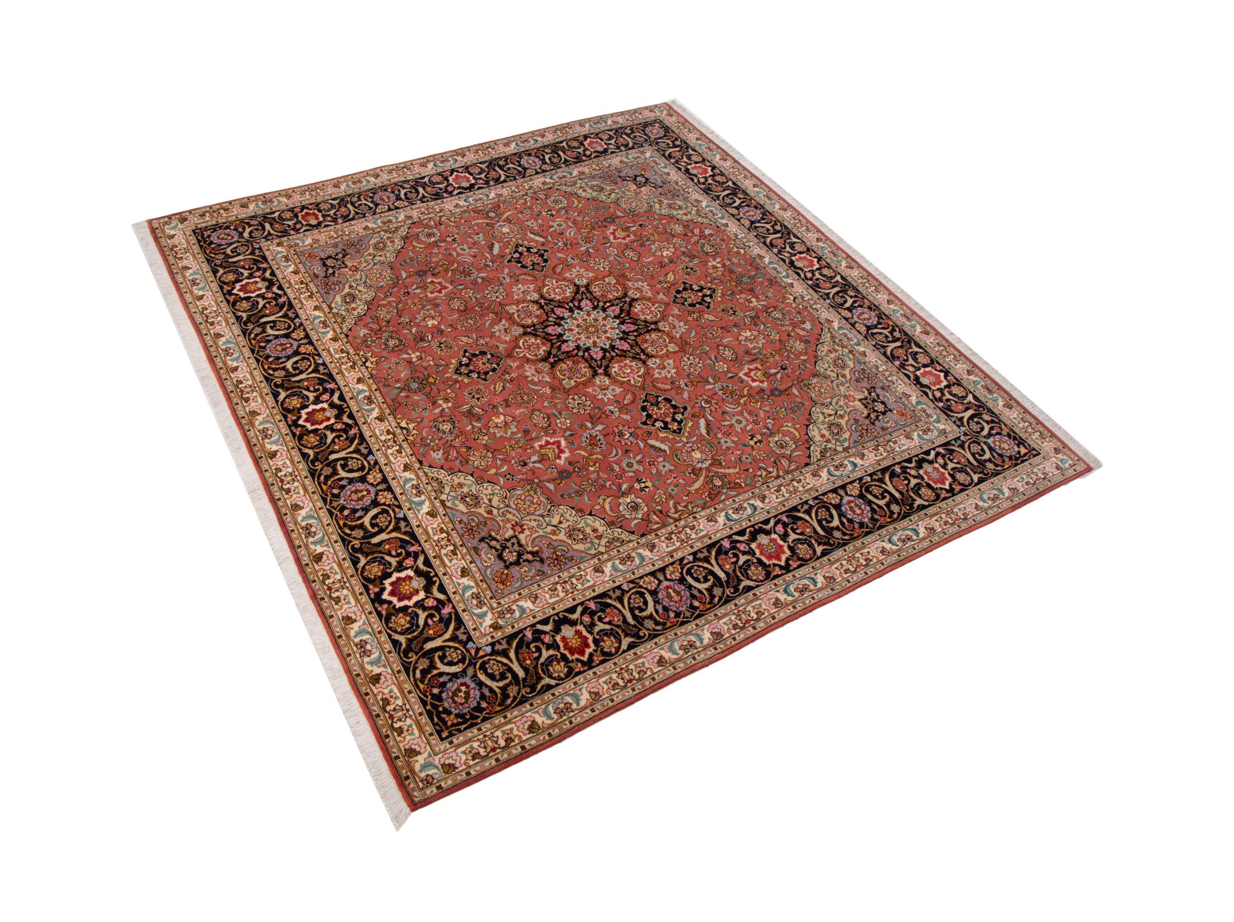 Carpet ID: 293027001591310 Size: 195x195 cm Thickness: ap. 7 mm Knot density: 440 000 - 490 000 / m² Manufacturing: Knotted by hand Pile: Wool with silk Warp: Cotton Origin: Persia Age: New Weight: ap. 11 kg Also know as Tabriz, Tabris, Täbris, Tebriz, Tebris, 40Raj, 50Raj In stock: Unique - Only 1 in stock