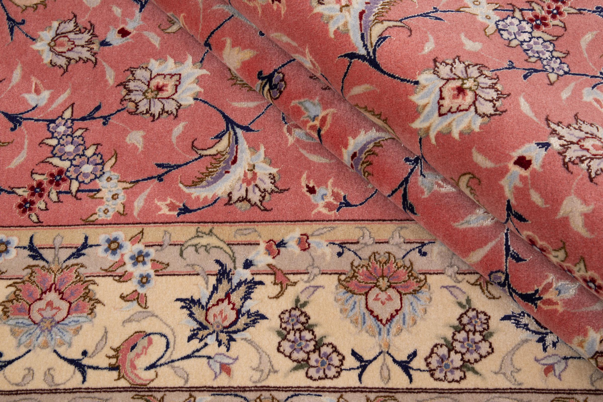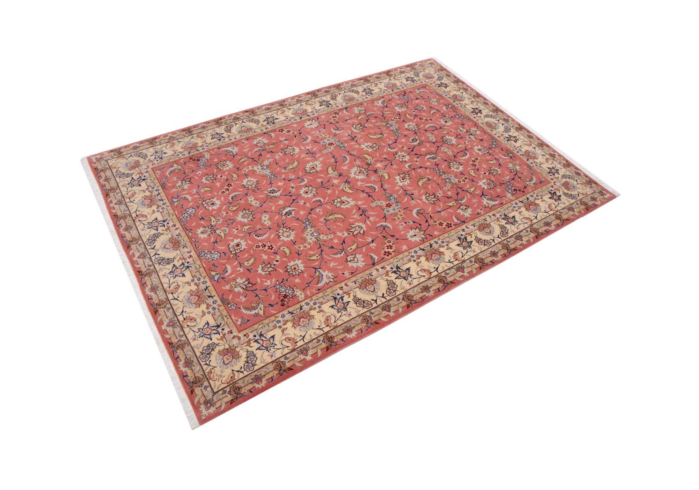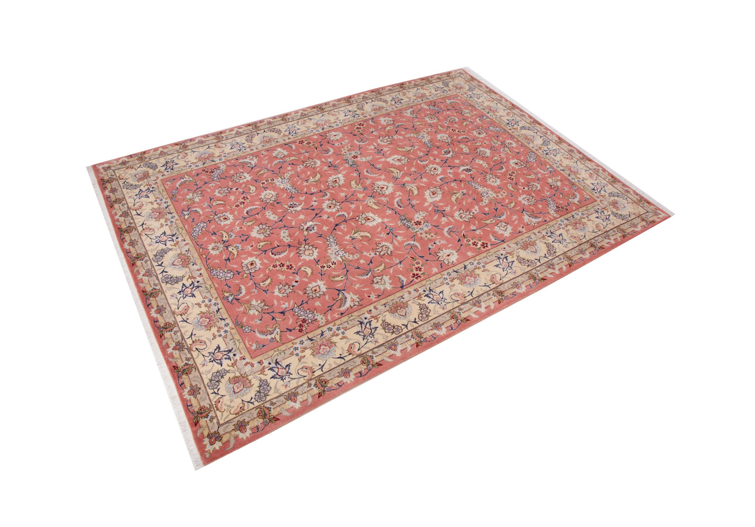 Carpet ID: 292664001506592 Size: 236x162 cm Thickness: ap. 7 mm Knot density: 440 000 - 490 000 / m² Manufacturing: Knotted by hand Pile: Wool with silk Warp: Cotton Origin: Persia Age: New Weight: ap. 11 kg Also know as Tabriz, Tabris, Täbris, Tebriz, Tebris, 40Raj, 50Raj In stock: Unique - Only 1 in stock