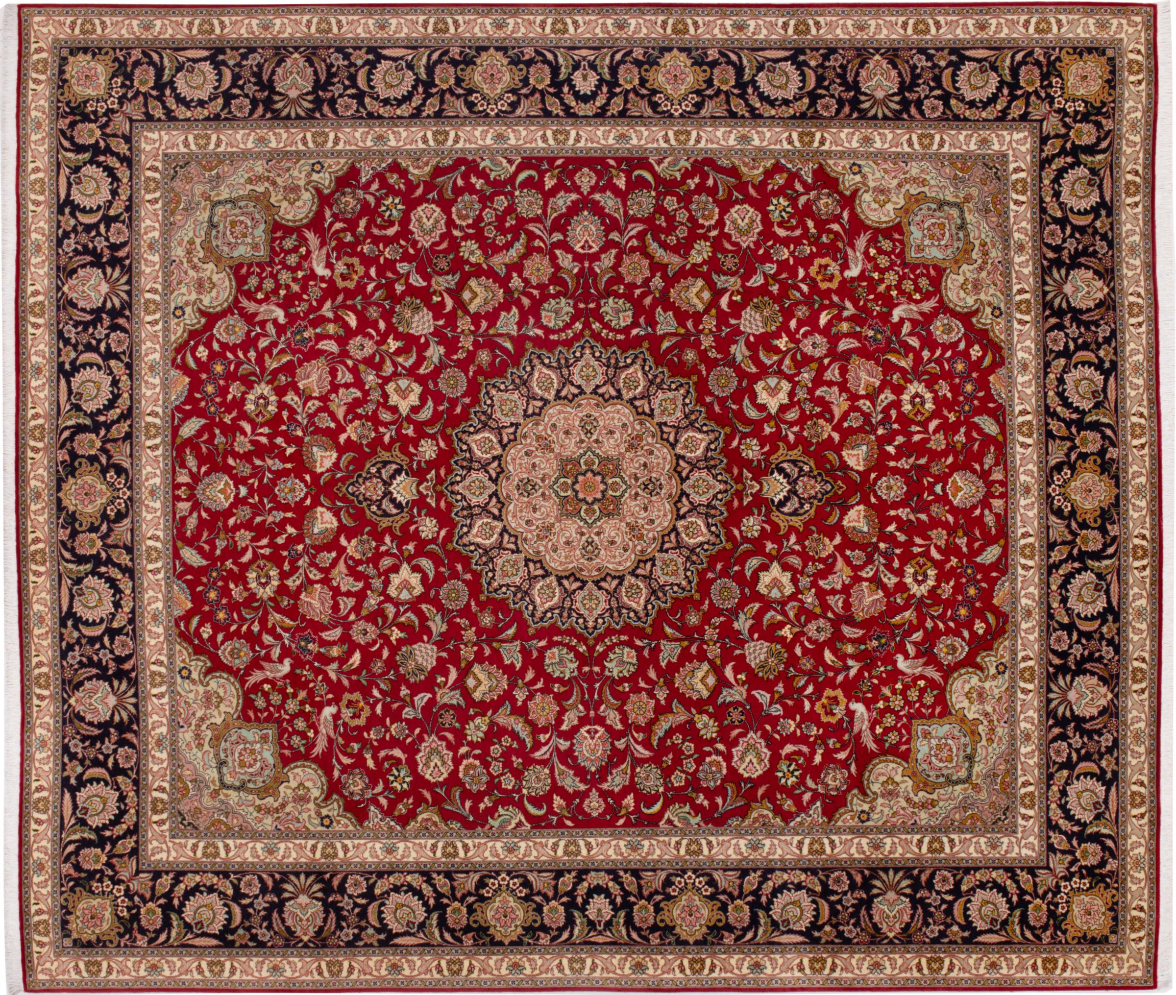 Carpet ID: 292777001207050 Size: 290x248 cm Thickness: ap. 7 mm Knot density: 440 000 - 490 000 / m² Manufacturing: Knotted by hand Pile: Wool with silk Warp: Cotton Origin: Persia Age: New Weight: ap. 22 kg Also know as Tabriz, Tabris, Täbris, Tebriz, Tebris, 40Raj, 50Raj In stock: Unique - Only 1 in stock