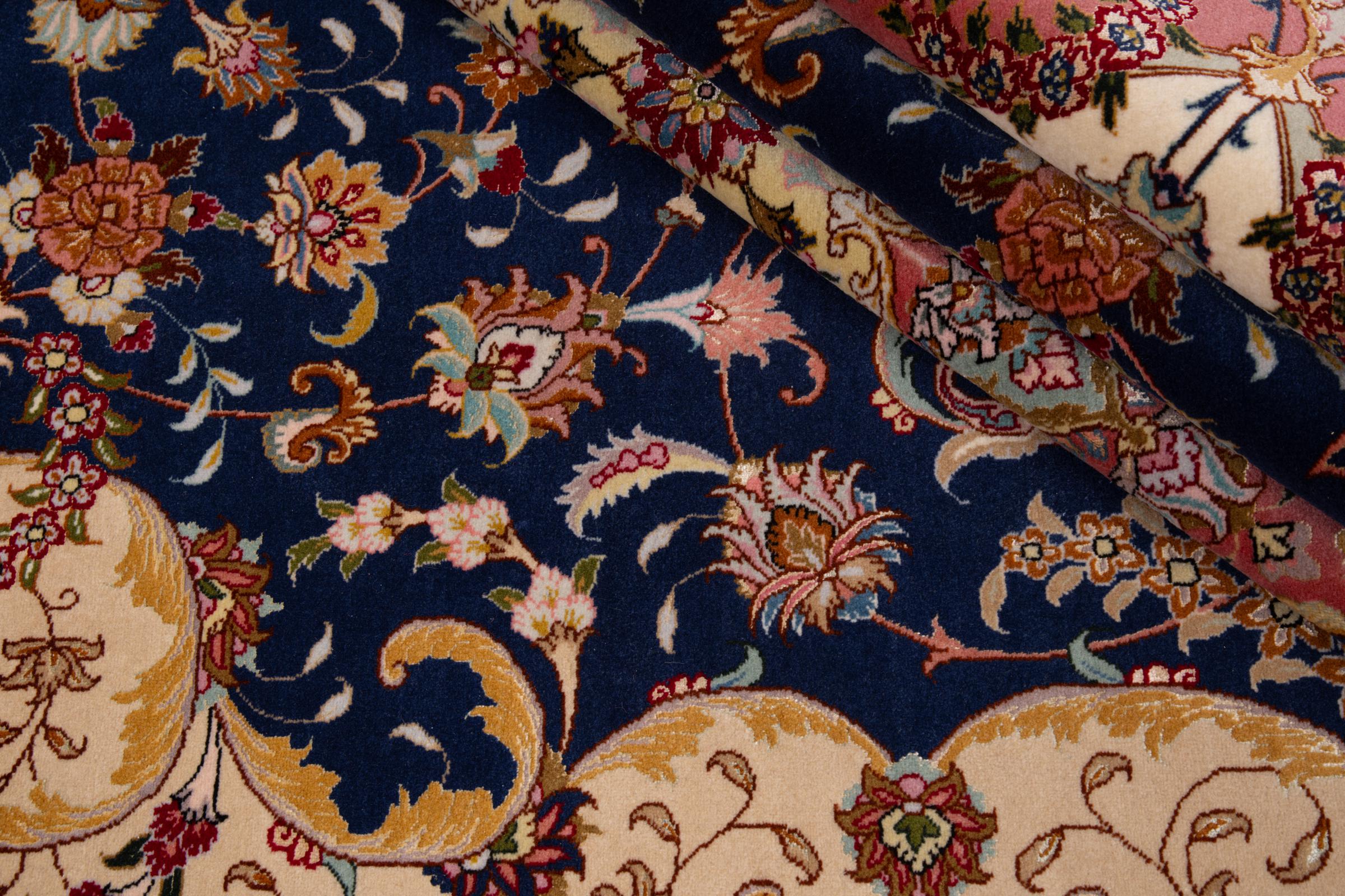 Carpet ID: 292732001776391 Size: 294x246 cm Thickness: ap. 7 mm Knot density: 440 000 - 490 000 / m² Manufacturing: Knotted by hand Pile: Wool with silk Warp: Cotton Origin: Persia Age: New Weight: ap. 22 kg Also know as Tabriz, Tabris, Täbris, Tebriz, Tebris, 40Raj, 50Raj In stock: Unique - Only 1 in stock