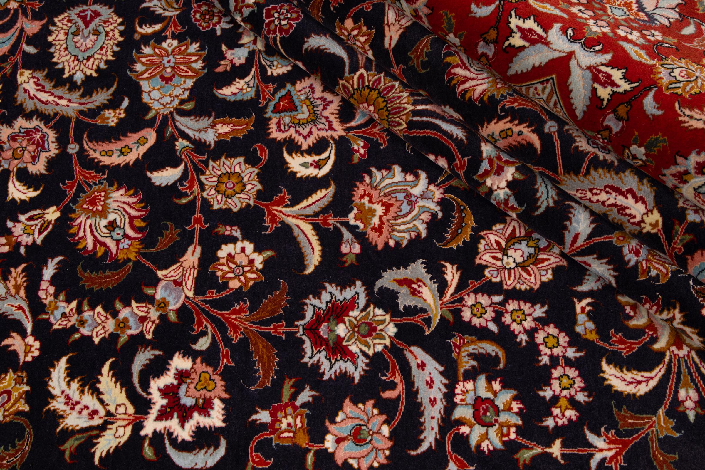 Carpet ID: 292726001887320 Size: 294x248 cm Thickness: ap. 7 mm Knot density: 440 000 - 490 000 / m² Manufacturing: Knotted by hand Pile: Wool with silk Warp: Cotton Origin: Persia Age: New Weight: ap. 22 kg Also know as Tabriz, Tabris, Täbris, Tebriz, Tebris, 40Raj, 50Raj In stock: Unique - Only 1 in stock