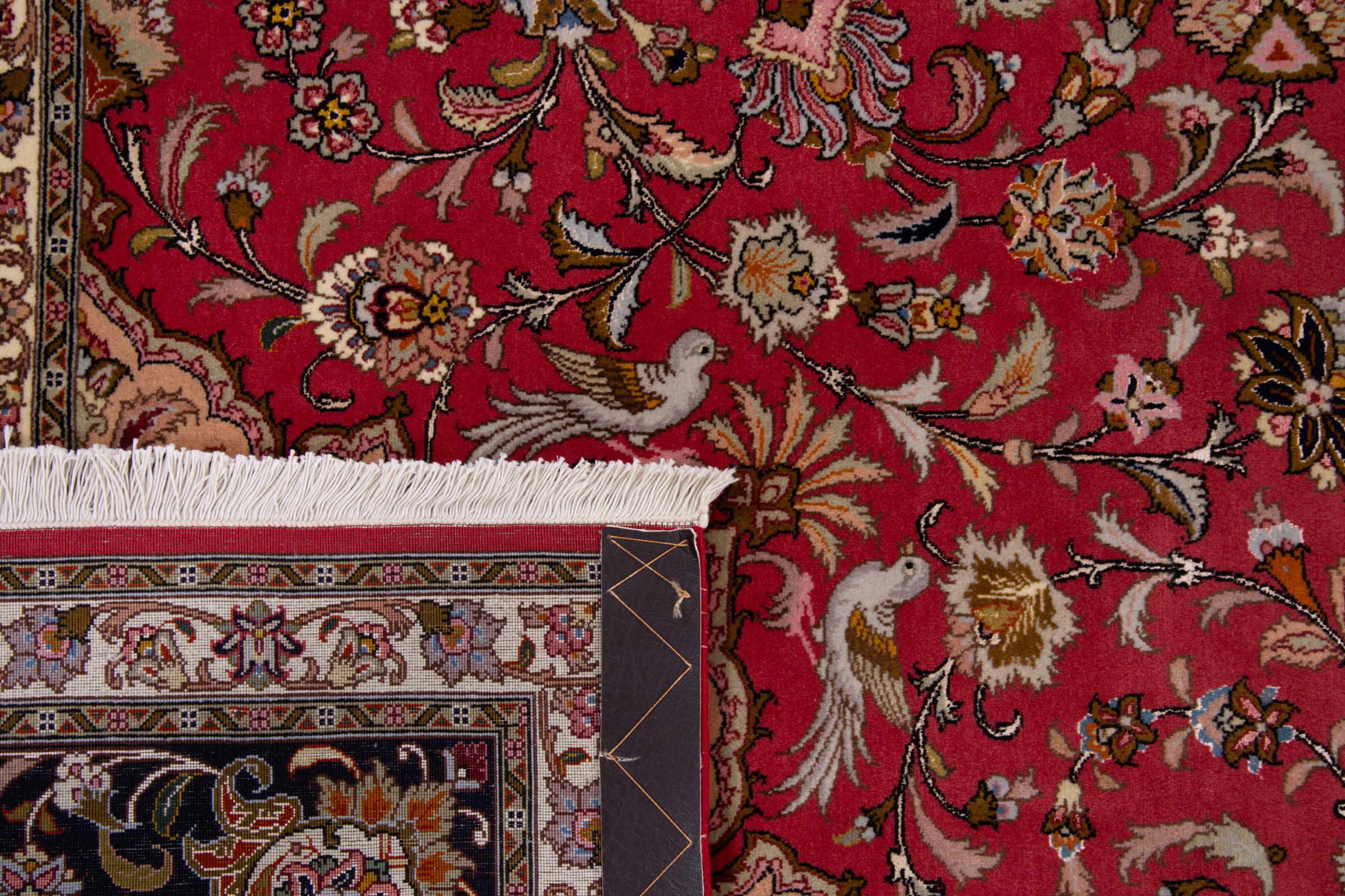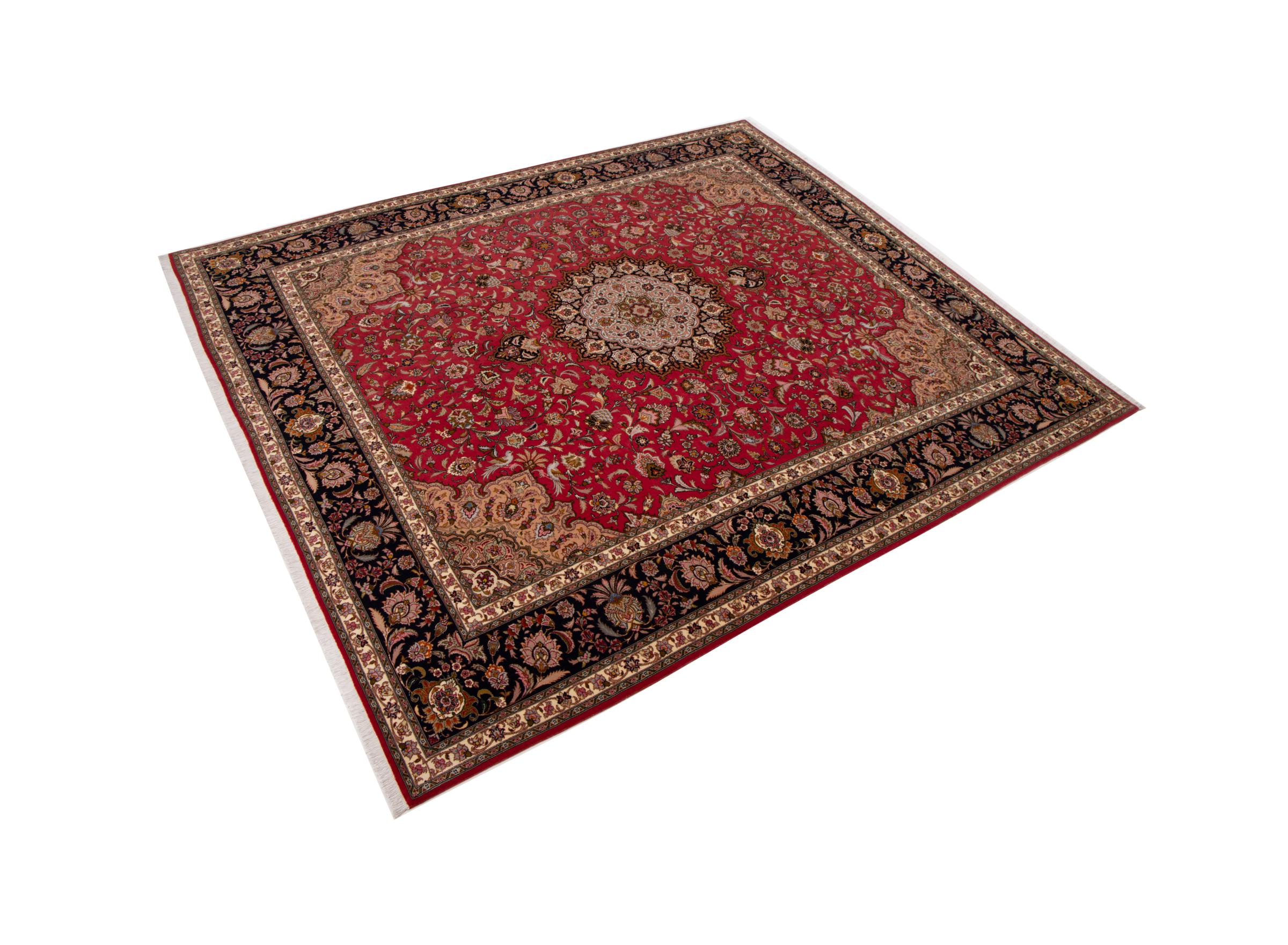 Carpet ID: 292778002968509 Size: 295x249 cm Thickness: ap. 7 mm Knot density: 440 000 - 490 000 / m² Manufacturing: Knotted by hand Pile: Wool with silk Warp: Cotton Origin: Persia Age: New Weight: ap. 22 kg Also know as Tabriz, Tabris, Täbris, Tebriz, Tebris, 40Raj, 50Raj In stock: Unique - Only 1 in stock