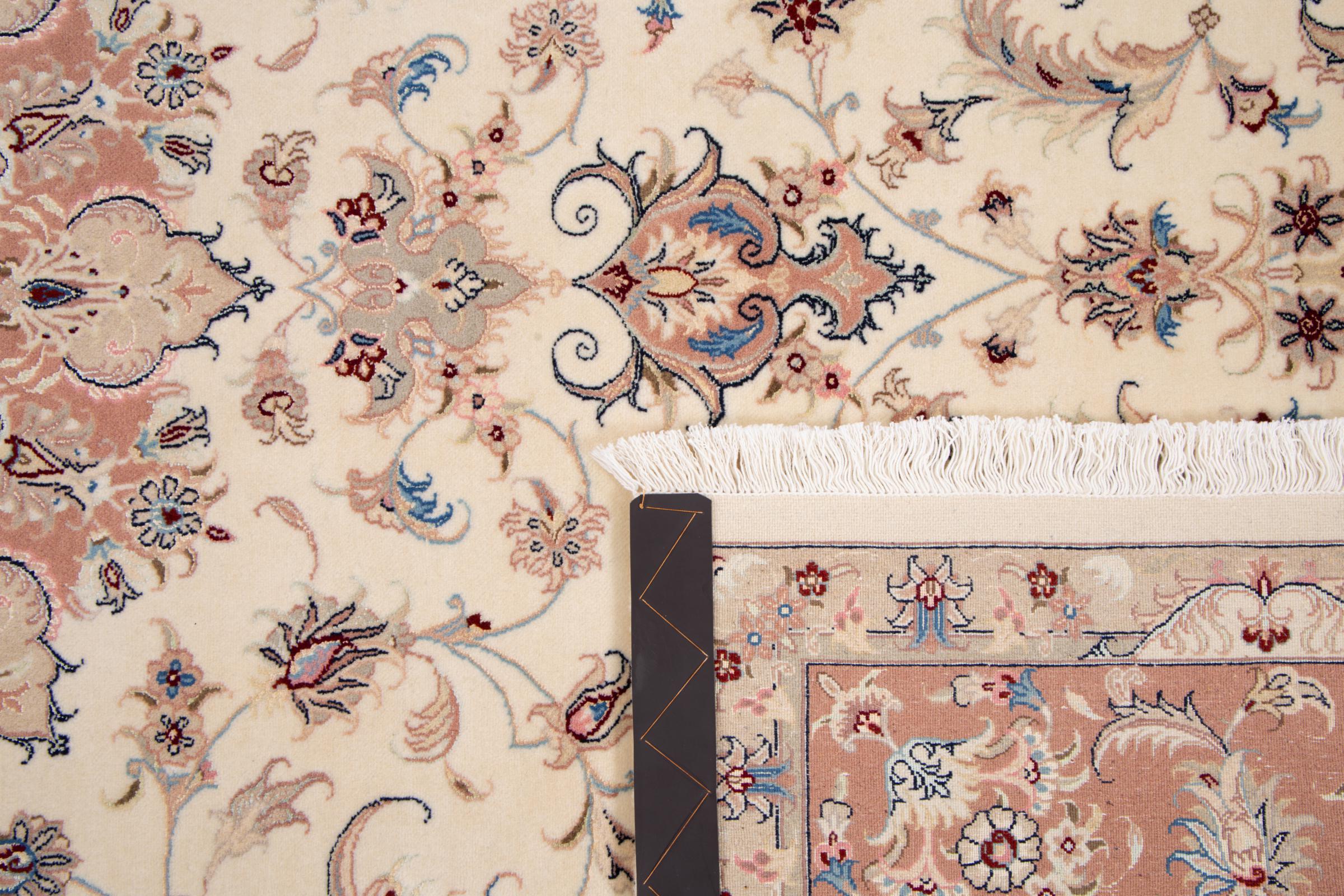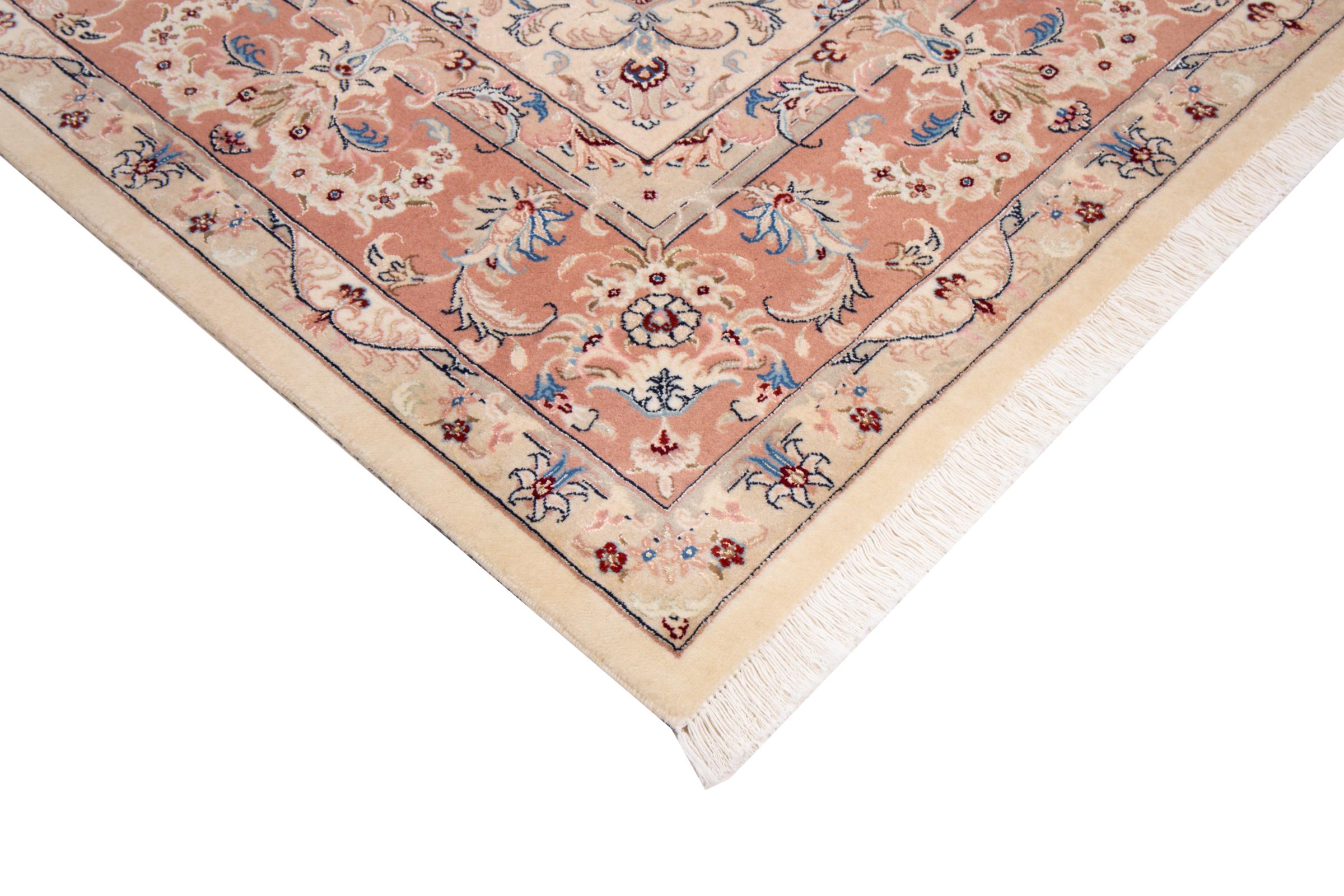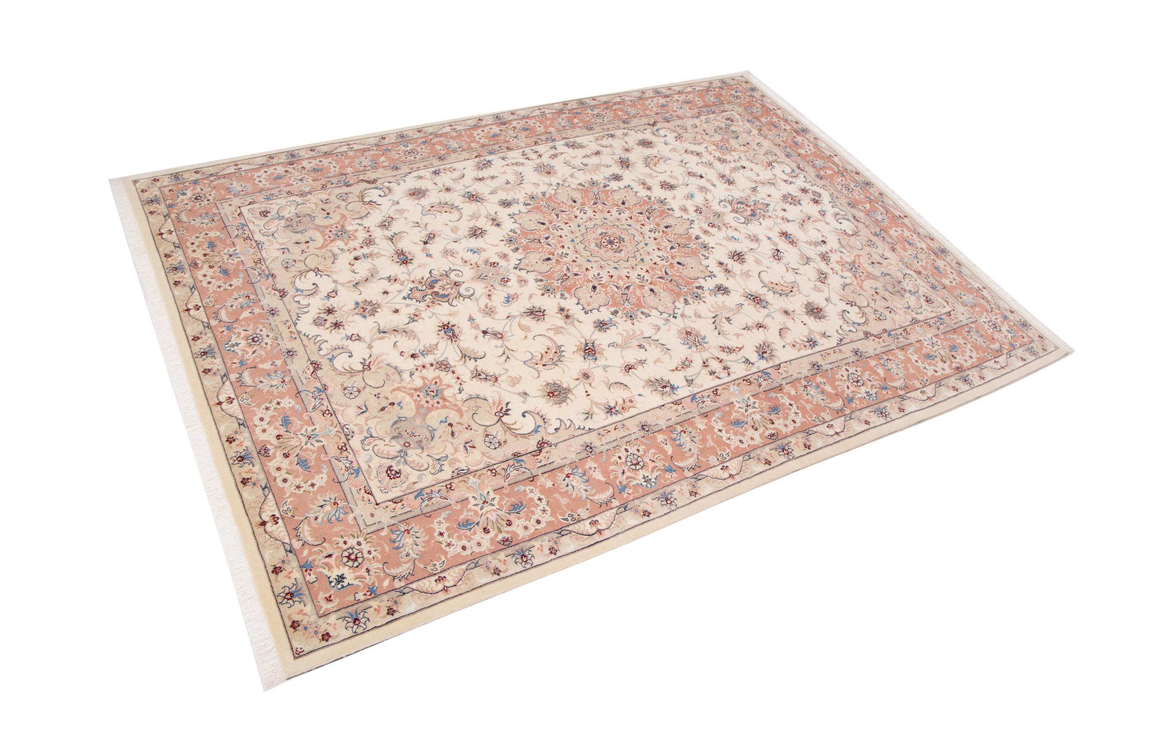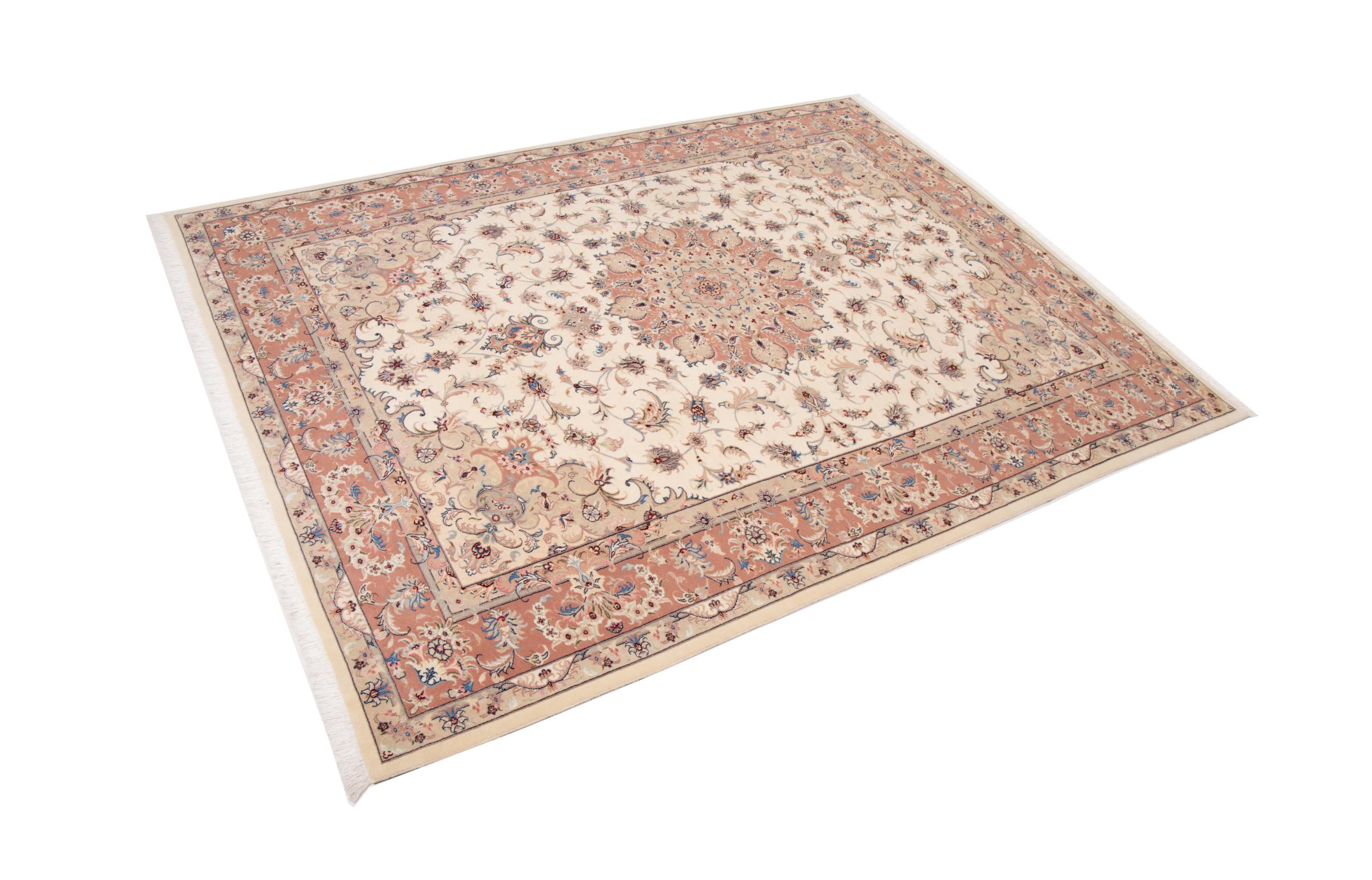 Carpet ID: 293081001535240 Size: 297x199 cm Thickness: ap. 7 mm Knot density: 440 000 - 490 000 / m² Manufacturing: Knotted by hand Pile: Wool with silk Warp: Cotton Origin: Persia Age: New Weight: ap. 18 kg Also know as Tabriz, Tabris, Täbris, Tebriz, Tebris, 40Raj, 50Raj In stock: Unique - Only 1 in stock