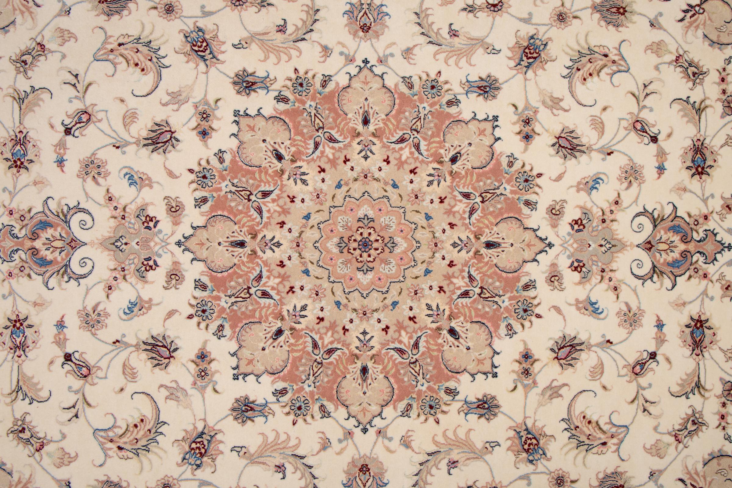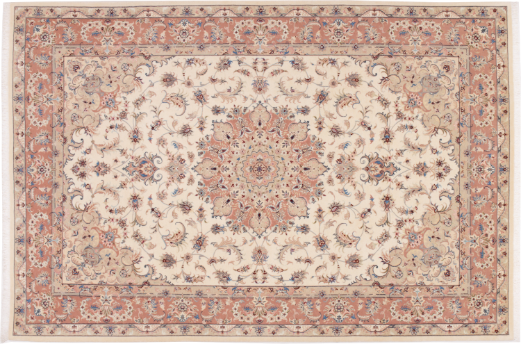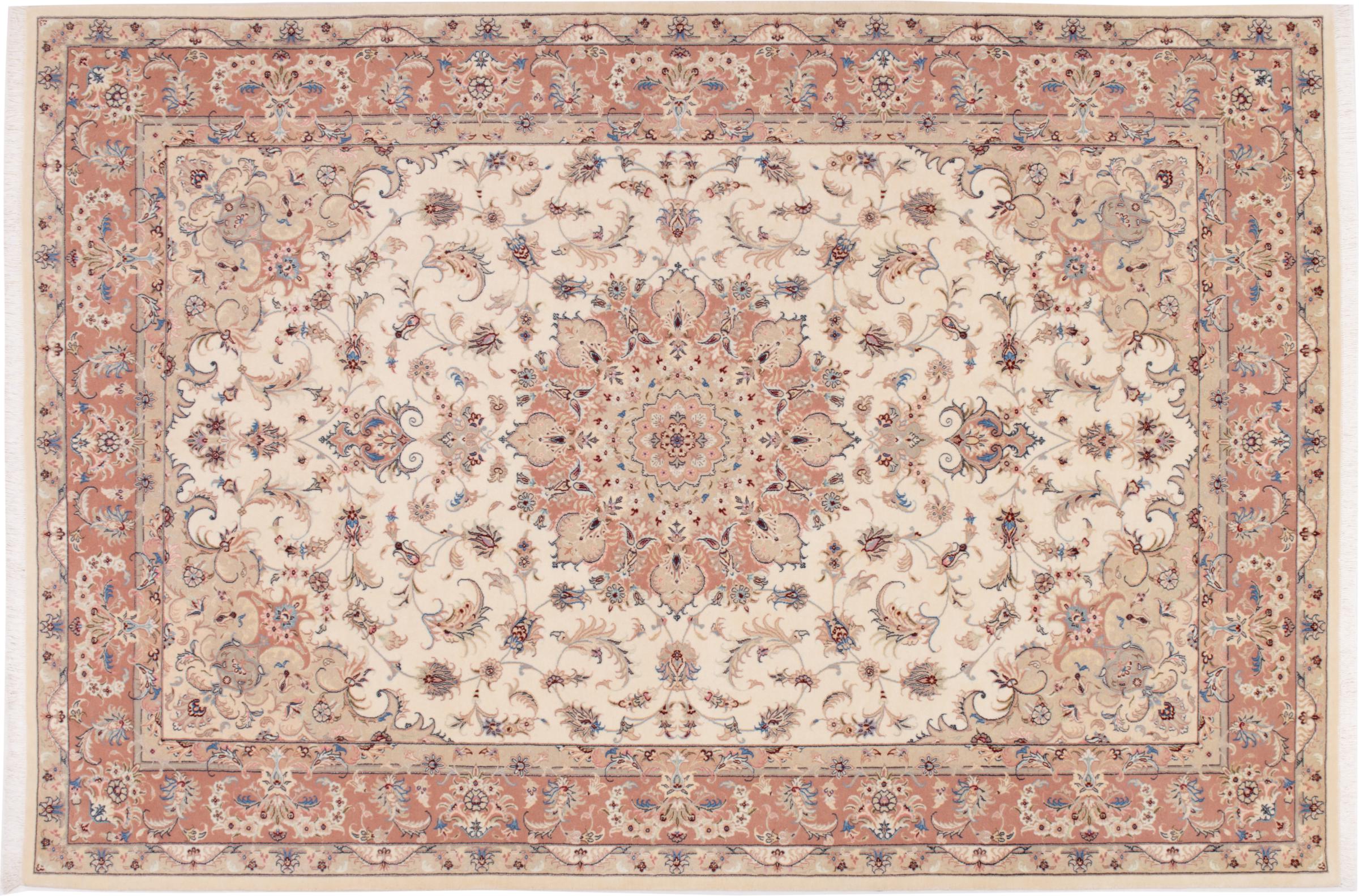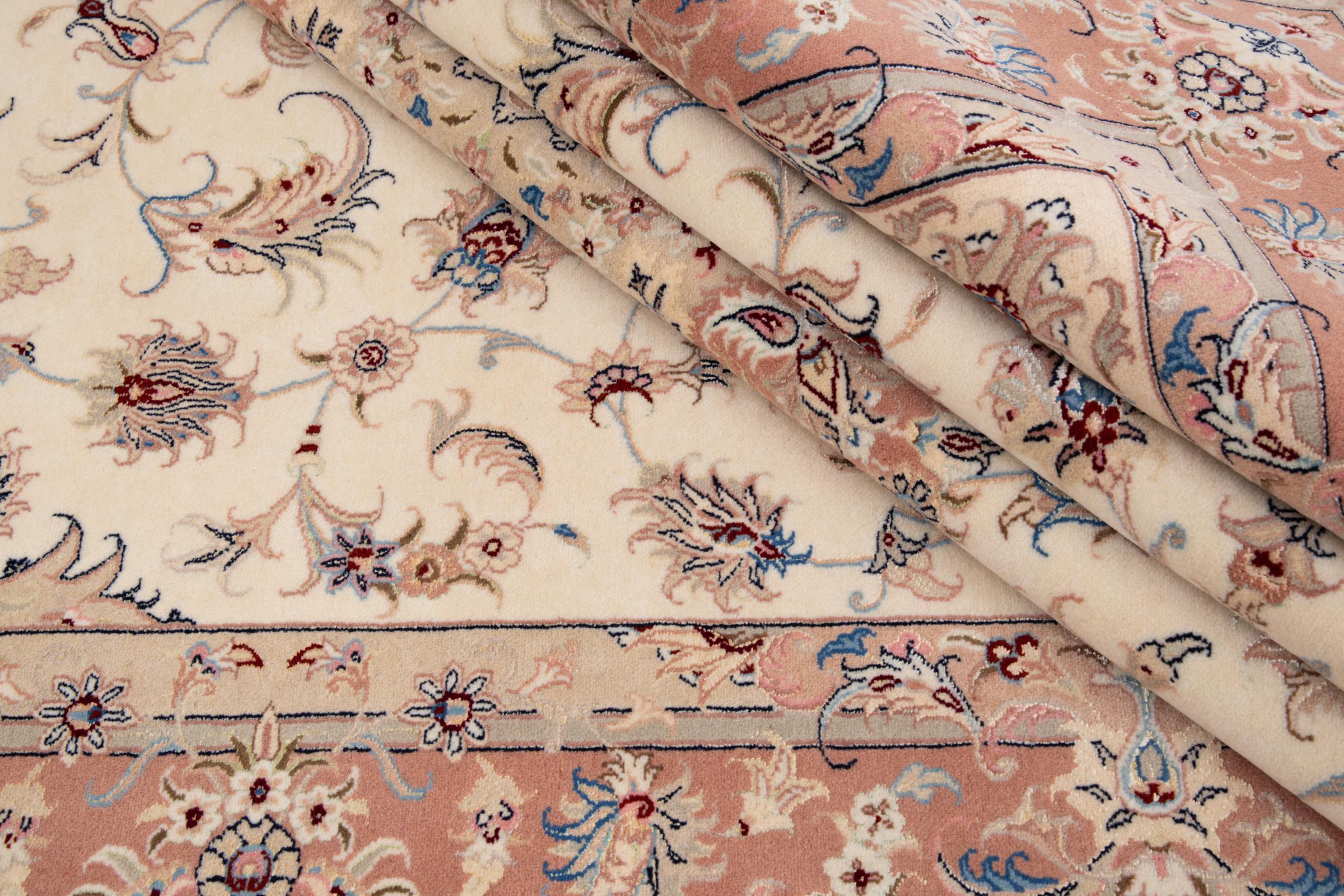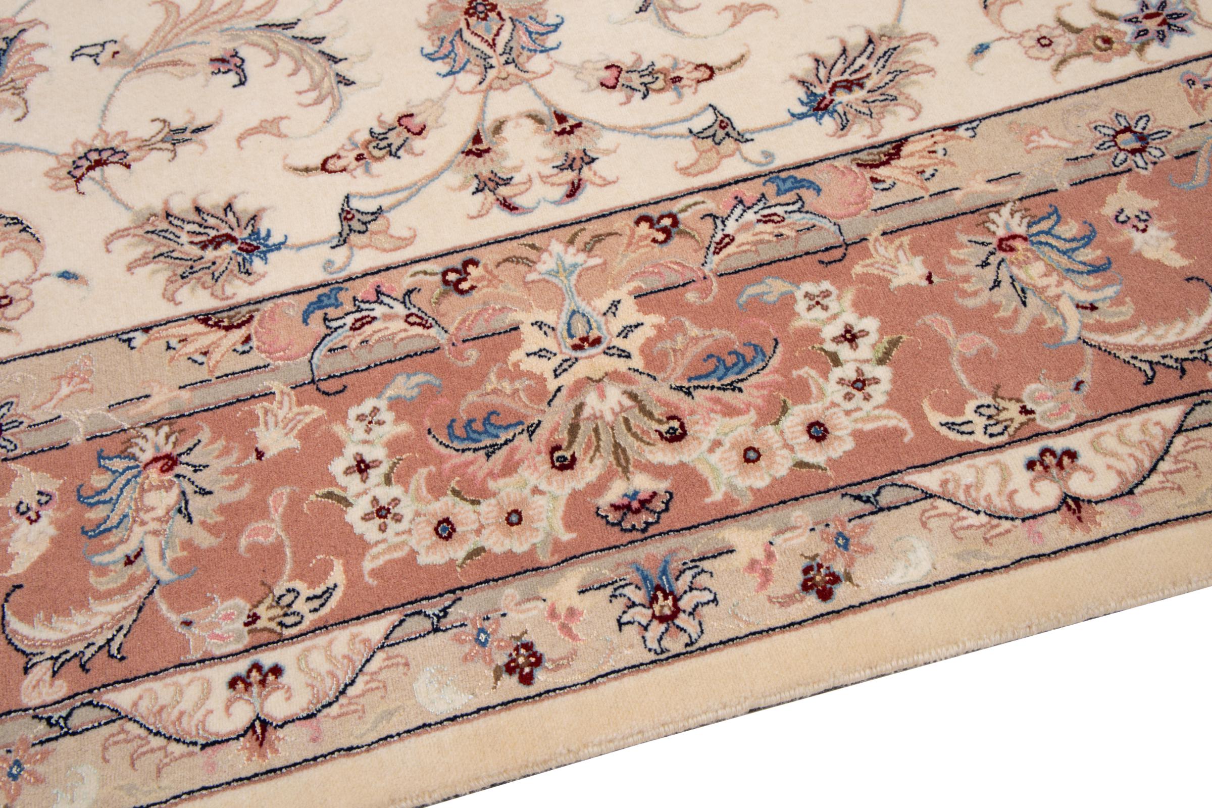 Carpet ID: 293081001535240 Size: 297x199 cm Thickness: ap. 7 mm Knot density: 440 000 - 490 000 / m² Manufacturing: Knotted by hand Pile: Wool with silk Warp: Cotton Origin: Persia Age: New Weight: ap. 18 kg Also know as Tabriz, Tabris, Täbris, Tebriz, Tebris, 40Raj, 50Raj In stock: Unique - Only 1 in stock