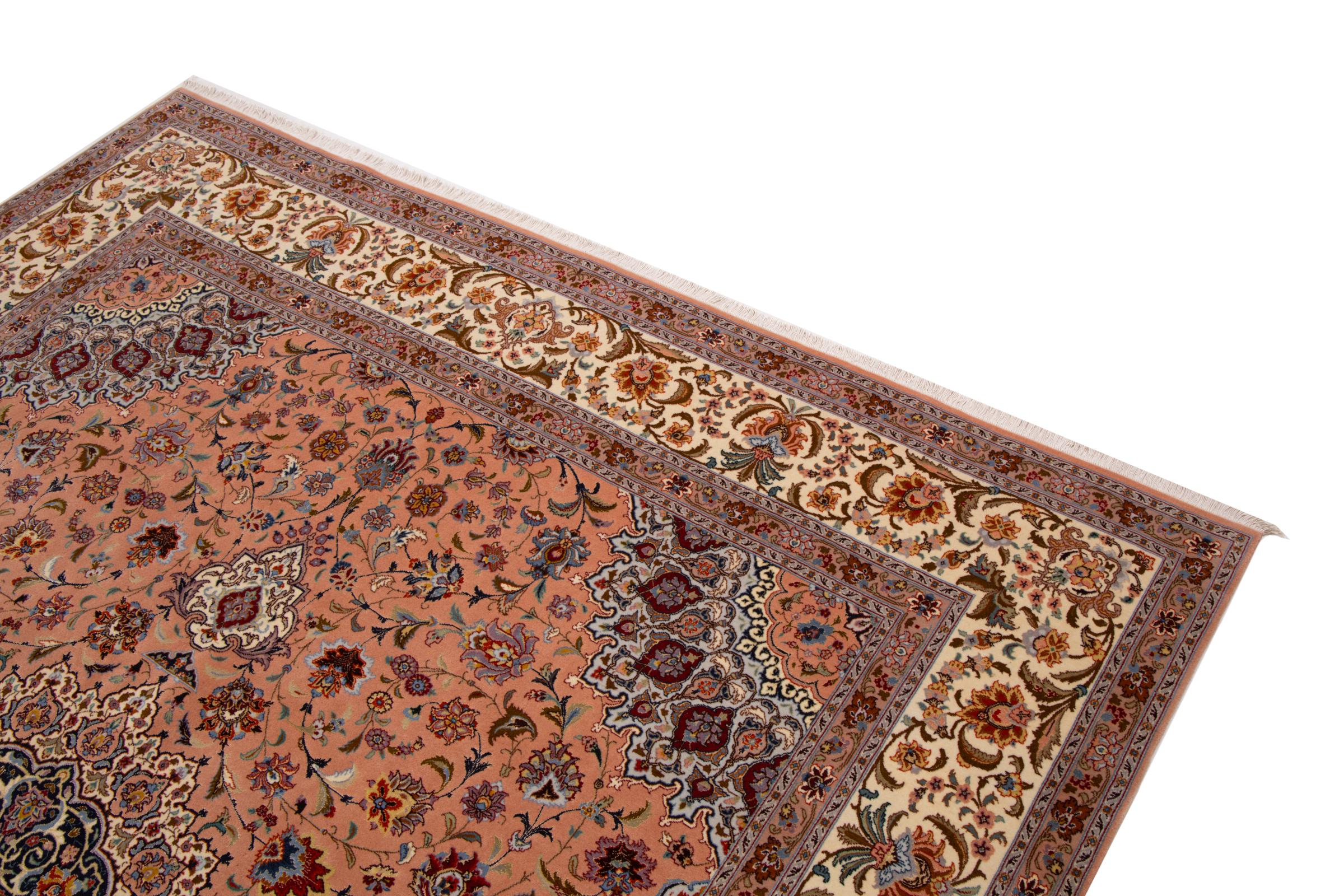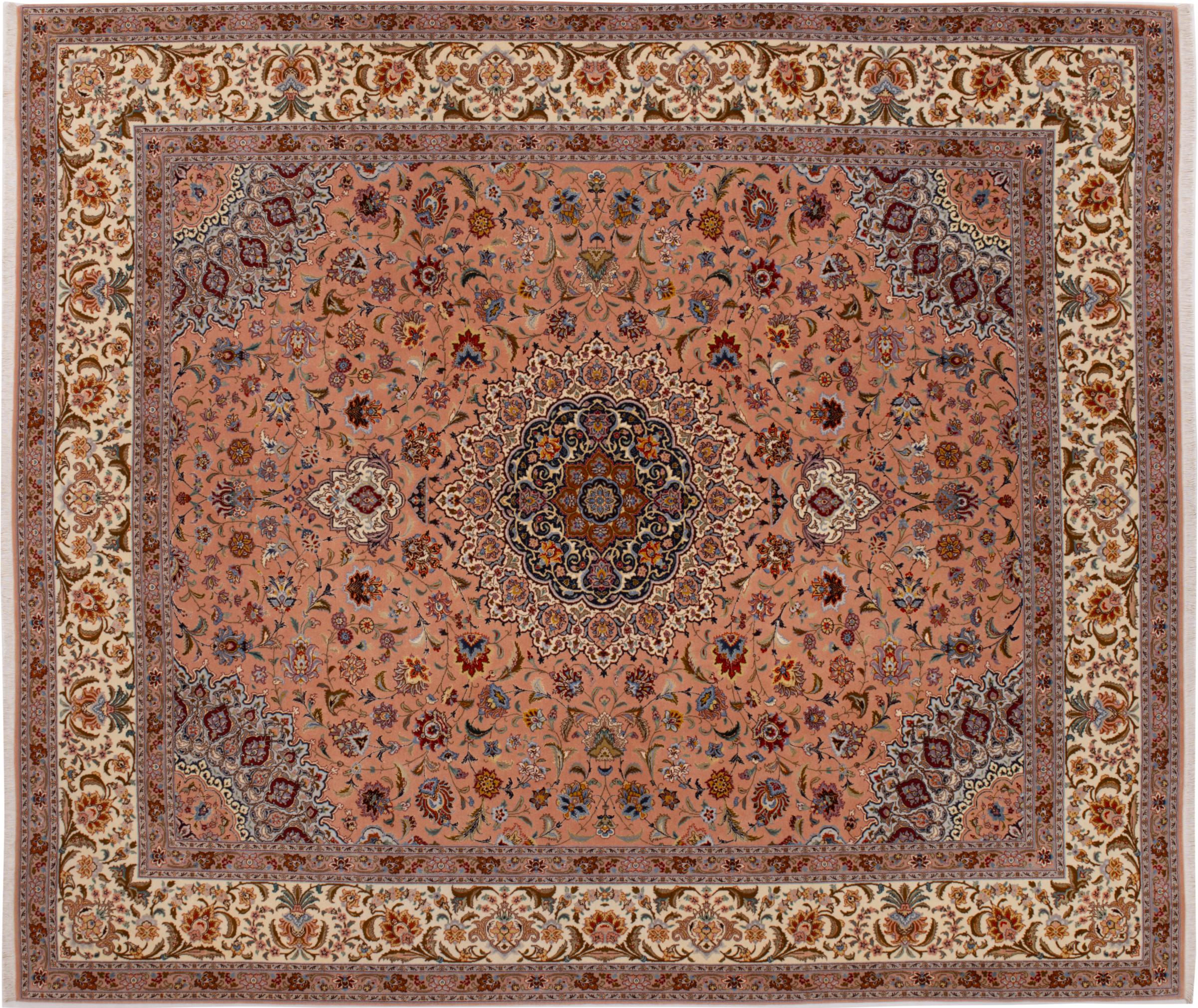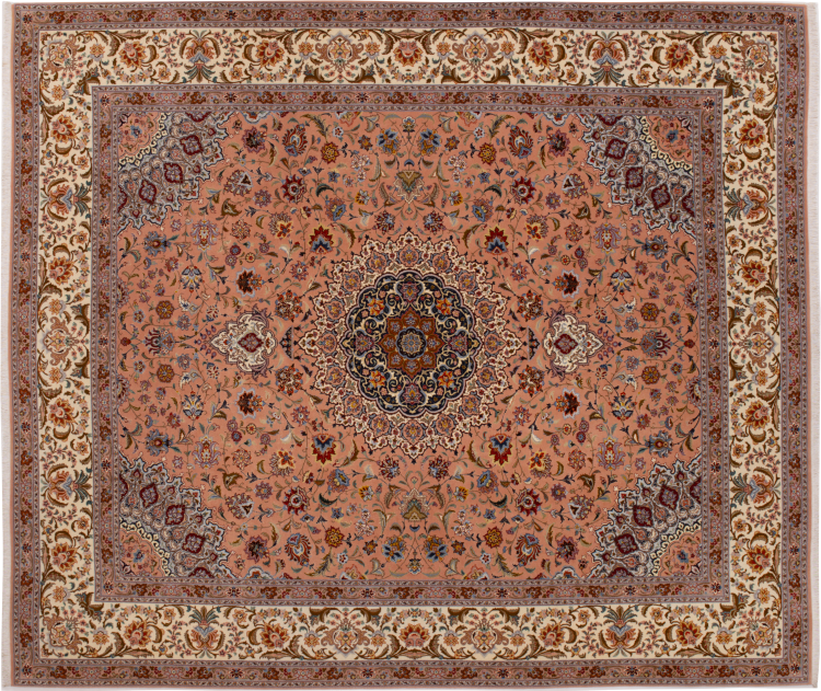 Carpet ID: 292754002107161 Size: 297x249 cm Thickness: ap. 7 mm Knot density: 440 000 - 490 000 / m² Manufacturing: Knotted by hand Pile: Wool with silk Warp: Cotton Origin: Persia Age: New Weight: ap. 22 kg Also know as Tabriz, Tabris, Täbris, Tebriz, Tebris, 40Raj, 50Raj In stock: Unique - Only 1 in stock