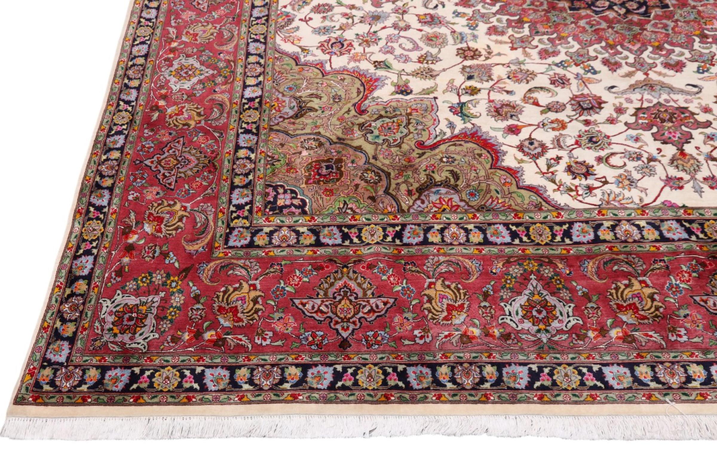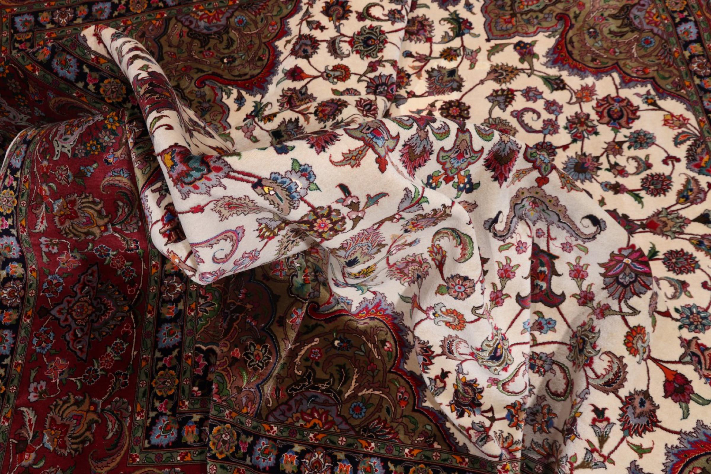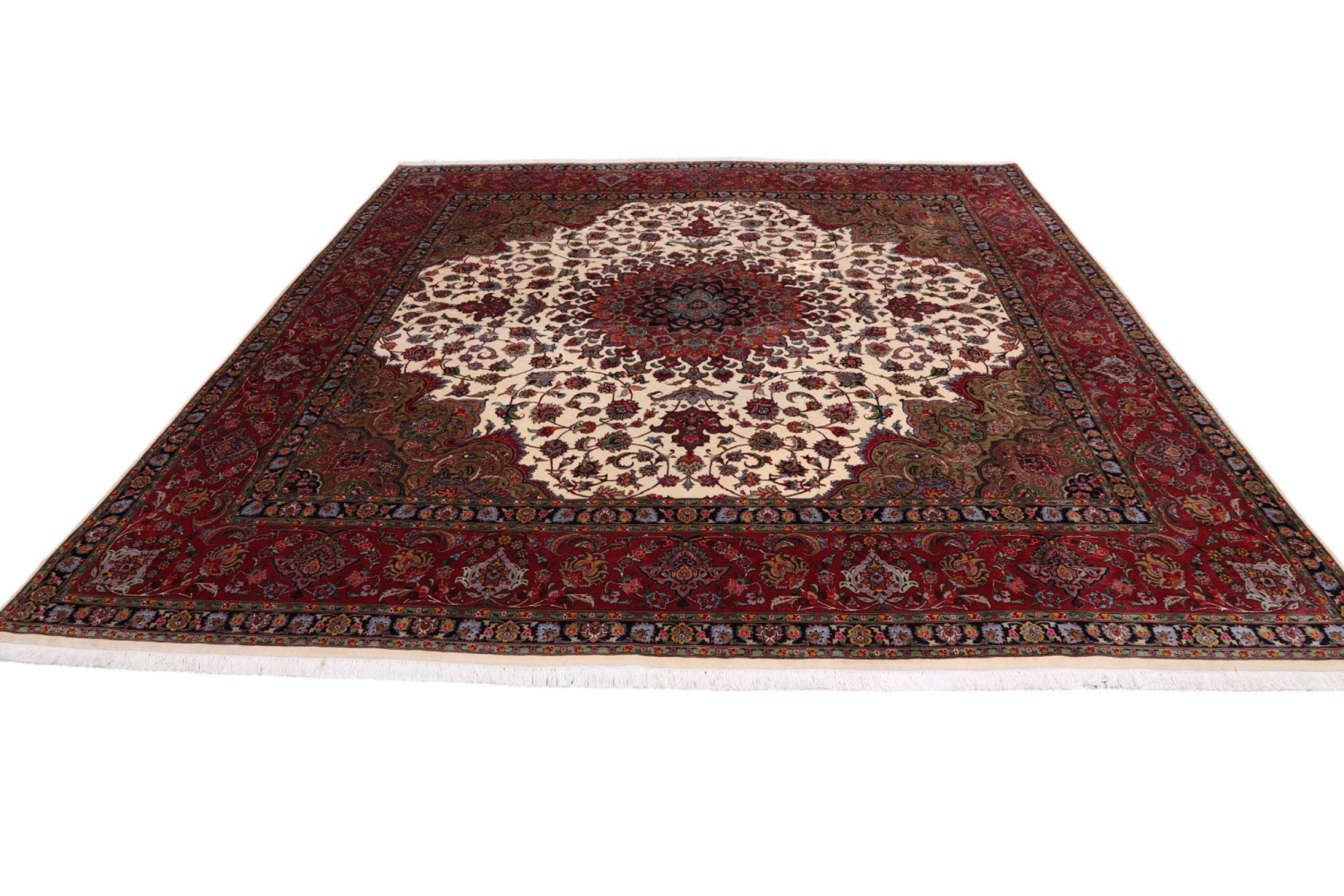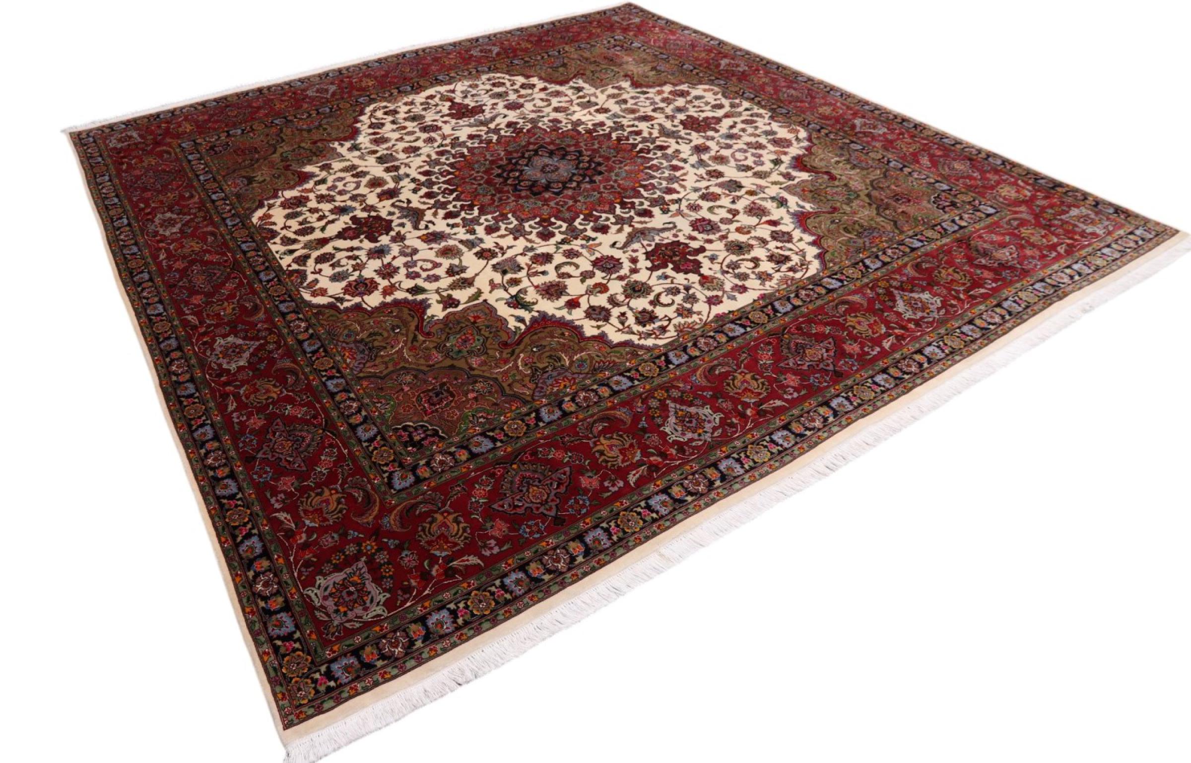 Carpet ID: 291968003364133 Size: 305x301 cm Thickness: ap. 7 mm Knot density: 450 000 - 500 000 / m² Manufacturing: Knotted by hand Pile: Wool with silk Warp: Cotton Origin: Persia Age: New Weight: ap. 28 kg Also know as Tabriz, Tabris, Täbris, Tebriz, Tebris, 40Raj, 50Raj In stock: Unique - Only 1 in stock