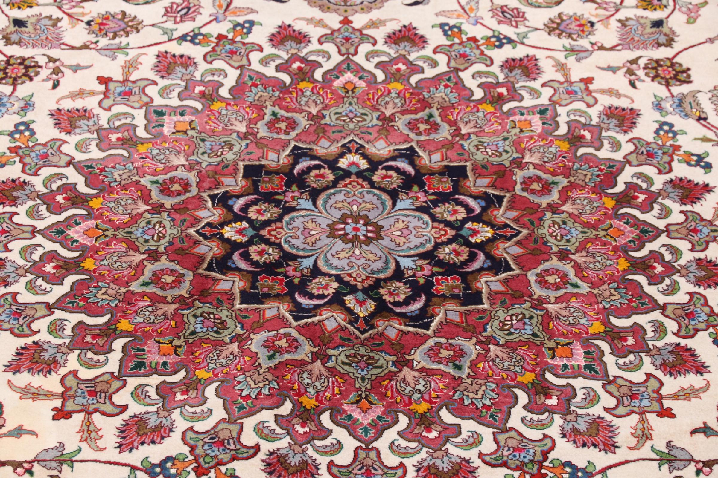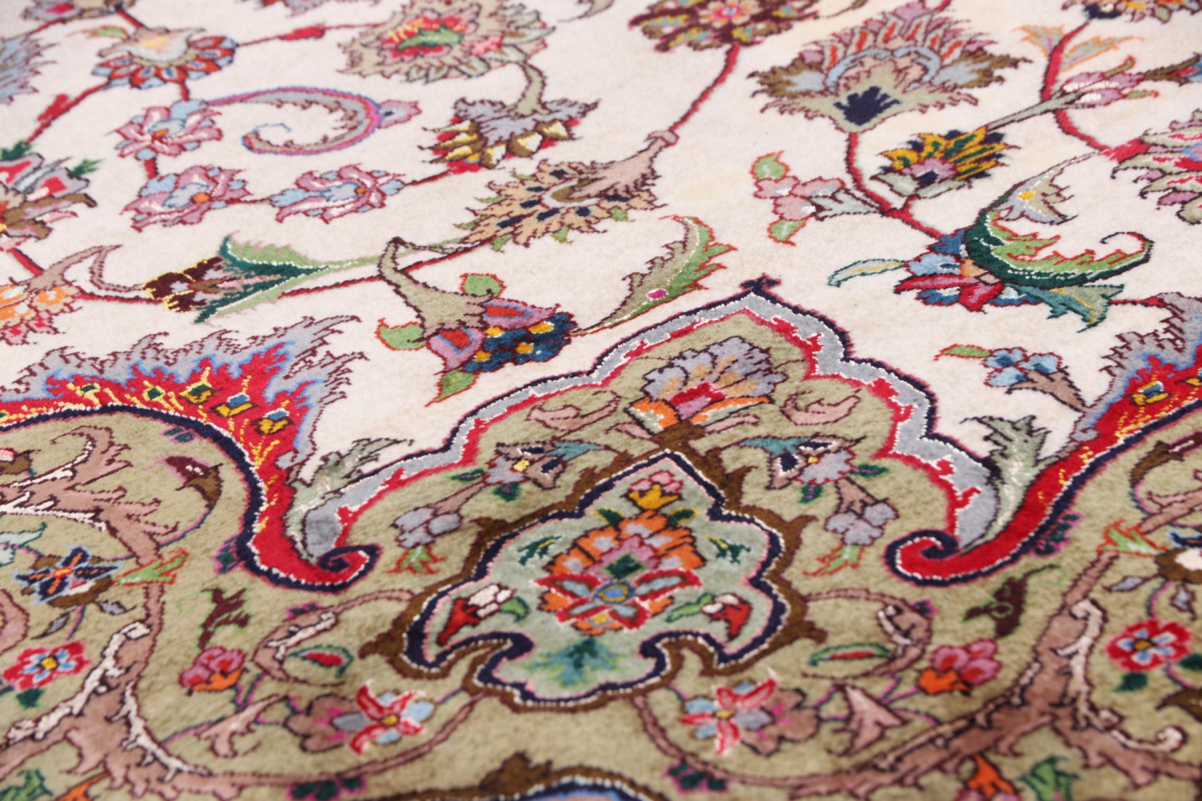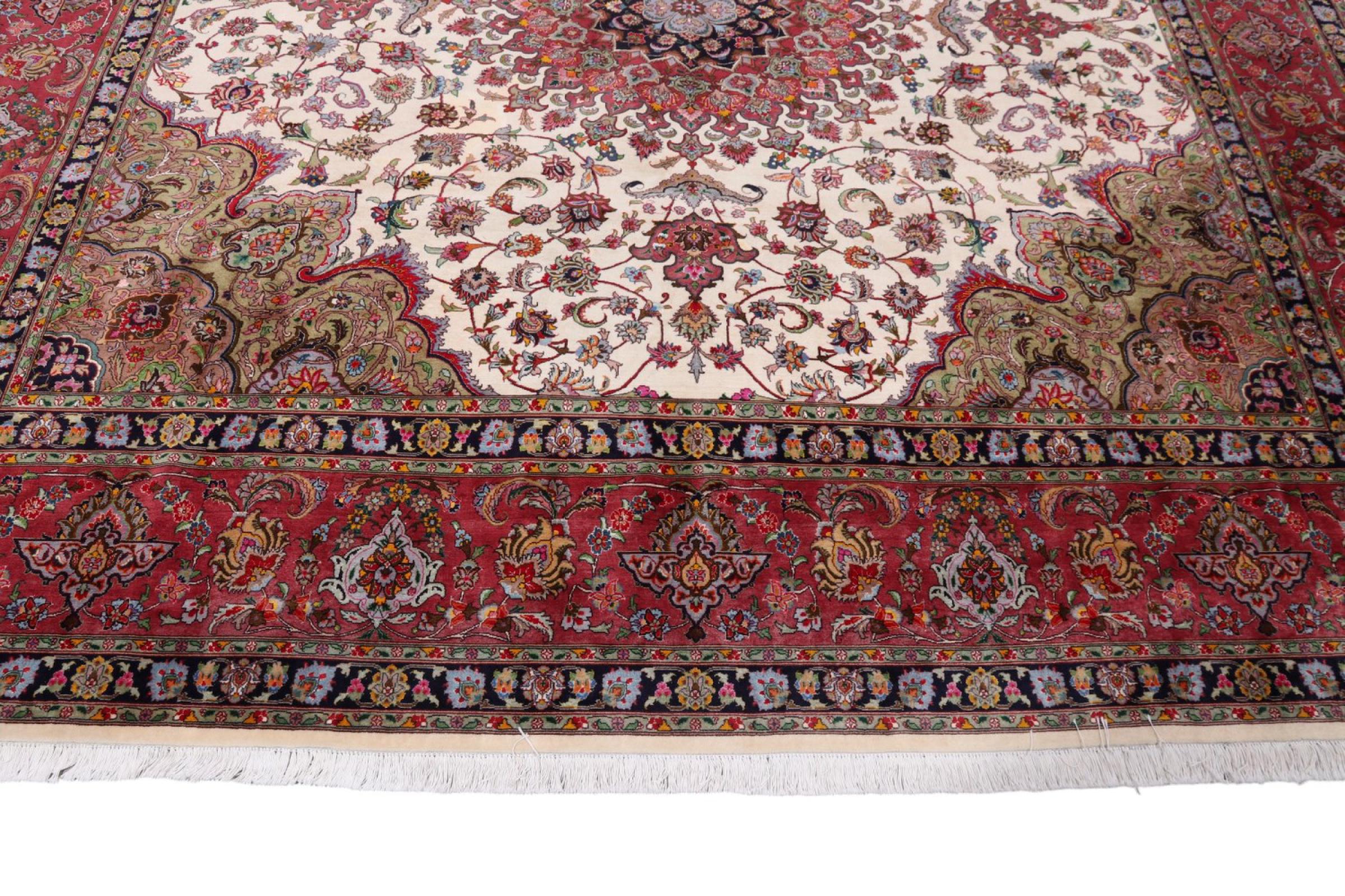 Carpet ID: 291968003364133 Size: 305x301 cm Thickness: ap. 7 mm Knot density: 450 000 - 500 000 / m² Manufacturing: Knotted by hand Pile: Wool with silk Warp: Cotton Origin: Persia Age: New Weight: ap. 28 kg Also know as Tabriz, Tabris, Täbris, Tebriz, Tebris, 40Raj, 50Raj In stock: Unique - Only 1 in stock