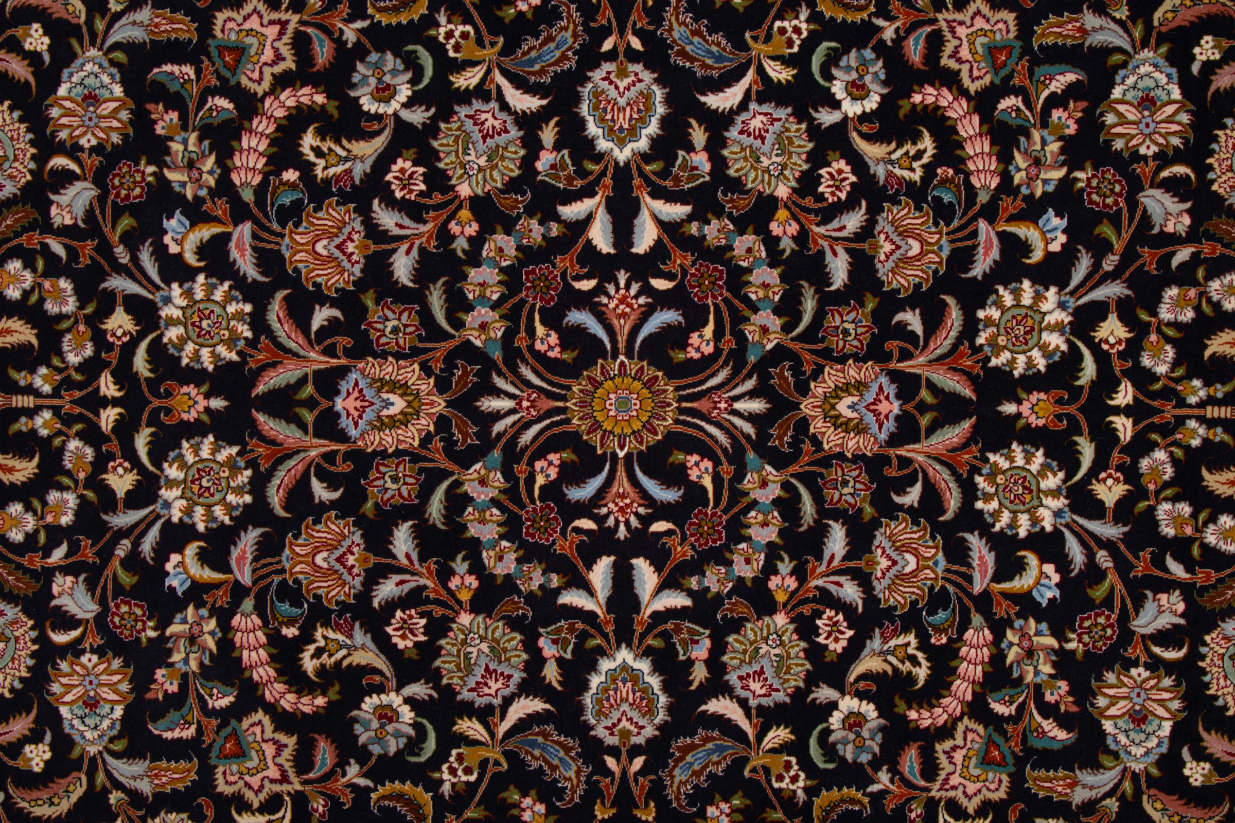 Carpet ID: 292740008161559 Size: 308x251 cm Thickness: ap. 7 mm Knot density: 440 000 - 490 000 / m² Manufacturing: Knotted by hand Pile: Wool with silk Warp: Cotton Origin: Persia Age: New Weight: ap. 23 kg Also know as Tabriz, Tabris, Täbris, Tebriz, Tebris, 40Raj, 50Raj In stock: Unique - Only 1 in stock