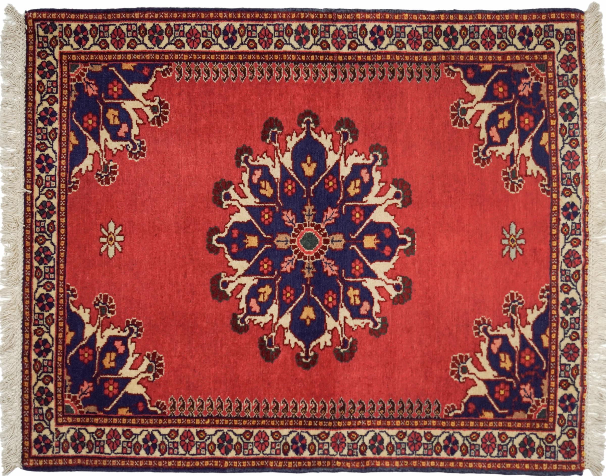 Carpet ID: 234621002858490 Size: 98x81 cm Thickness: ap. 5 mm Knot density: 650 000 / m² Manufacturing: Knotted by hand Pile: Sheep wool Warp: Cotton Condition / Conservation Perfect Origin: Persia Age: Antique, over 80 years Weight: ap. 3 kg In stock: Unique - Only 1 in stock