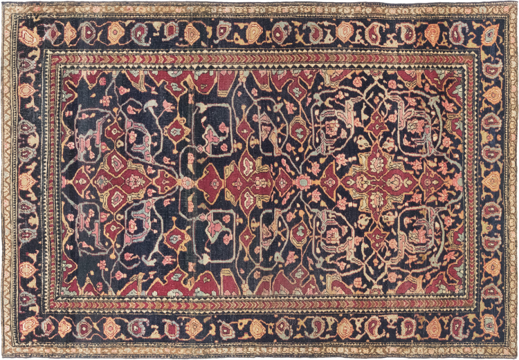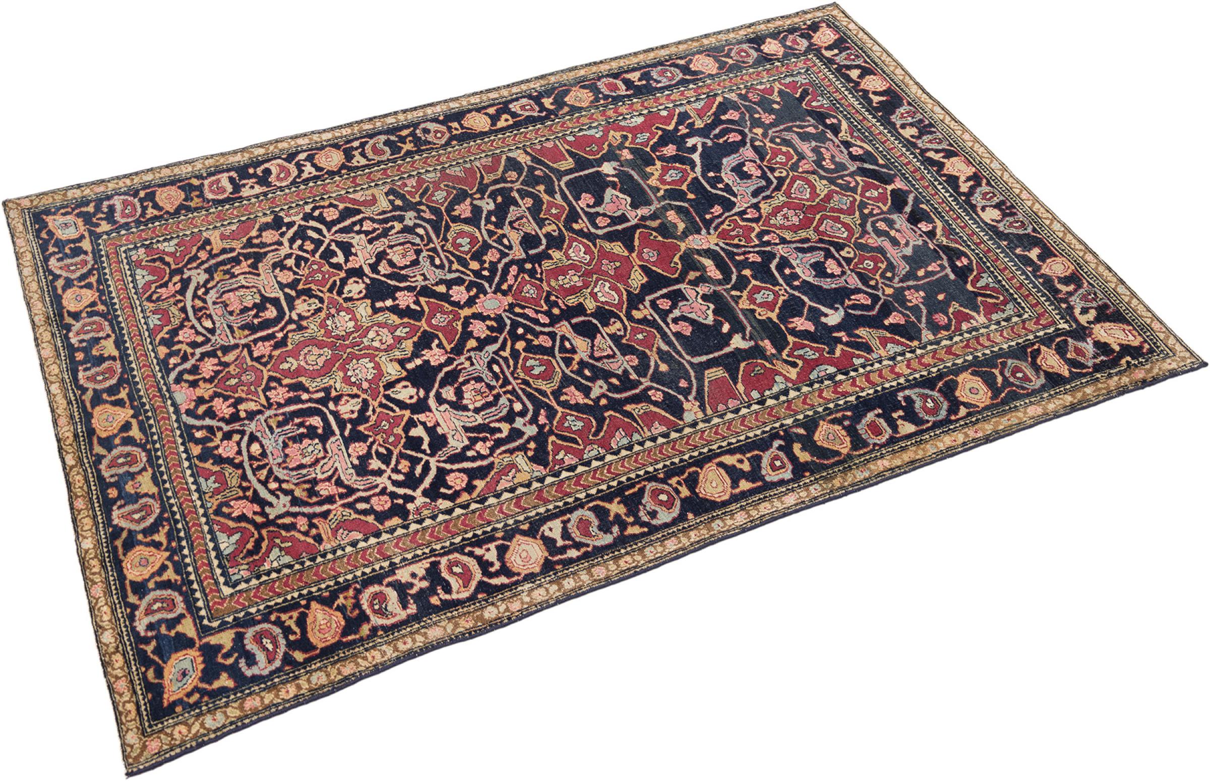 Carpet ID: 316370001487957 Size: 196x133 cm Thickness: ap. 10 mm Knot density: 128 000 - 160 000 / m² Manufacturing: Knotted by hand Pile: Handspun wool Warp: Cotton Condition / Conservation Perfect Origin: Persia Age: Antique, over 80 years Weight: ap. 9 kg In stock: Unique - Only 1 in stock