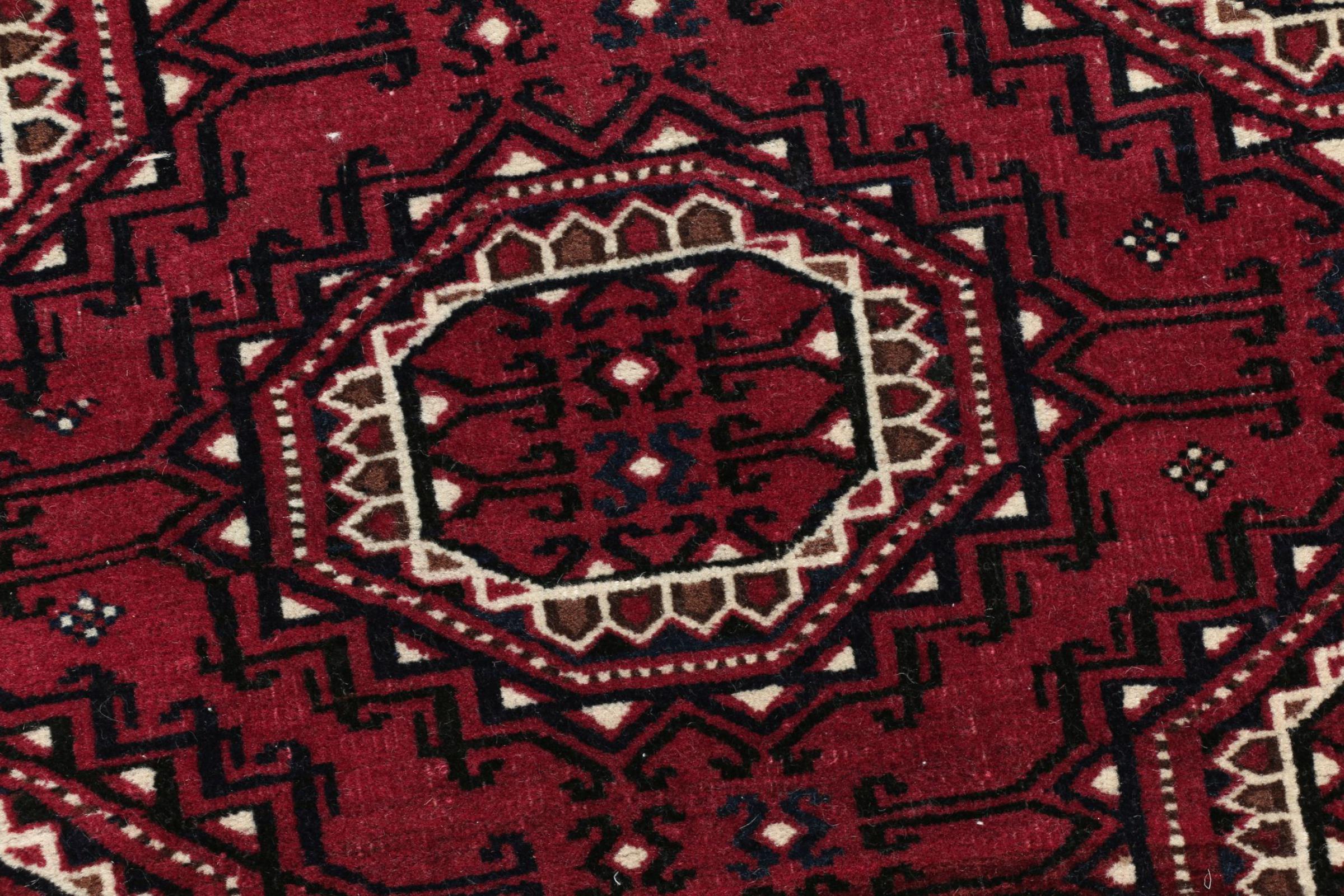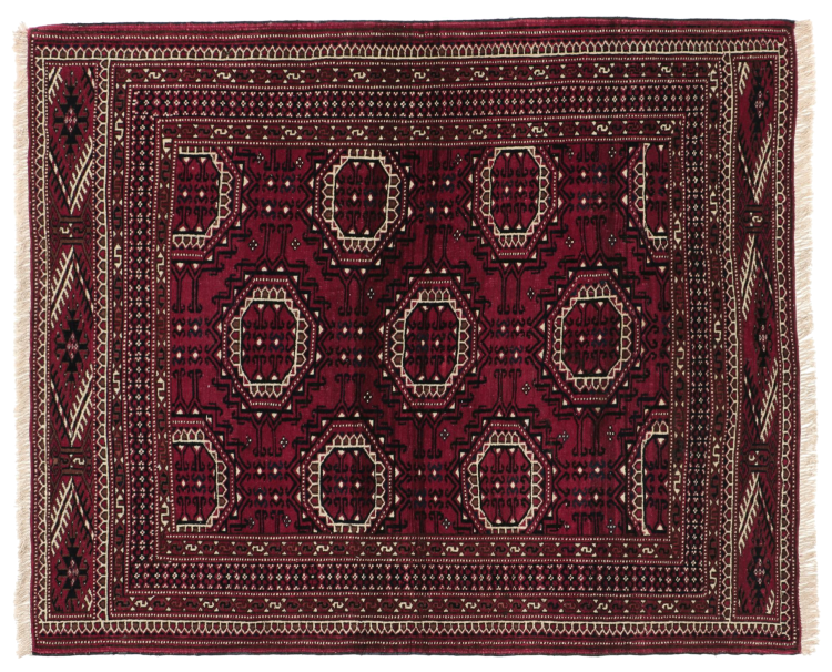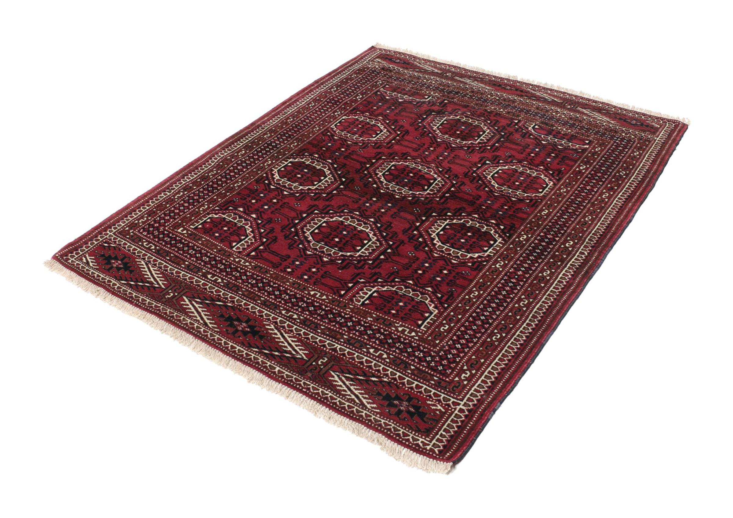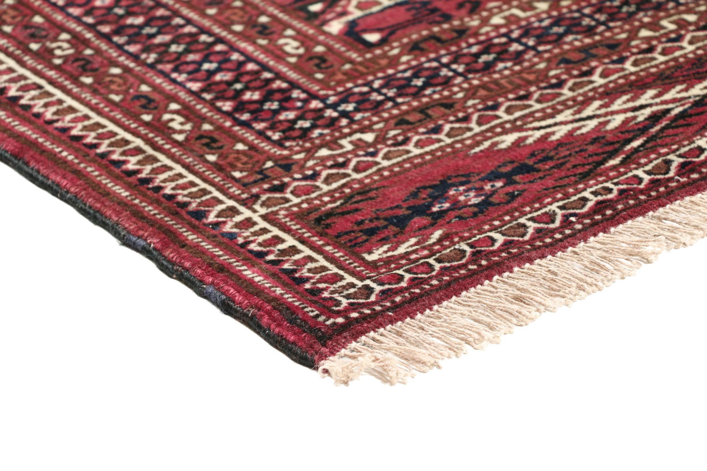 This Turkaman rug was knotted in traditional handicraft and convinces with its high production standard and the high-quality sheep's wool with high fat content. Its dark, warm colours reflect the Turkmen culture and add a touch of orient and cosiness to your home. Pakistani carpets often resemble this type of carpet, but often fail to match its quality.