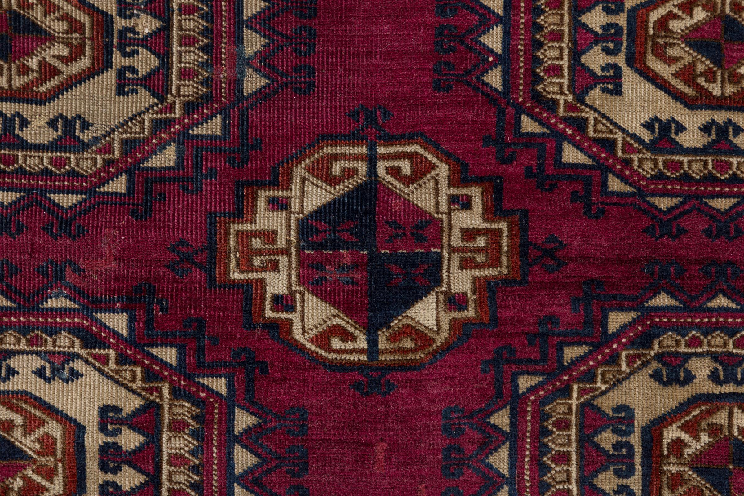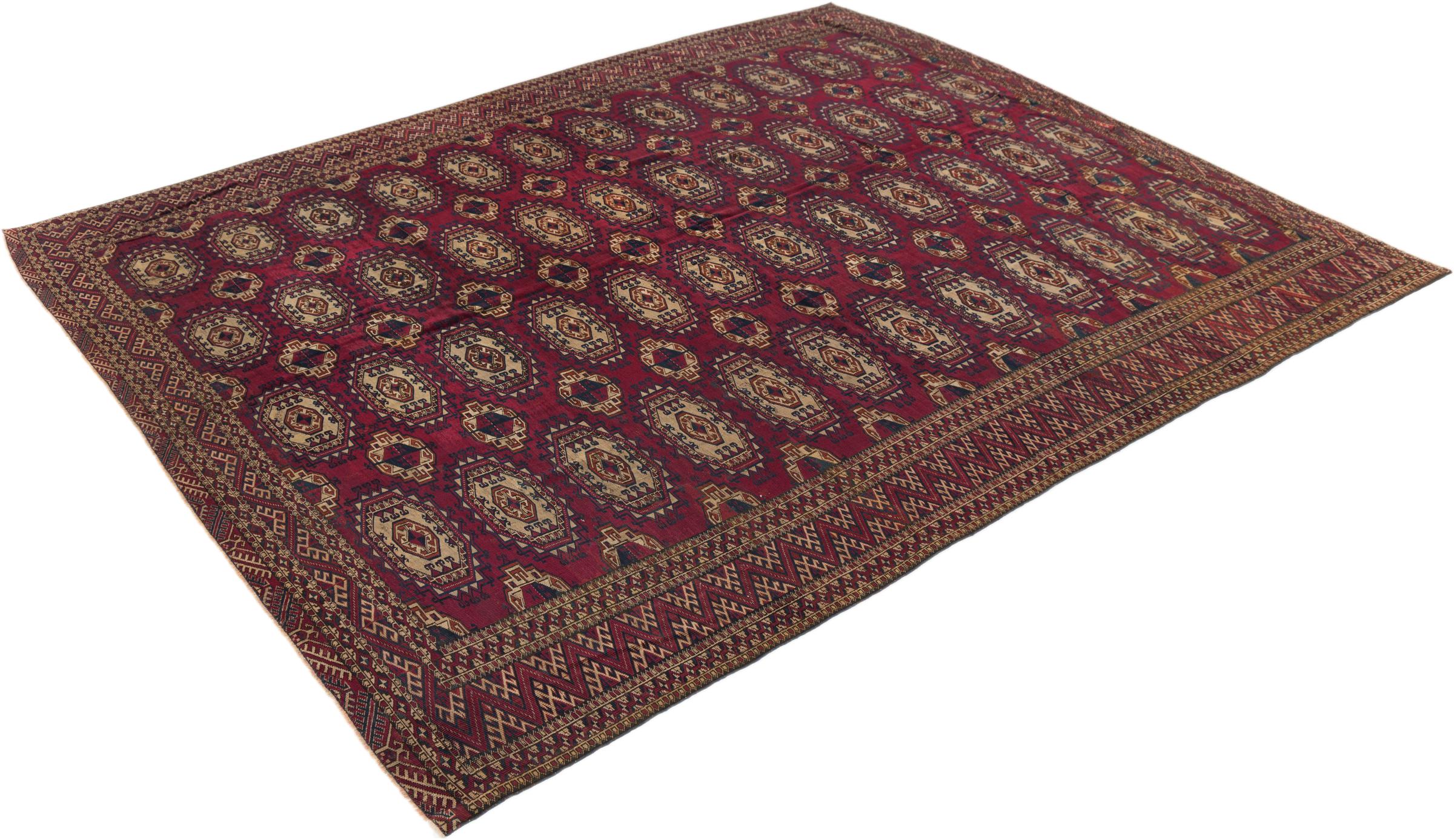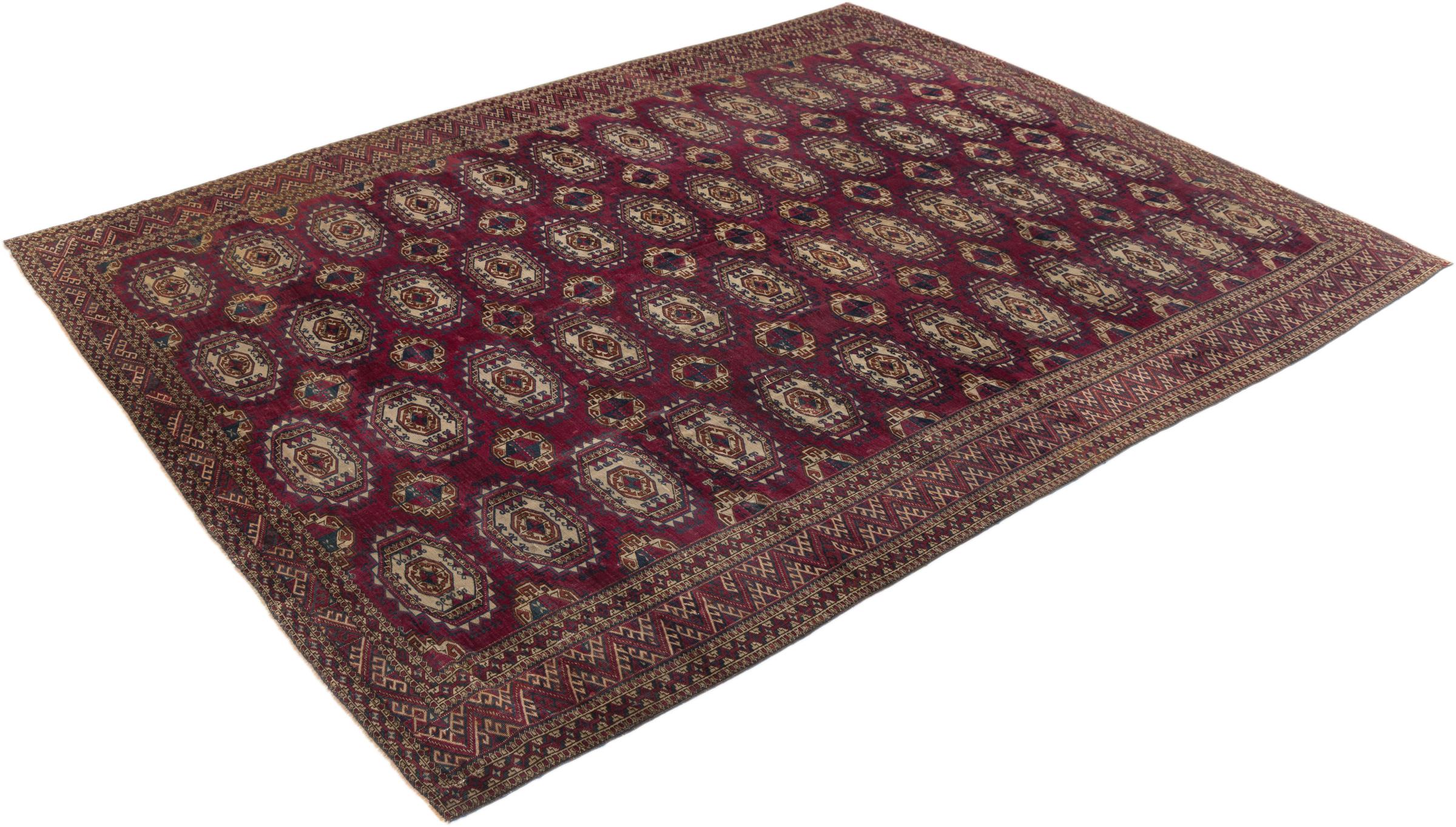 This Turkaman rug was knotted in traditional handicraft and convinces with its high production standard and the high-quality sheep's wool with high fat content. Its dark, warm colours reflect the Turkmen culture and add a touch of orient and cosiness to your home. Pakistani carpets often resemble this type of carpet, but often fail to match its quality.