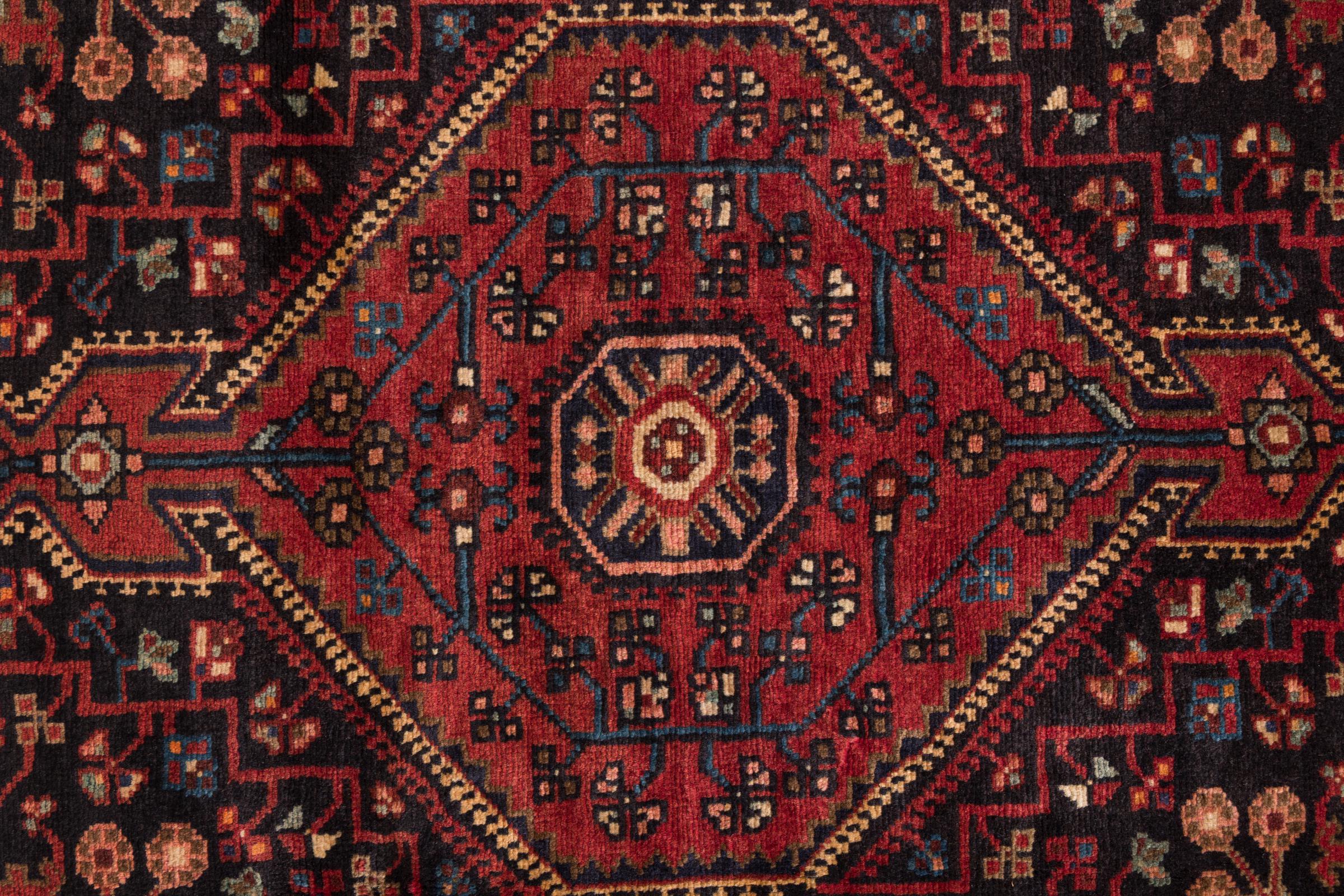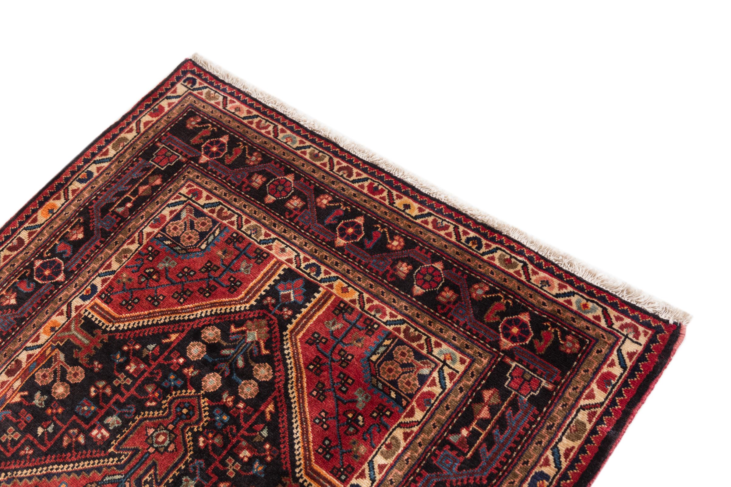 This rug belongs to village and nomadic rugs from Iran, formerly Persia. This type of rug is knotted by hand in smaller towns and villages in old tradition. Even nomads still knot Persian rugs in the open air. The rugs are knotted without a draft and completely from the mind. They are characterized by classical ornaments, which are arranged in straight and geometrical patterns. Thanks to their cultural-traditional origin, these rugs have a unique character that embodies ancient Persia.