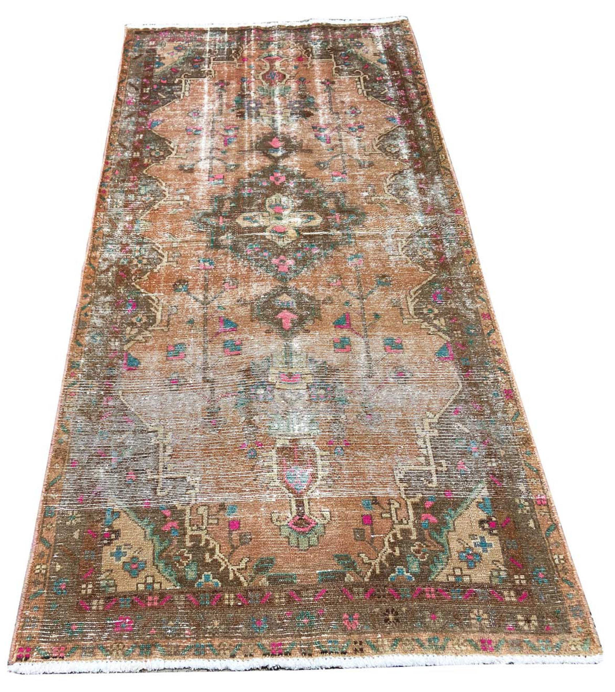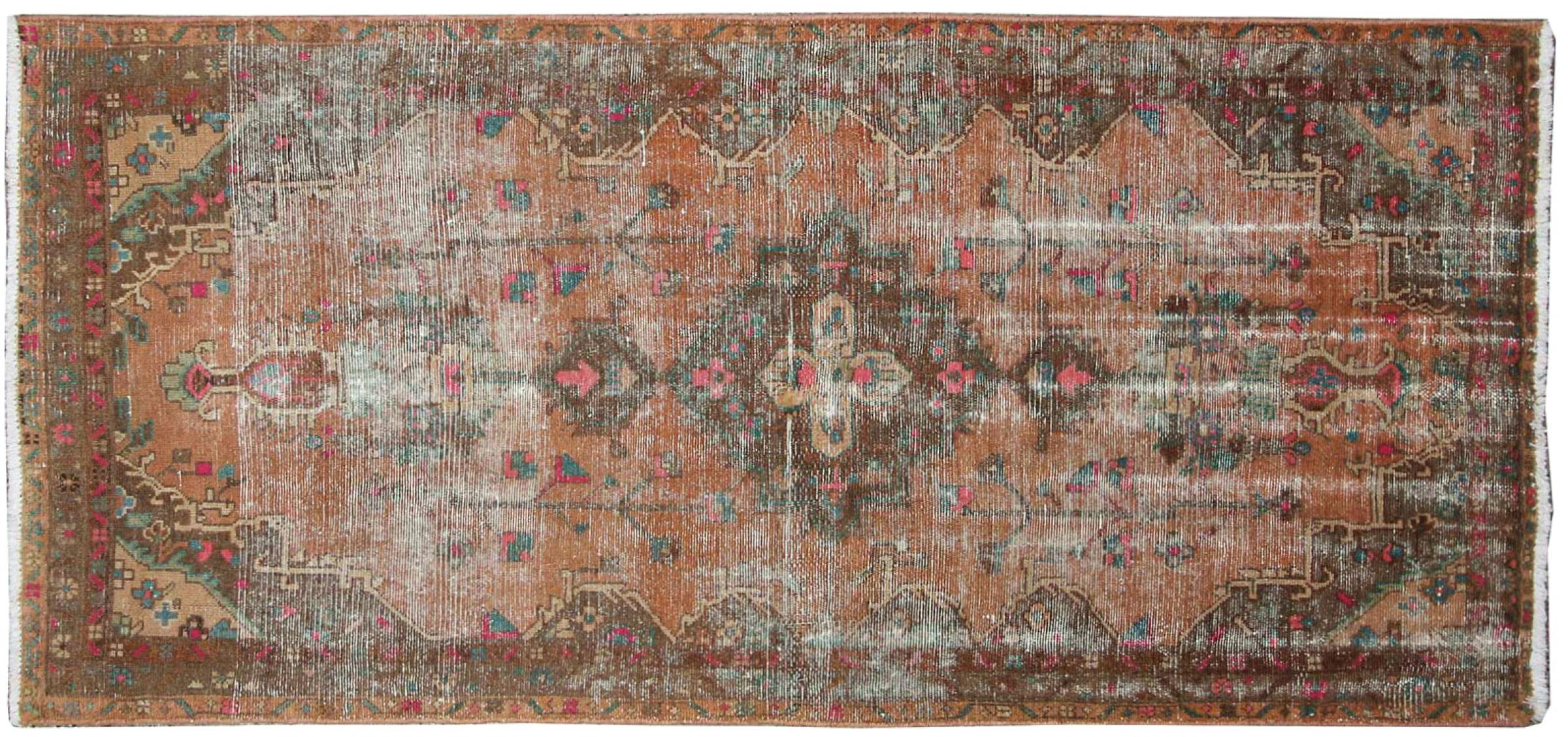 These vintage rugs are old hand knotted oriental rugs, mostly Persian rugs. Such a rug will last a lifetime. The rugs are usually discolored and the wool pile is reduced to one level. This gives the rug a uniform appearance and a timeless vintage style. Only hand knotted rugs of high quality and without defects are made as vintage rugs.