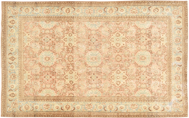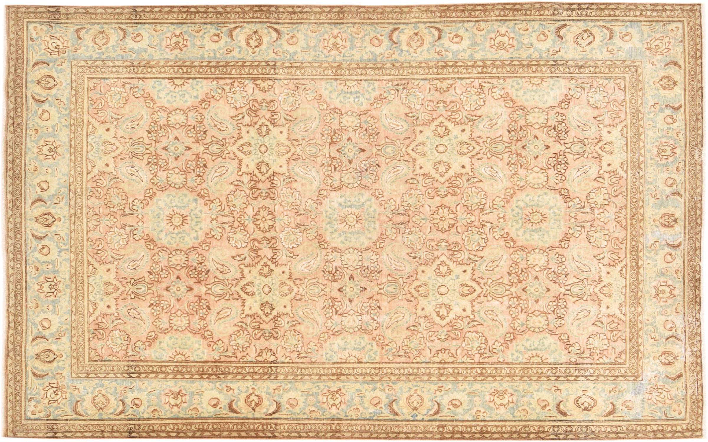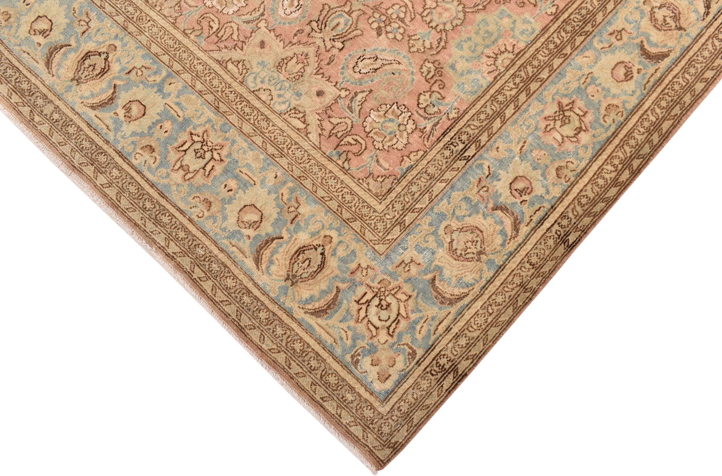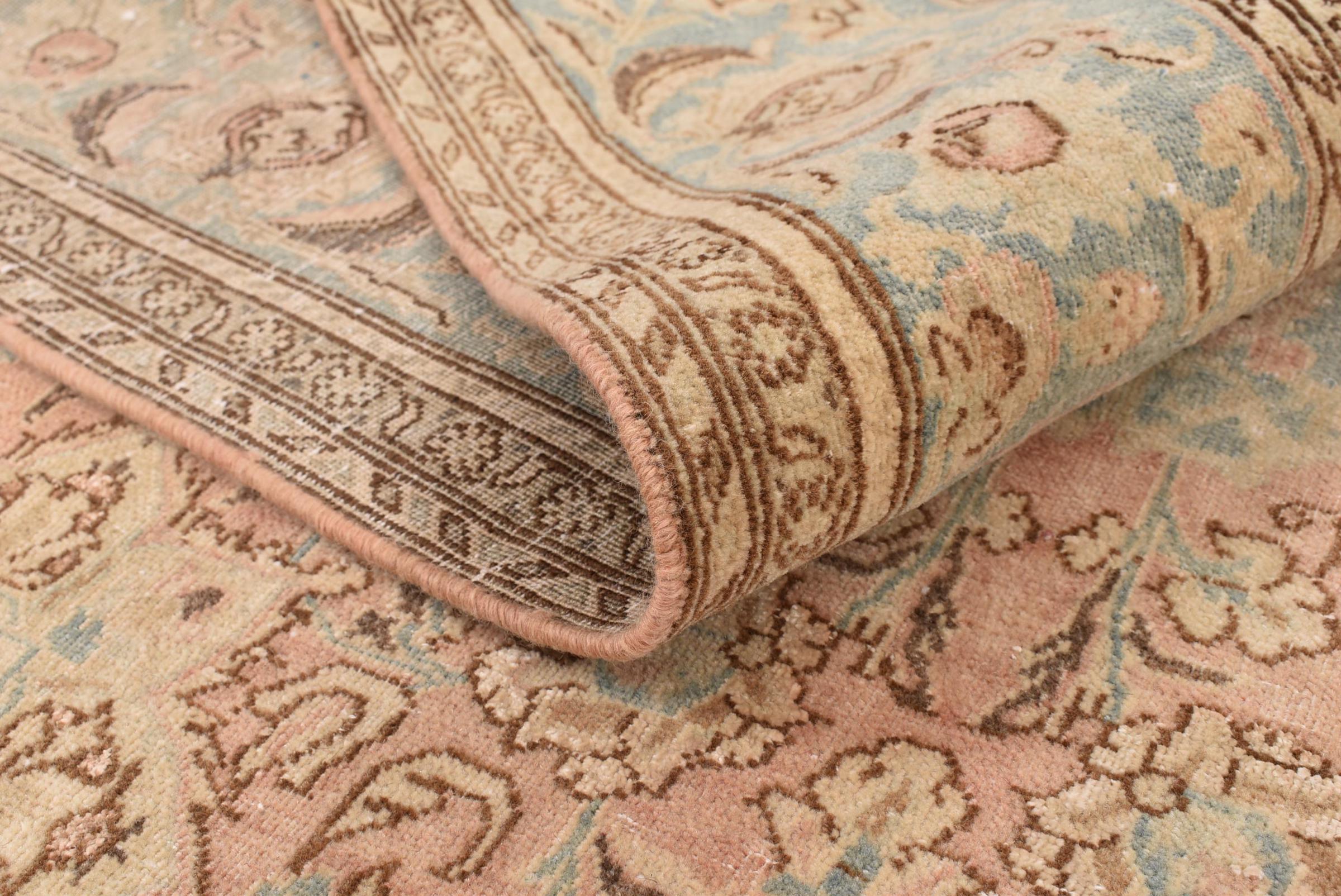 This is a hand-knotted Persian carpet that is at least 20 years old. Such a carpet can last for generations with the right care. The carpet has been completely re-dyed without completely over-dyeing the originally knotted ornaments. This gives the high quality Persian carpet a unique modern vintage character.