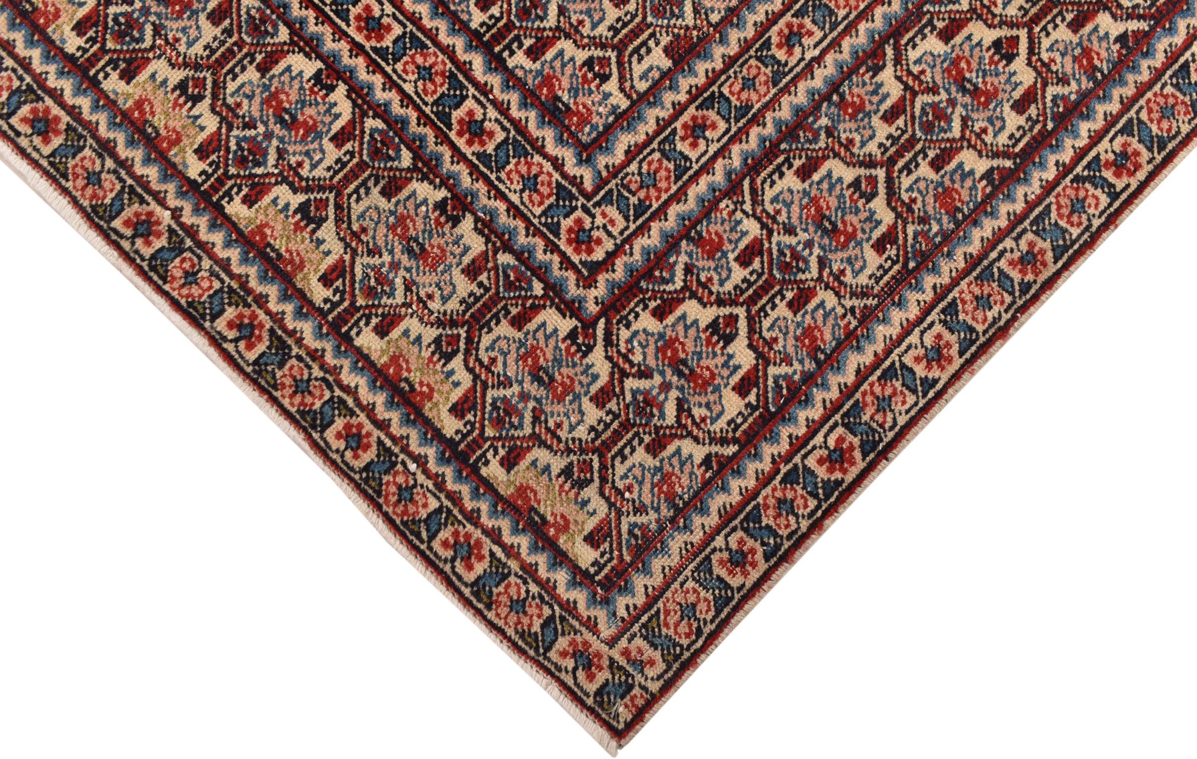 These vintage rugs are old hand knotted oriental rugs, mostly Persian rugs. Such a rug will last a lifetime. The rugs are usually discolored and the wool pile is reduced to one level. This gives the rug a uniform appearance and a timeless vintage style. Only hand knotted rugs of high quality and without defects are made as vintage rugs.
