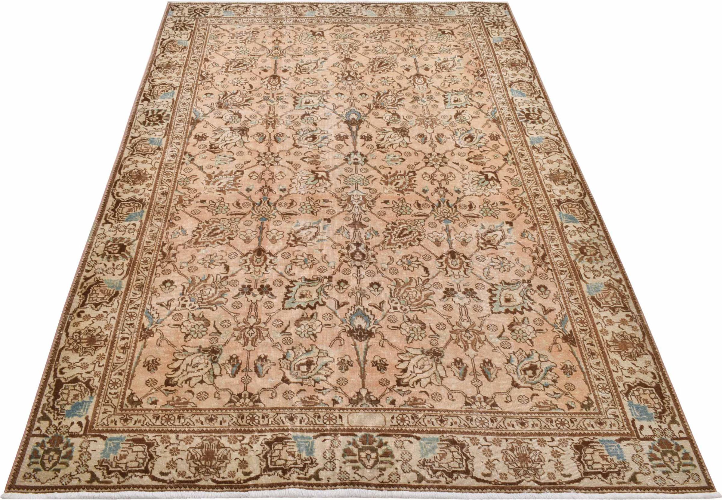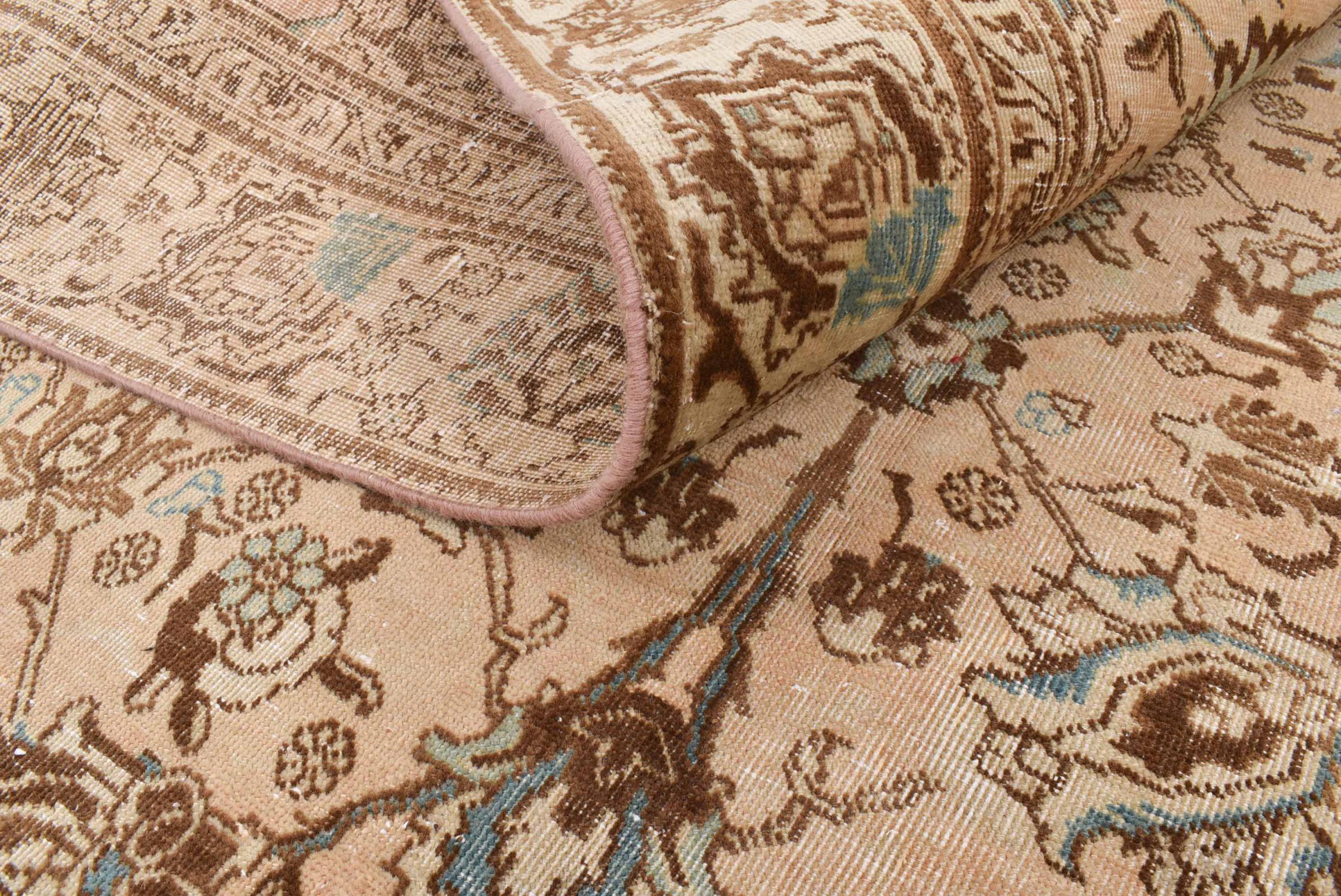 These vintage rugs are old hand knotted oriental rugs, mostly Persian rugs. Such a rug will last a lifetime. The rugs are usually discolored and the wool pile is reduced to one level. This gives the rug a uniform appearance and a timeless vintage style. Only hand knotted rugs of high quality and without defects are made as vintage rugs.