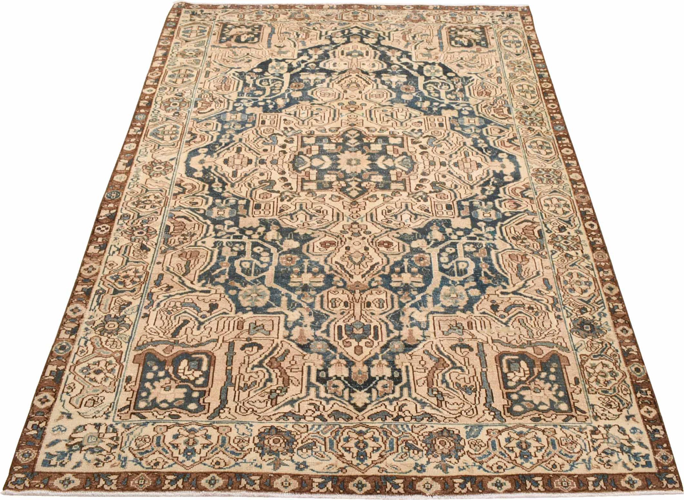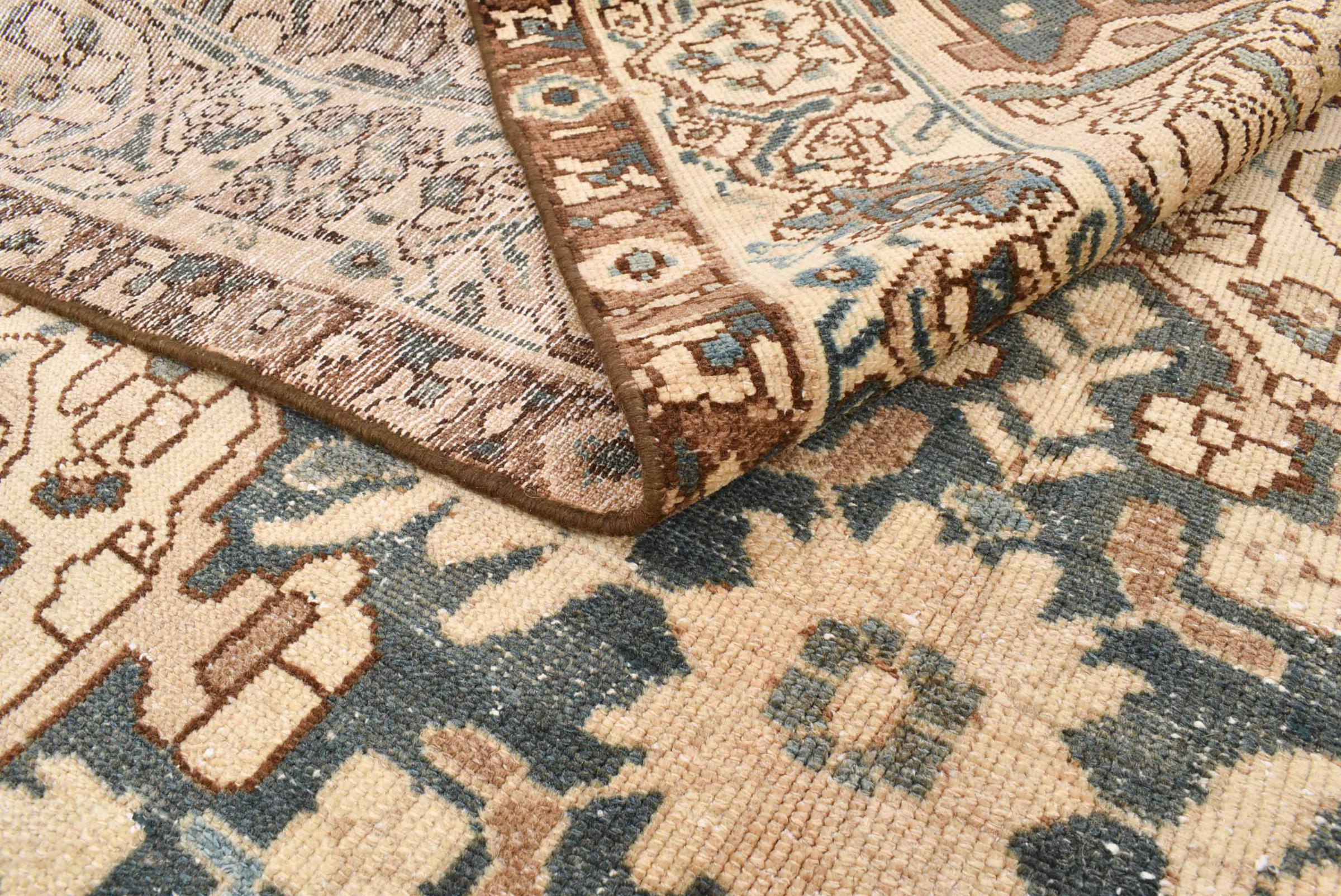 These vintage rugs are old hand knotted oriental rugs, mostly Persian rugs. Such a rug will last a lifetime. The rugs are usually discolored and the wool pile is reduced to one level. This gives the rug a uniform appearance and a timeless vintage style. Only hand knotted rugs of high quality and without defects are made as vintage rugs.