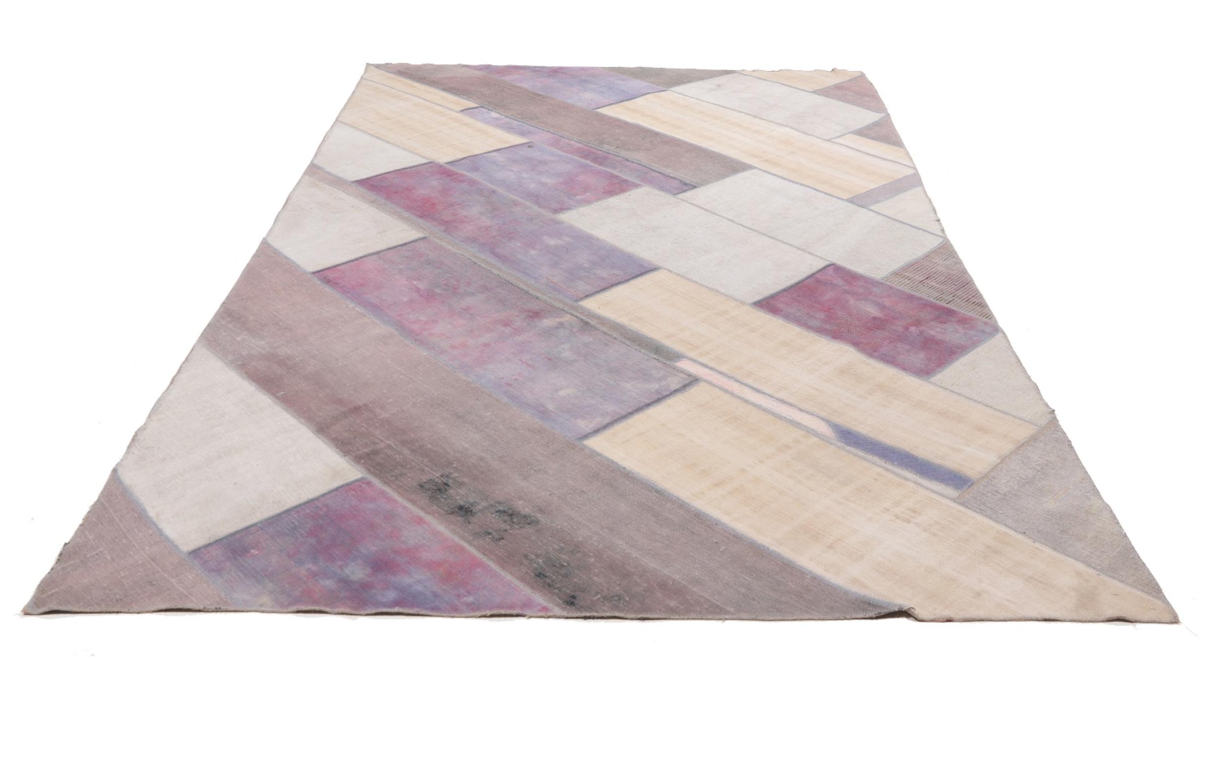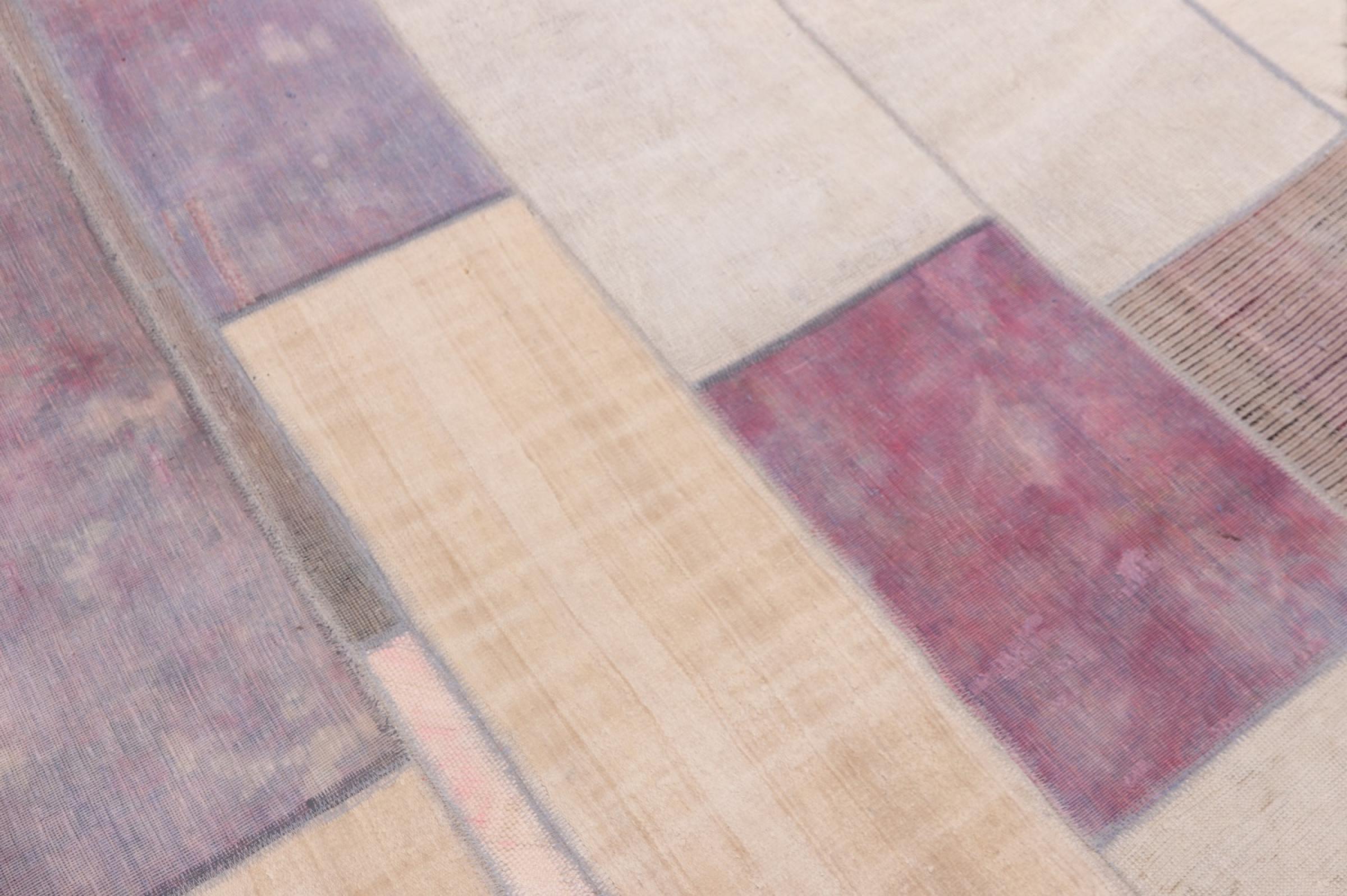 This is a hand-knotted Persian carpet that is at least 20 years old. Such a carpet can last for generations with the right care. The carpet has been completely re-dyed without completely over-dyeing the originally knotted ornaments. This gives the high quality Persian carpet a unique modern vintage character.