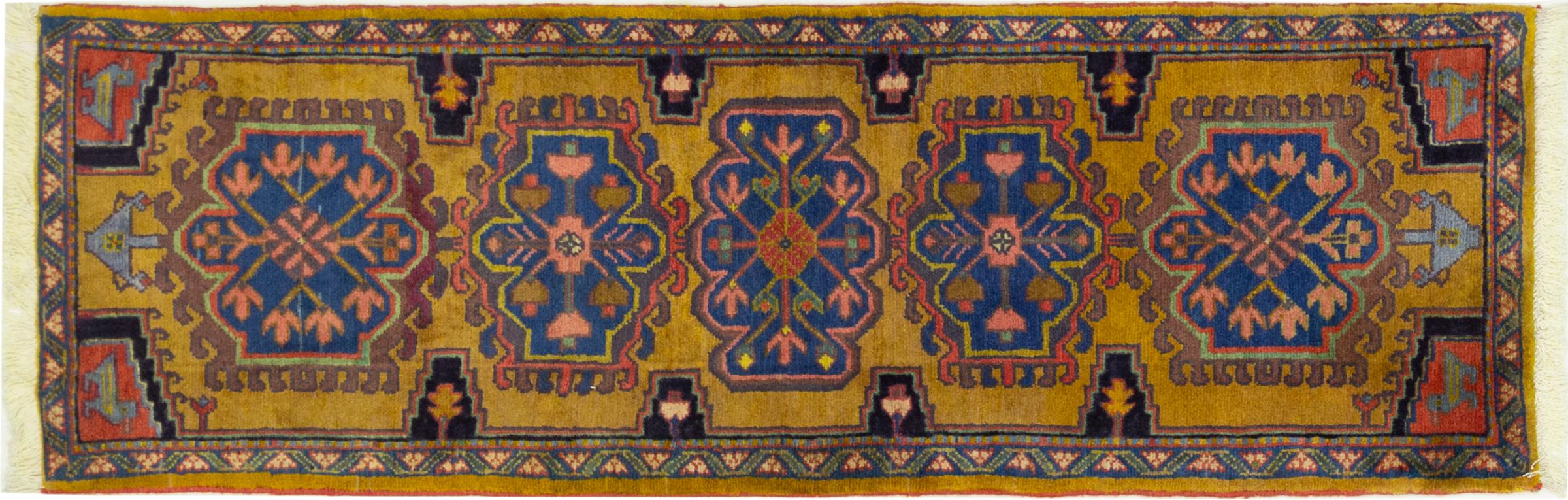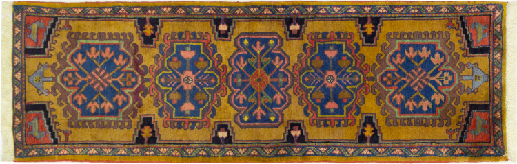 Carpet ID: 30396600513392 Size: 191x62 cm Thickness: ap. 10 mm Knot density: 72 000 - 90 000 / m² Manufacturing: Knotted by hand Pile: Handspun wool Warp: Cotton Origin: Persia Age: New Weight: ap. 4 kg In stock: Unique - Only 1 in stock