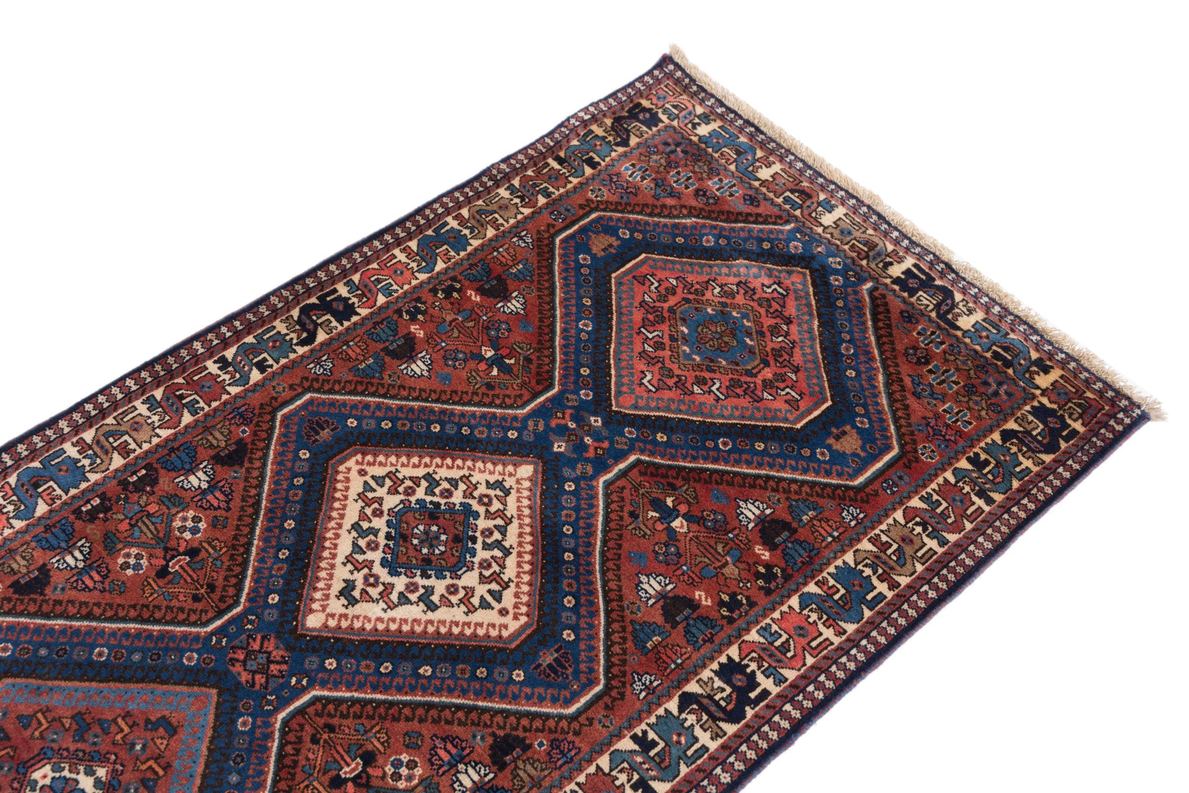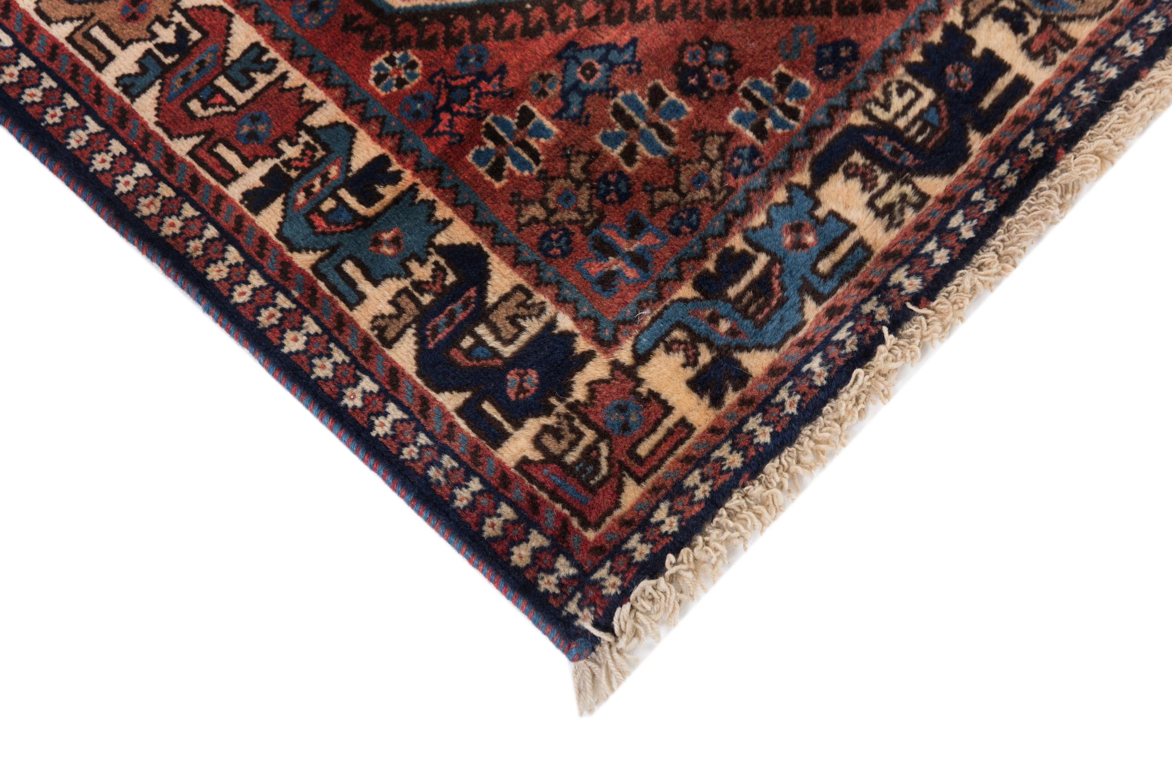 This rug belongs to village and nomadic rugs from Iran, formerly Persia. This type of rug is knotted by hand in smaller towns and villages in old tradition. Even nomads still knot Persian rugs in the open air. The rugs are knotted without a draft and completely from the mind. They are characterized by classical ornaments, which are arranged in straight and geometrical patterns. Thanks to their cultural-traditional origin, these rugs have a unique character that embodies ancient Persia.