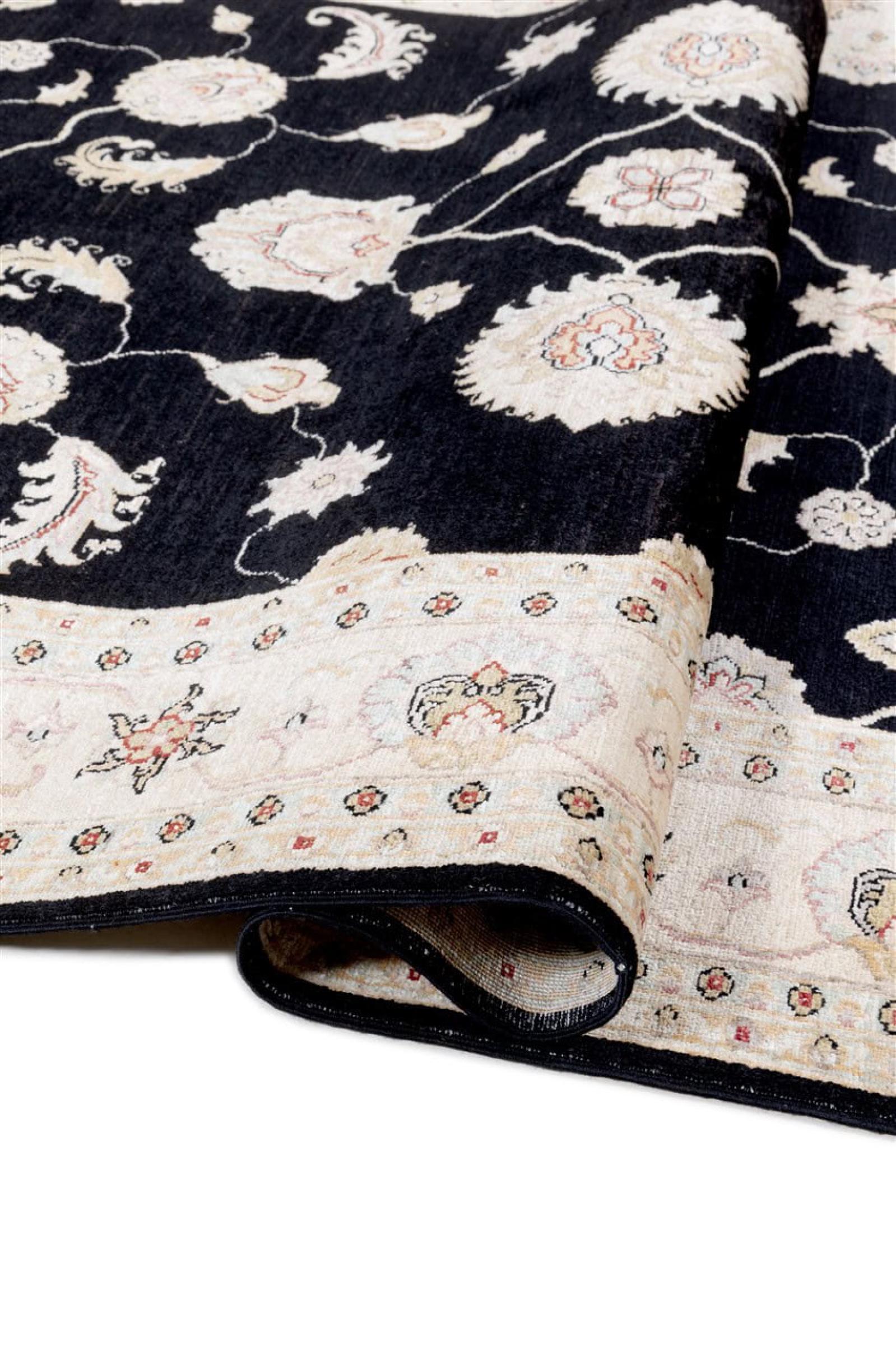 This rug is made of hand spun sheep wool of the highest quality. Especially in Iran (former Persia), Afghanistan and Pakistan wool is still spun by hand before the actual knotting of the rug begins. Wool has proven itself as a natural and extremely hard-wearing material over centuries. Among other things, it has dirt-repellent and heat-insulating properties. At the same time, wool is incomparably soft and has a natural shine.