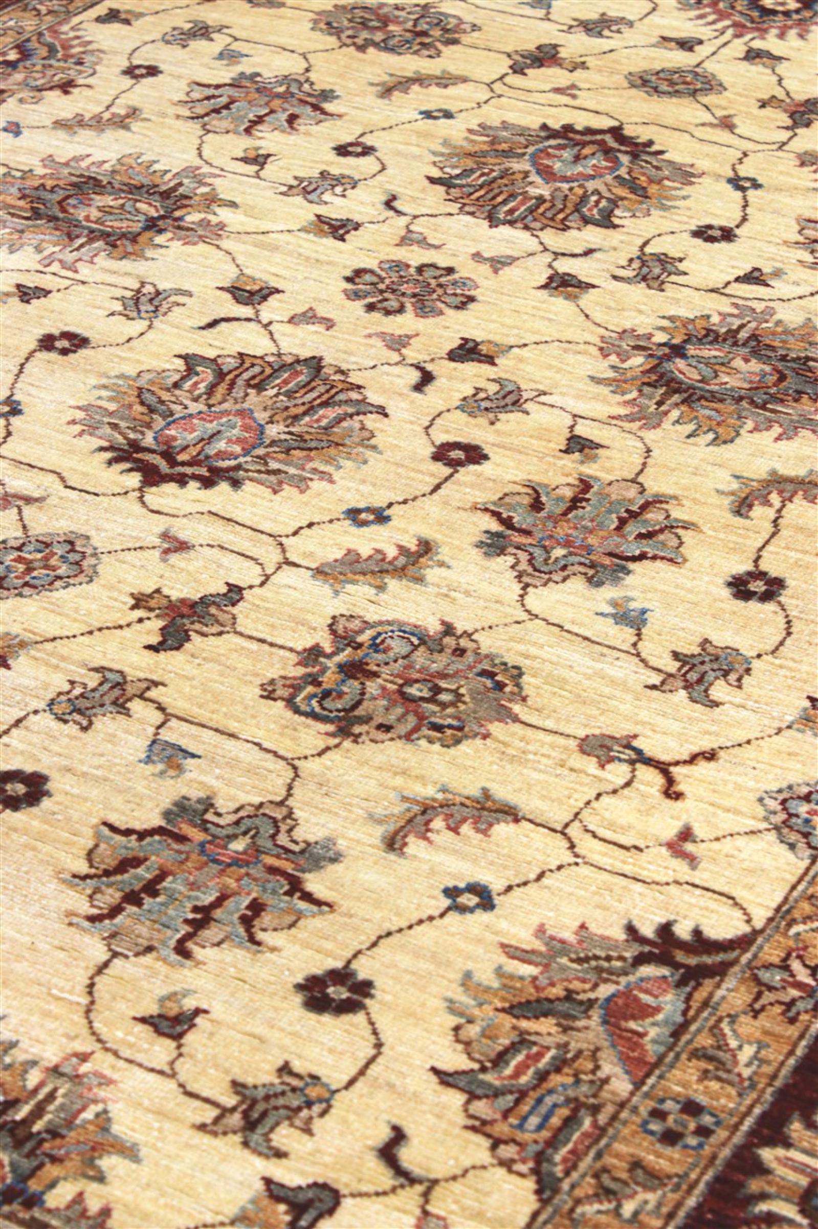 This rug is made of hand spun sheep wool of the highest quality. Especially in Iran (former Persia), Afghanistan and Pakistan wool is still spun by hand before the actual knotting of the rug begins. Wool has proven itself as a natural and extremely hard-wearing material over centuries. Among other things, it has dirt-repellent and heat-insulating properties. At the same time, wool is incomparably soft and has a natural shine.